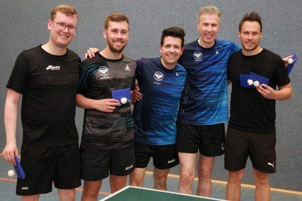 Nach souveränen 3:0 Erfolgen qualifizierten sich Nico von Mutius/Jannis Bohlmann und Ingo Schmiljun/Oliver Amtenbrink für das Finale. Hier ging es dann nochmals richtig hoch her. In den Einzelspielen wurden die Punkte geteilt. Nico von Mutius setzte sich hier gegen Oliver Amtenbrink durch, aber sein Bruder Jannis Bohlmann unterlag gegen Ingo Schmiljun. Die Entscheidung um den Turniersieg fiel im Doppel und hier konnten sich Nico von Mutius/Jannis Bohlmann hauchdünn im Entscheidungssatz durchsetzen. Im Spiel um Platz drei behielten die mehrfachen Bezirksmeister Bernd Wüstenbecker/Christian Reichelt gegen Joel Faal/Marius Stevens glatt mit 3:0 die Oberhand.