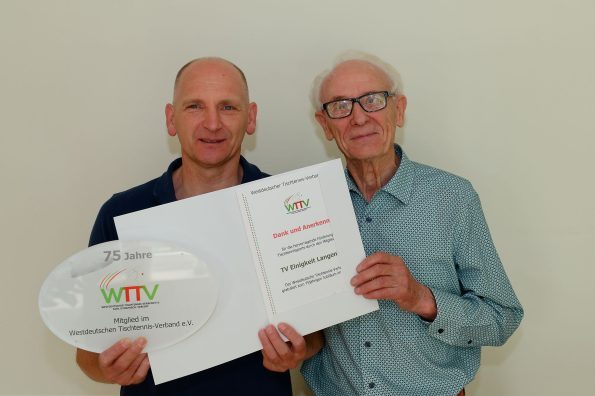 Ein ganz besonders Jubiläum gibt es beim TV Langenberg zu feiern.  Die überaus aktive TT-Abteilung des TV Langenberg besteht nunmehr seit 75 Jahren. Aus diesem Anlass wurde der Verein vom Westdeutschen TT-Verband mit einer entsprechenden Urkunde und mit einer großen Wandplakette geehrt. Die Ehrung fand im Rahmen einer Regionalkonferenz statt, die erstmalig vom Bezirk Ostwestfalen-Nord für die vor der Strukturreform selbstständigen TT-Kreise im Spexarder Bauernhaus durchgeführt wurde.