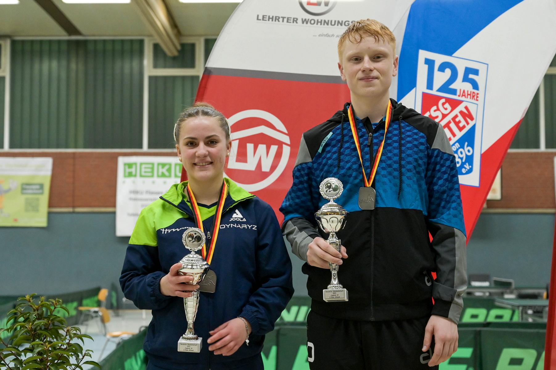 Bei den Nationalen Deutschen Meisterschaften der Jugend 19 am vergangenen Wochenende in Lehrte gab es für den WTTV einen tollen Medaillenregen. Am Samstag gegen 21.00 Uhr verwandelten die Bayern Naomi Prankovic und Tom Schweiger gegen Mia Griesel/Andre Bertelsmeier ihren ersten Matchball in einem hochklassigen und spannenden Mixed-Finale. Damit gewann Andre in Lehrte seine erste Medaille – in der Farbe „Silber“.