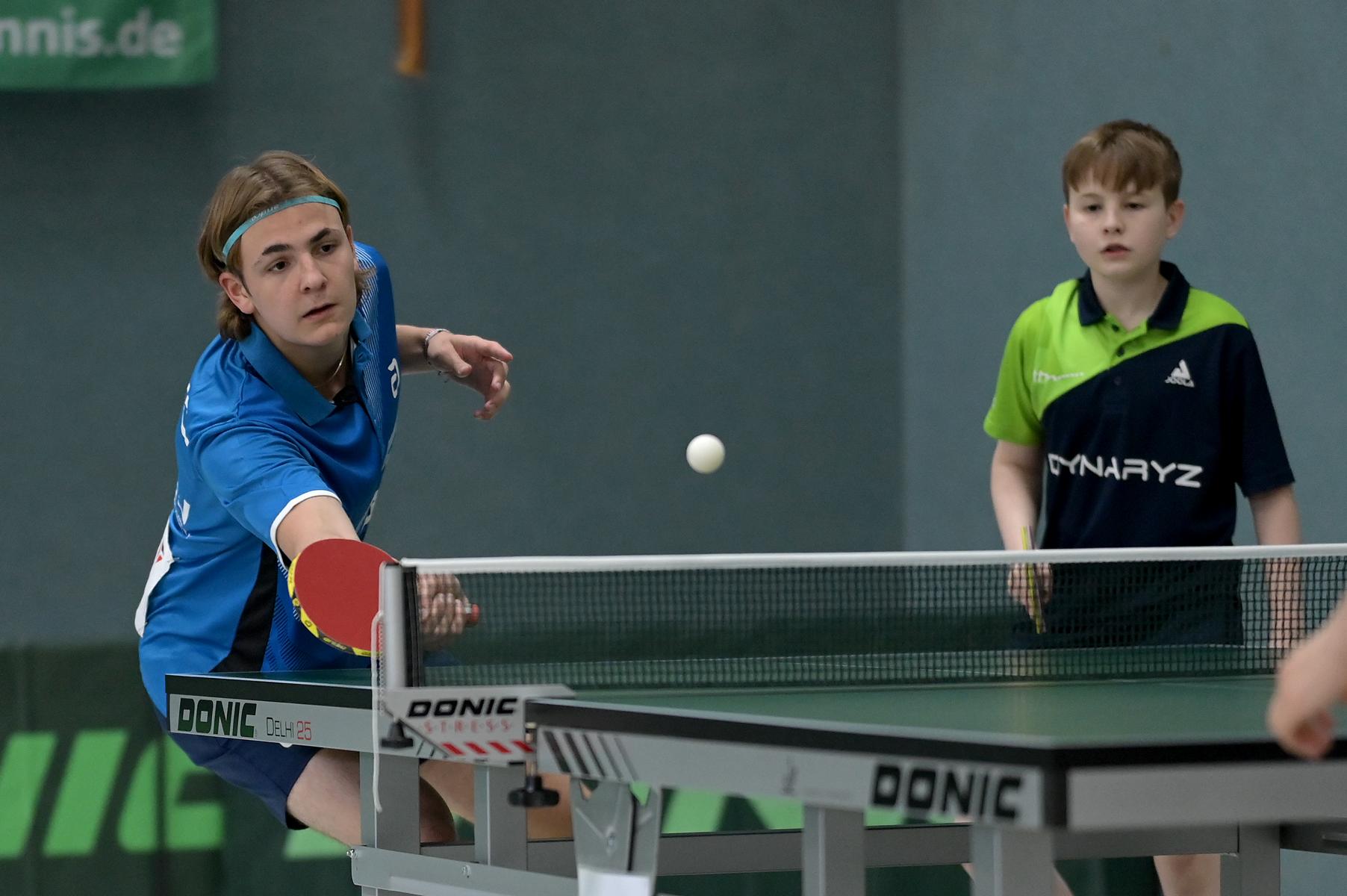 Bei den Jungs spielte Leonid mit seinem „Abwehrkollegen“ Rau aus Hessen ein tolles und attraktives Doppel, sie gewannen ihr erstes Spiel und verloren dann nur unglücklich gegen zwei Jungen aus Niedersachsen (Kohne/Robben). Wim und Marko spielten toll auf. Nach einem leichten Sieg in ihrer ersten Runde standen sie den Favoriten Danzer/Schweiger gegenüber. Beide Jungs spielten und harmonierten toll miteinander und gewannen dieses spannende Spiel mit 3:2 und erreichten somit das Halbfinale. Auch dort ging es in den fünften Satz, jedoch leider mit dem besseren Ende für Zimmermann (Sachsen) und Itagaki (Bayern). Diese Kombination stand dann Lleyton Ullmann und Andre Bertelsmeier im Finale gegenüber. Hier gewannen der Hamburger Ullmann mit Andre am Ende sicher und verdient mit 3:1 die Goldmedaille, nachdem man im Halbfinale Hollo und Hübgen (Bayern und Saarland) ausschalten konnte.