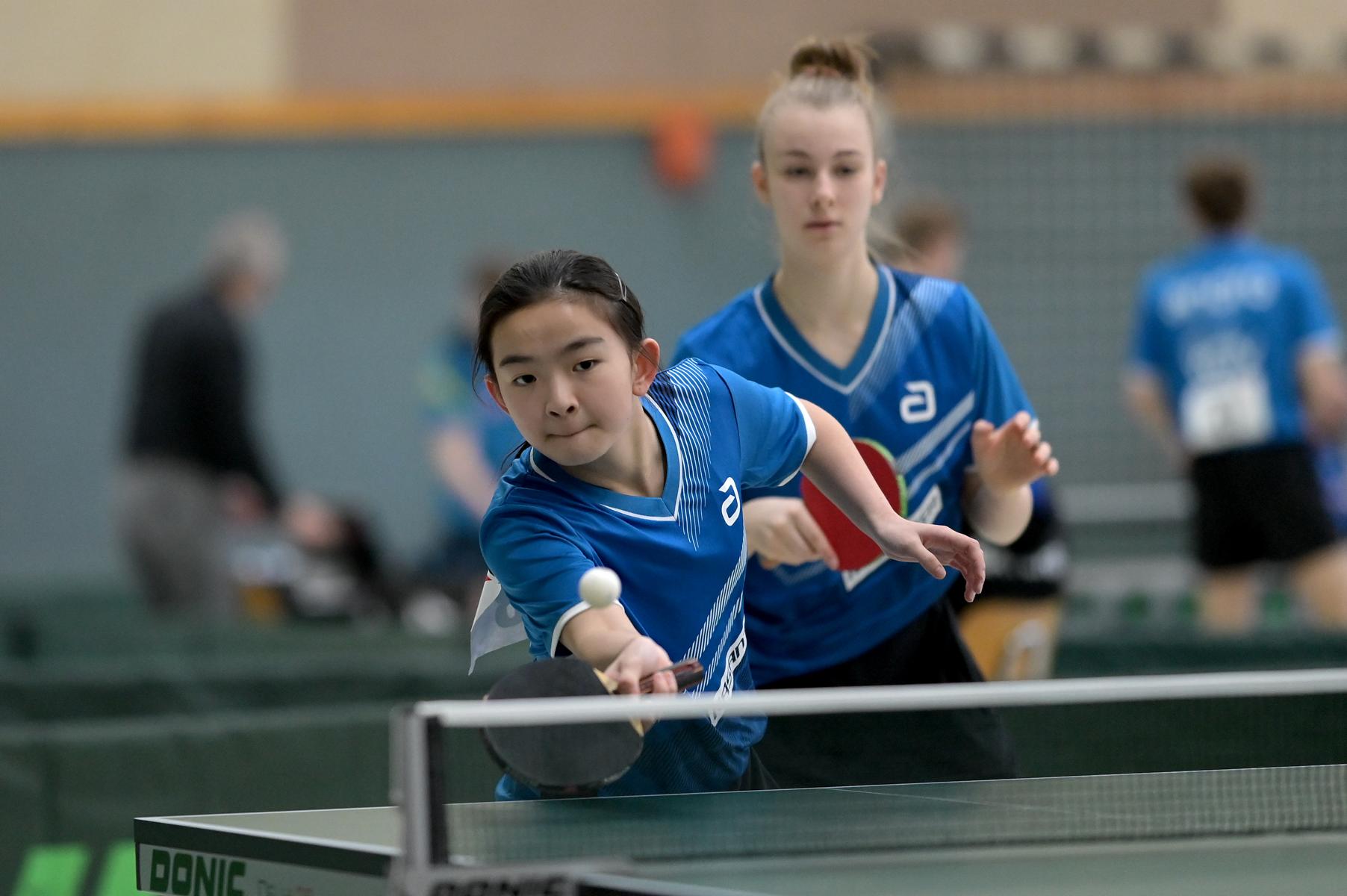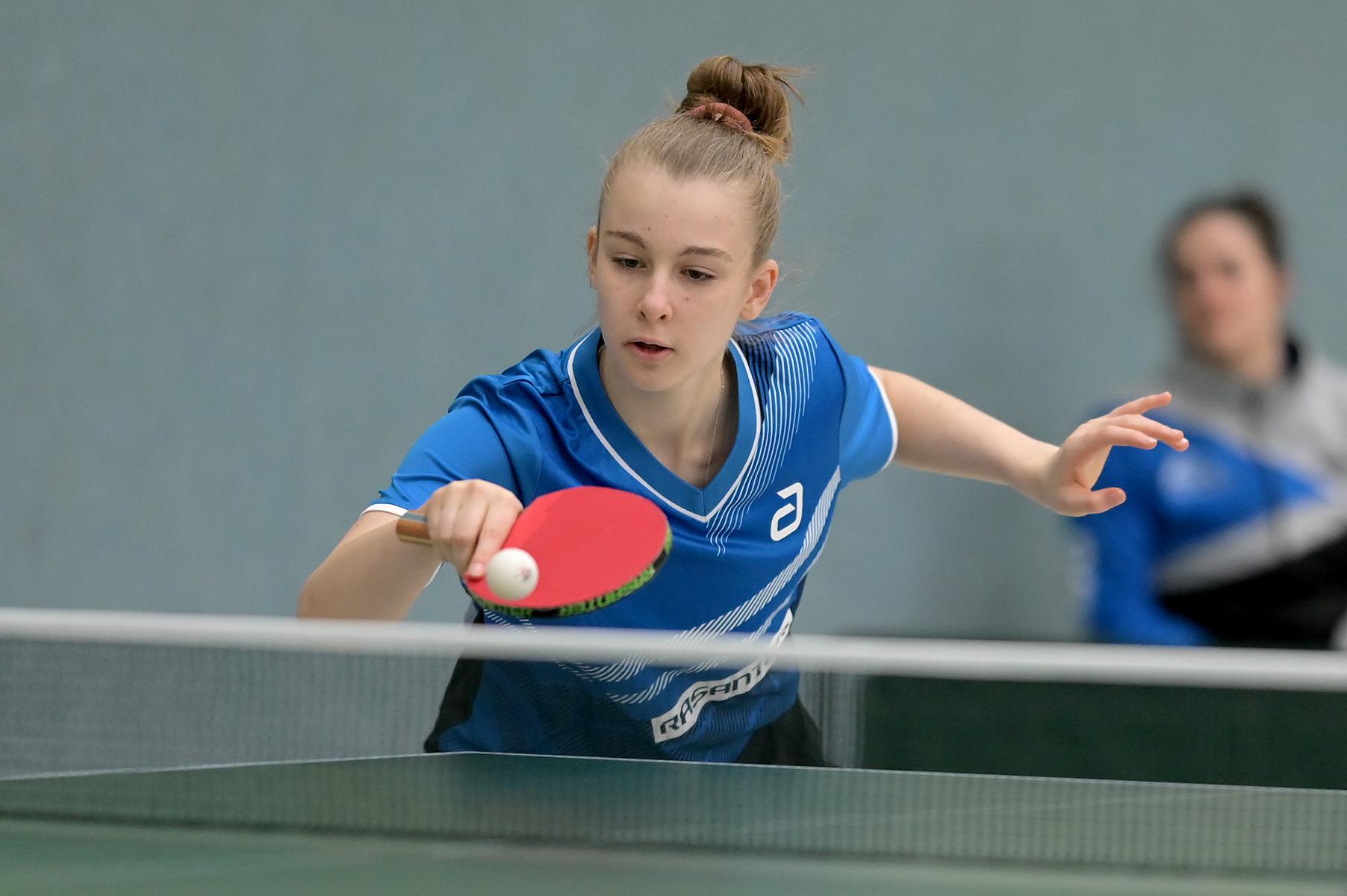 Mariia Bodnar, die auch in der kommenden Saison noch U15-Spielerin sein wird, spielte gut, führte gegen ihre Gegnerinnen Stefanska (Niedersachsen) und Stelting (Hessen) mit 2:1, konnte aber am Ende kein Spiel für sich verbuchen. Unser Küken Rhea Zhu Chen, die noch U13 (!)-Spielerin ist, konnte leider ebenfalls kein Spiel gewinnen, jedoch war ihr unbekümmerter Auftritt in den Spielen sehr erfrischend anzusehen.