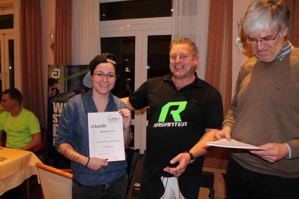 Es haben 1.305 verschiedene Spieler/innen mit insgesamt 7.523 Turnierstarts teilgenommen, die sich auf die drei Altersklassen wie folgt verteilen: Nachwuchs 96, Erwachsene 595 und Senior/innen 614. Der Hauptsponsor des WTTV engagierte sich auch in diesem Jahr beim WTTV-andro-Cup , u.a. mit stattlichen Preisen für die Finalteilnehmer im Gesamtwert von mehr als 3000 Euro. Verkaufsleiter Rainer Schmidt ließ es sich nicht nehmen, allen Teilnehmenden zu gratulieren und ihnen für ihr großes Interesse an dem Wettbewerb zu danken.