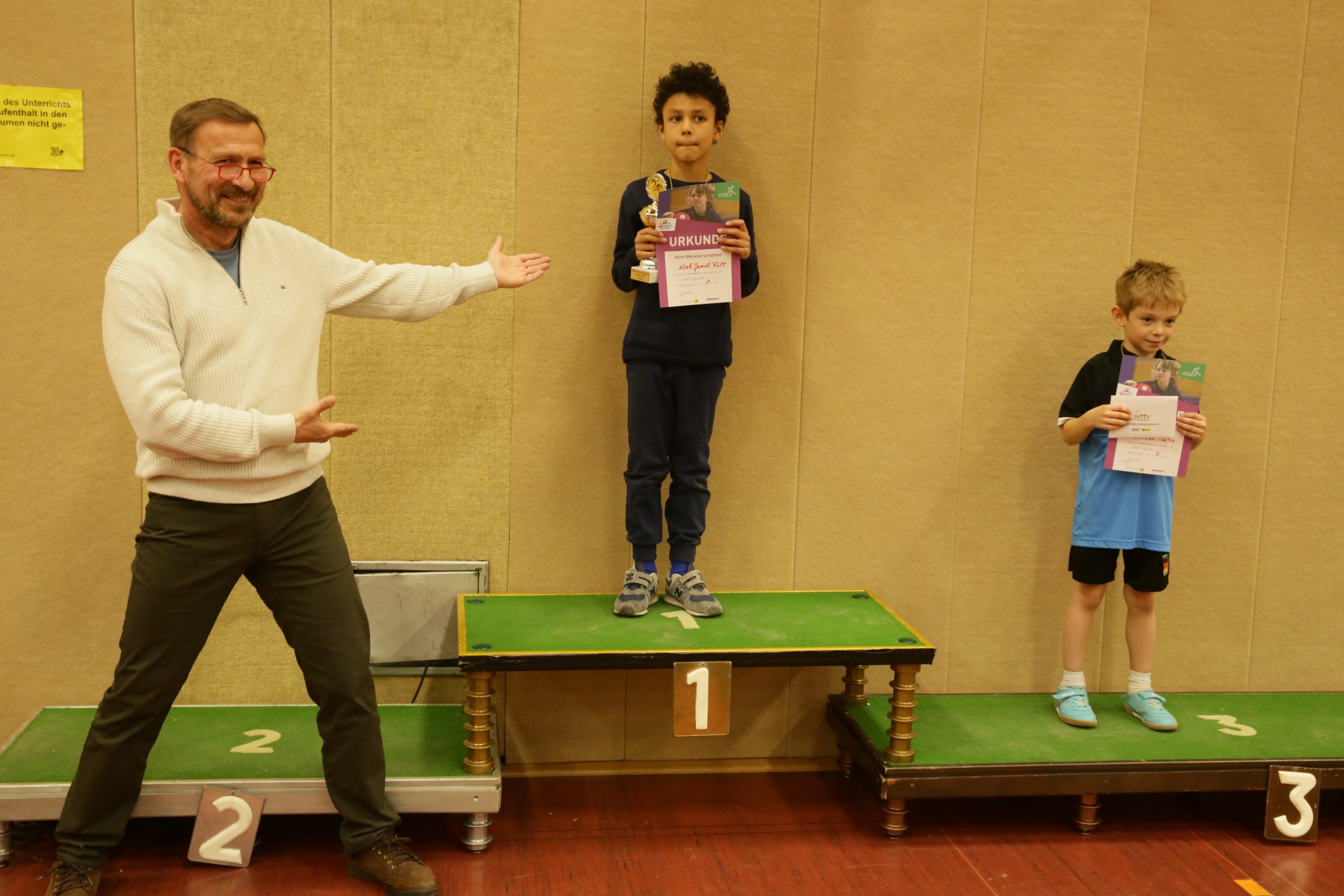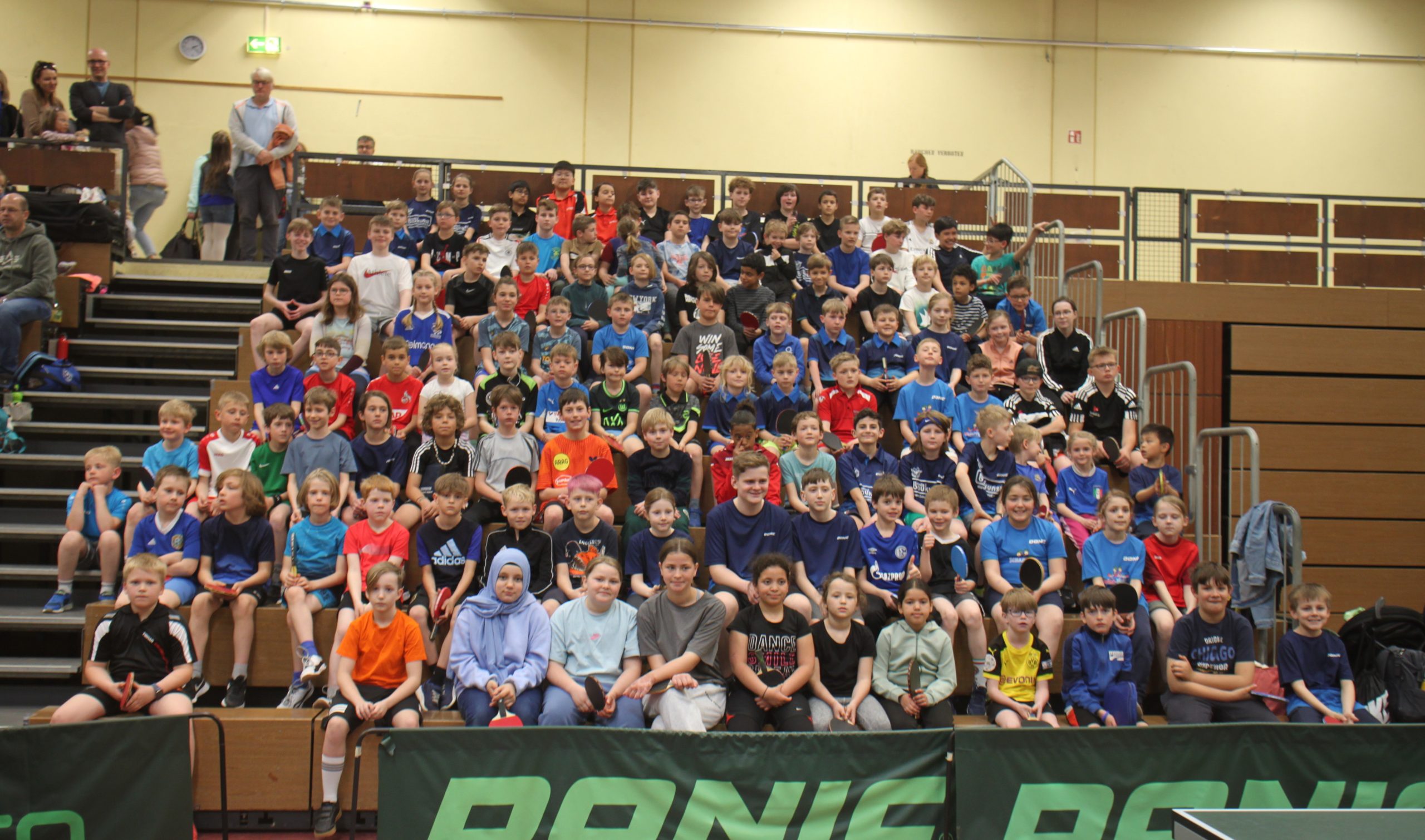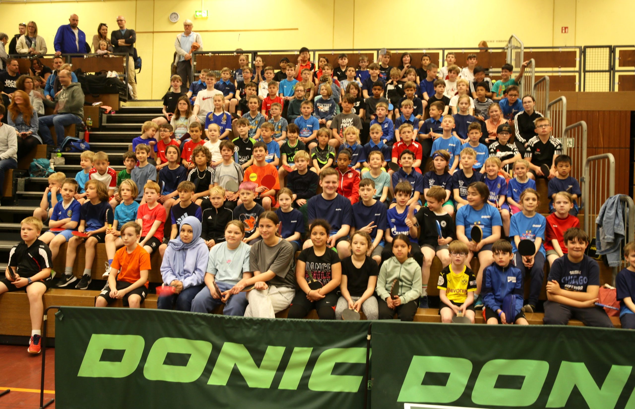 Am 06. April 2025 war es wieder soweit: Der Bezirksentscheid der Minimeisterschaften 2024/25 des Bezirks Rhein-Erft-Sieg fand bei der TTG Sankt Augustin in Sankt Augustin-Menden statt. 115 Mädchen und Jungen im Alter bis zwölf Jahre waren der Einladung von Ressortleiter Johannes Heinzen gefolgt – sie hatten sich seit September 2024 in insgesamt dreizehn Ortsentscheiden für diese Veranstaltung qualifiziert und nahmen mit ihren Eltern teilweise mehr als eine Stunde Fahrzeit in Kauf, um antreten zu können. Besonders erfreulich war, dass alle Mädchenklassen gut besetzt waren – aber auch die Jungenklassen mit Teilnehmerzahlen von bis zu 44 in einer Altersklasse konnten sich sehen lassen.