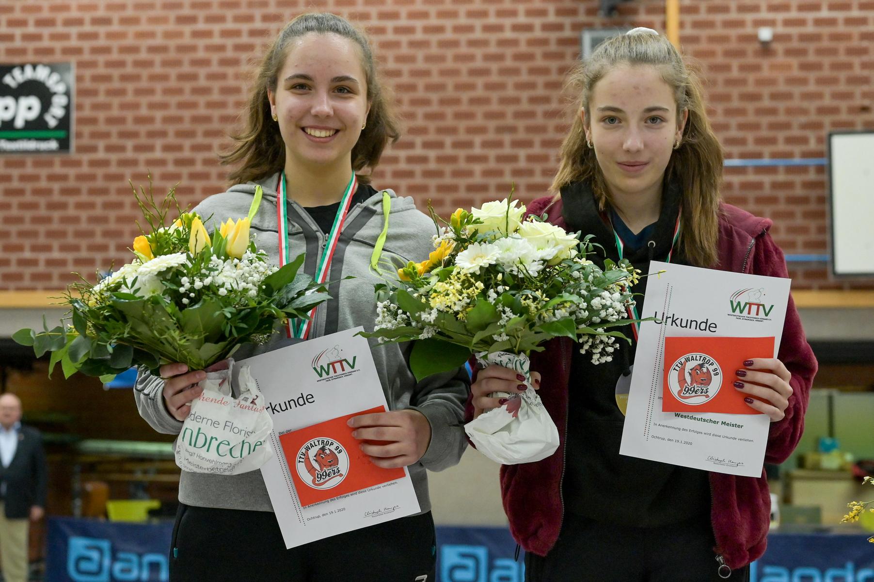 Im Damen-Doppel gewinnen Hannah und Charlotte Schönau (TTF Kreuzau/TTC GW Fritzdorf) vor Yuki Tsutsui/Verena Duhr (TuS Bad Driburg/Bayer 05 Uerdingen). Platz drei holen sich Melissa Dorfmann/Leonie Berger (Borussia Düsseldorf) und Anne Sewöster/Christiane Thöne (TuS Bardüttingdorf/TTC Paderborn)