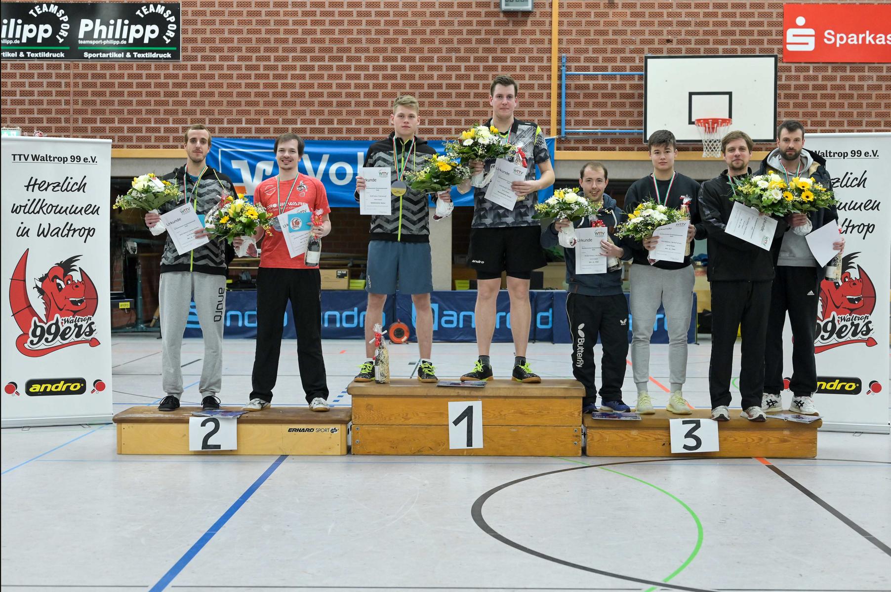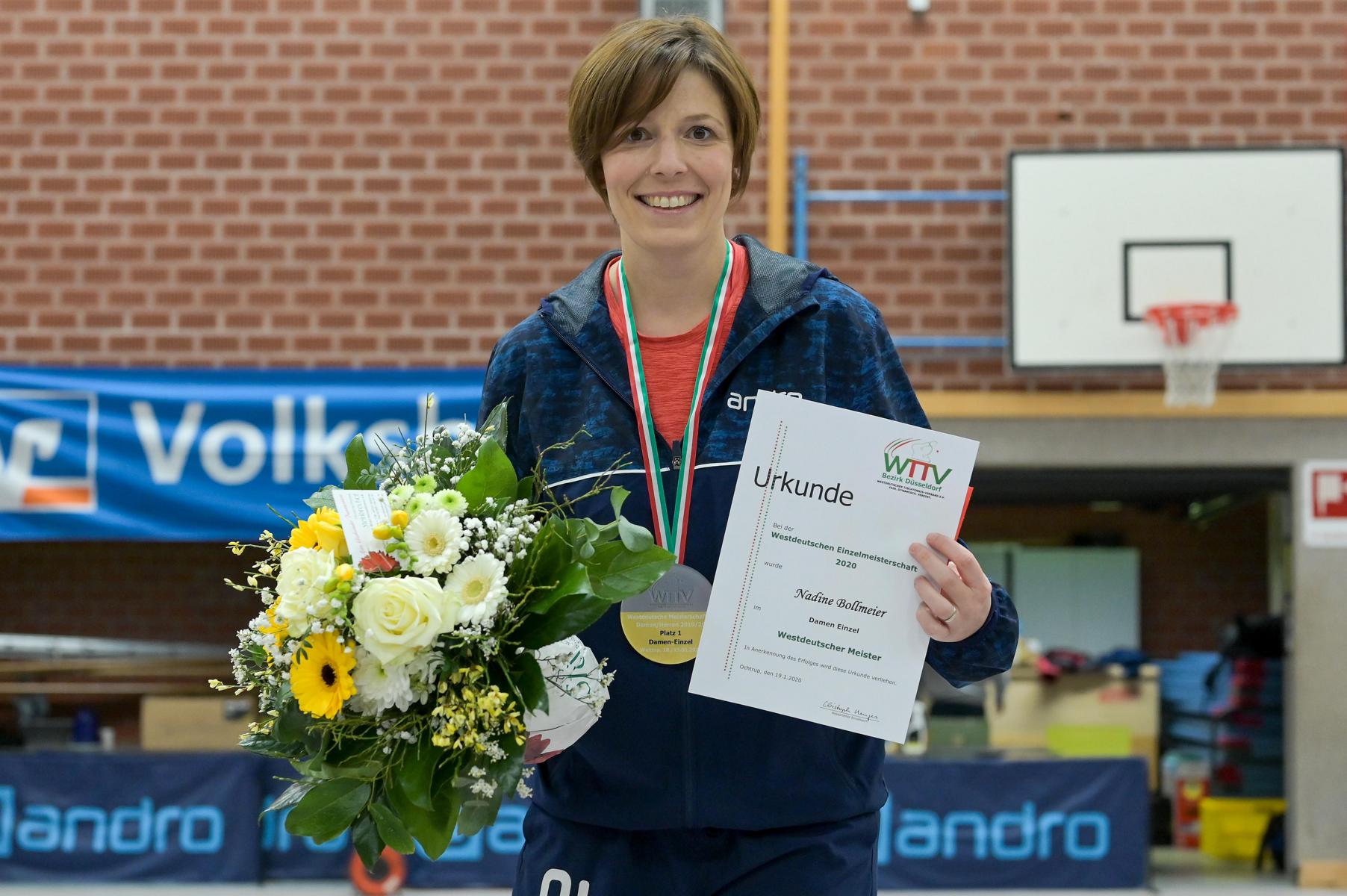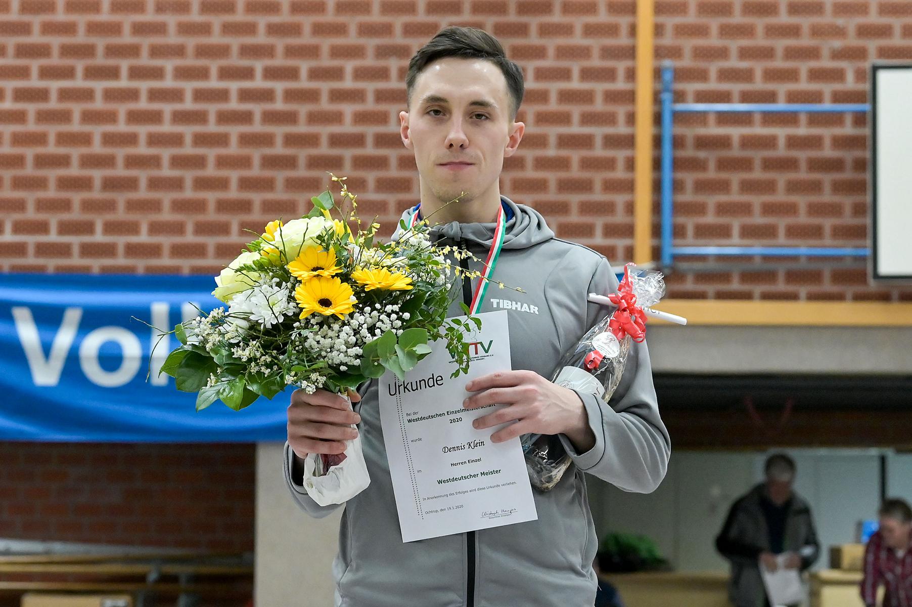 Nadine Bollmeier (TuS Bad Driburg) und Dennis Klein (TTC indeland Jülich) sichern sich bei den Westdeutschen Einzelmeisterschaften der Damen und Herren in Waltrop die Einzeltitel. Sie setzten sich in hochklassigen Endspielen gegen Anne Sewöster (TuS Bardüttingdorf) und Erik Bottroff (Borussia Dortmund) durch. Bronze gewinnen bei den Damen Yuki Tsutsui (TuS Bad Driburg) und Leonie Berger (Borussia Düsseldorf) sowie Gianluca Walther (1. FC Köln) und Kirill Fadeev (Borussia Dortmund) bei den Herren.