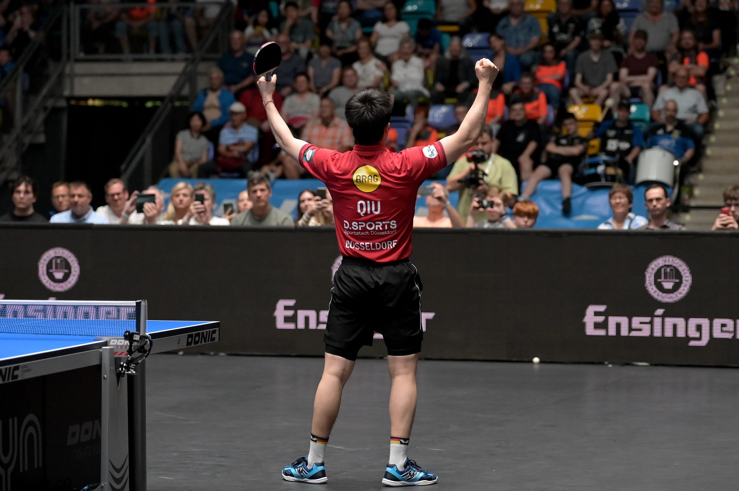 Mit einem Zwischenstand von 2:1 für die Borussen durften Dang Qiu und Darko Jorgic im nächsten und letzten Duell an den Tisch. Nachdem Qiu den ersten Satz mit 9:11 verloren hatte, schaffte er das sehr seltene Kunststück in der TTBL, Jorgic mit 11:0 im zweiten Satz zu bezwingen. Auch die Sätze drei (11:8) und vier (11:4) holte sich der Nationalspieler, und nach dem letzten Ballwechsel gab es kein Halten mehr auf der Spielerbank und bei den Fans.