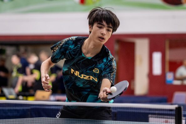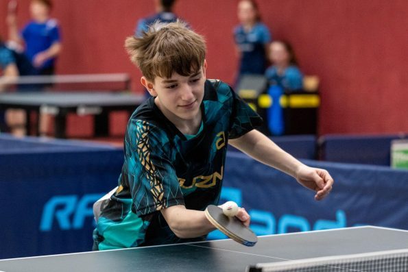 Mit einer schweren Vorrundengruppe starteten die WTTV-Jungen 15 in der Besetzung Sebastian Lenz, Victor Voigt, Thomas Pohl, Noah Oeynhausen in den diesjährigen Deutschlandpokal. Gleich zum Auftakt wartete mit Baden-Württemberg einer der Turnierfavoriten. Sebastian und Noah mussten sich ihren deutlich höher eingeschätzten Gegnern geschlagen geben. Im dritten Einzel zeigte Thomas eine starke Leistung gegen Len Müller und brachte den Favoriten mit cleverem Abwehrspiel ordentlich ins Wanken. Doch auch hier setzte sich Baden-Württemberg im Entscheidungssatz durch. Das anschließende Doppel von Sebastian und Victor begann vielversprechend, ging am Ende jedoch ebenfalls verloren – damit war die Auftaktniederlage besiegelt.