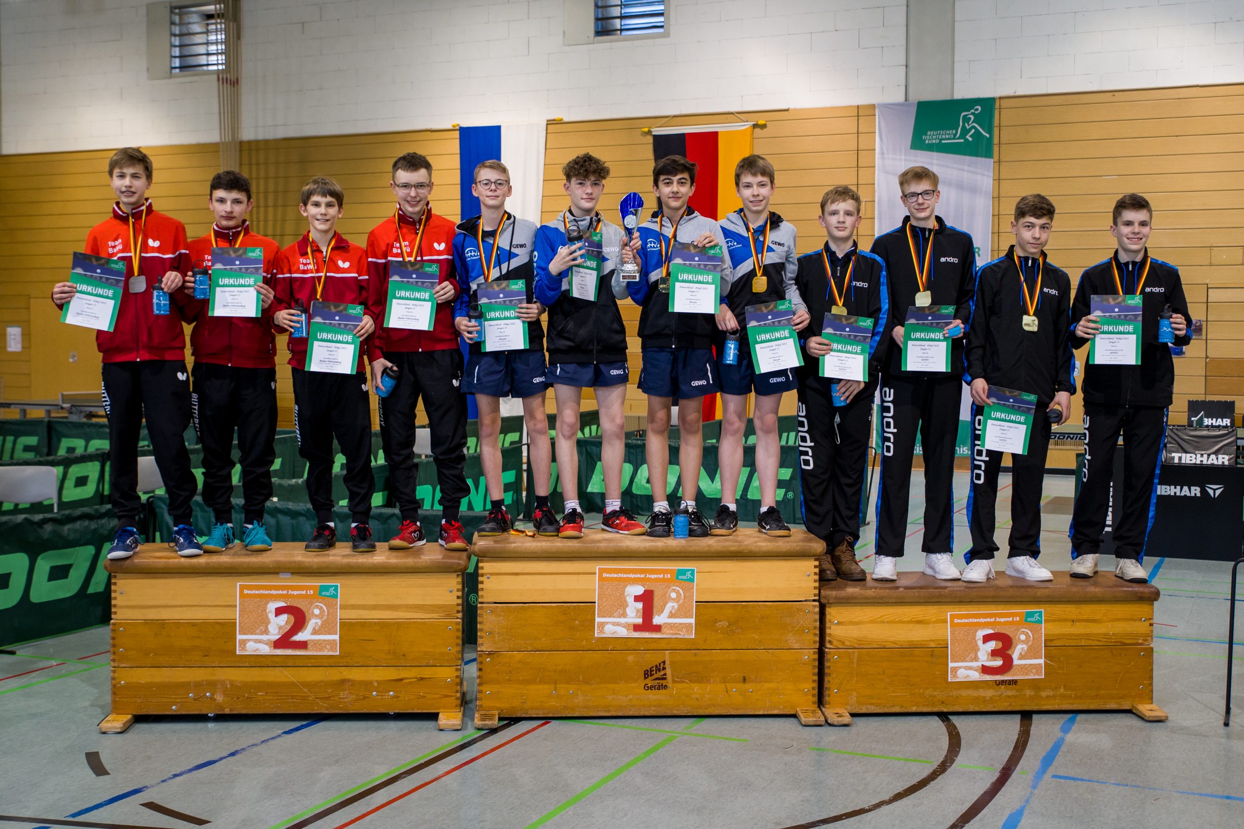 Zum Deutschlandpokal traf sich die nationale Elite des Tischtennis-Nachwuchses an zwei Veranstaltungsorten: Während die U13-Premiere in Ingolstadt ausgetragen wurde, spielten die U15-Teams in Weinheim. Herausragend und sehr erfreulich war der Gewinn der Bronze-Medaille des U15-Teams der Jungen, aber auch die drei weiteren Mannschaften des WTTV zeigten durchweg starke Leistungen.