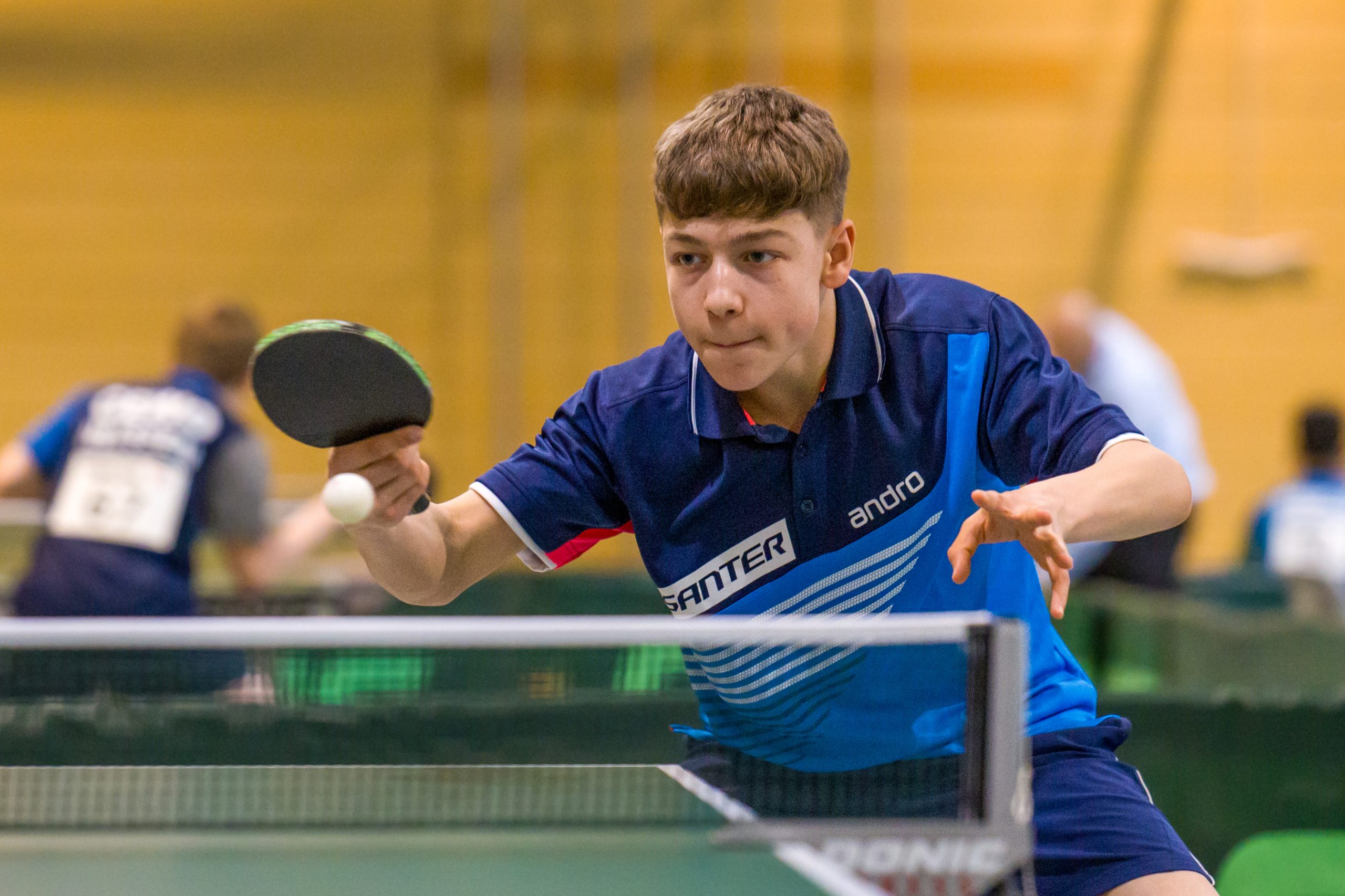 Nach dieser harten Niederlage ging es nach kurzer Pause in die Partie gegen das Saarland. Hier konnten die Jungs noch einmal zeigen was sie können und ließen sich dabei durch die Niederlage nicht unterkriegen. Noah startete gegen den Spitzenspieler Sokolov und zeigte in den ersten 2 Sätzen sein bestes Tischtennis.