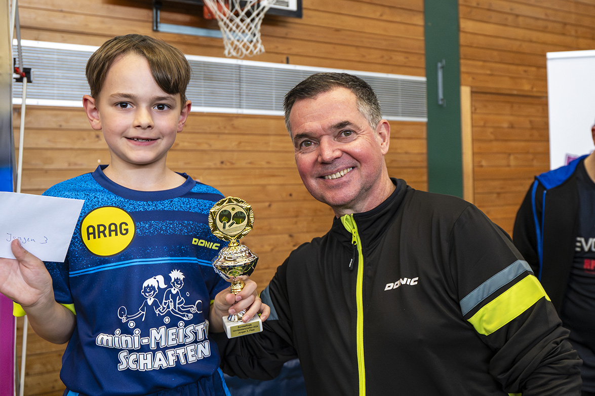 Einen Rang besser platzierte sich Ole Brack bei den Jungen. Auch er kassierte in der Vorrunde zwei Niederlagen, 0:3 gegen Konstantin Kindlein, den späteren Bundessieger, und 1:3 gegen Alexander Koseck aus Thüringen. Dennoch reichte die 6:2-Bilanz zu Rang zwei, denn die nächstplatzierten hatten je eine Niederlage mehr auf dem Konto. Im Halbfinale unterlag Ole dann den Lokalmatador aus Bayern, Hunor Roland Deak, mit 1:3, hatte im letzten Satz mit 11:13 das Nachsehen. Auch im Spiel um Platz drei zog Ole den kürzeren: Nach 0:3 gegen Milo Weyand aus Hessen landete er knapp neben dem Treppchen.