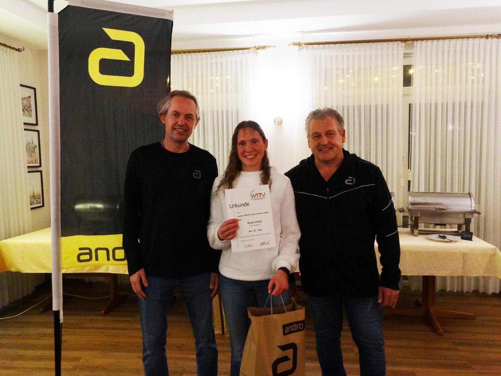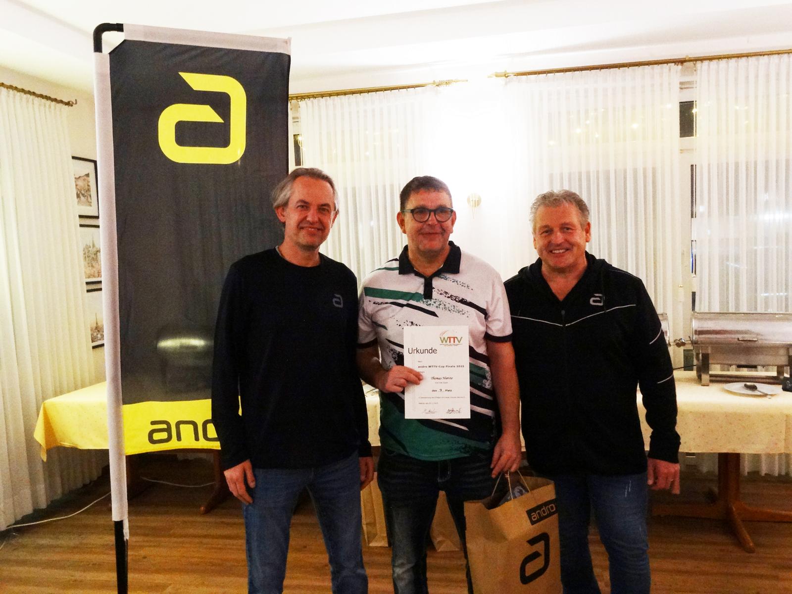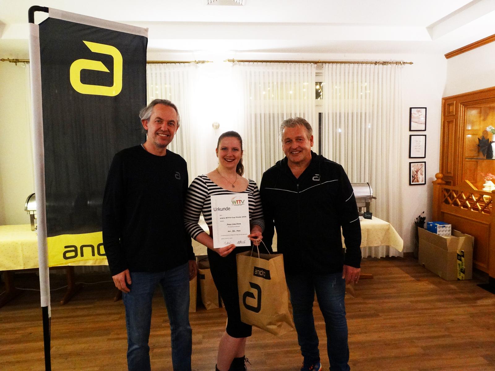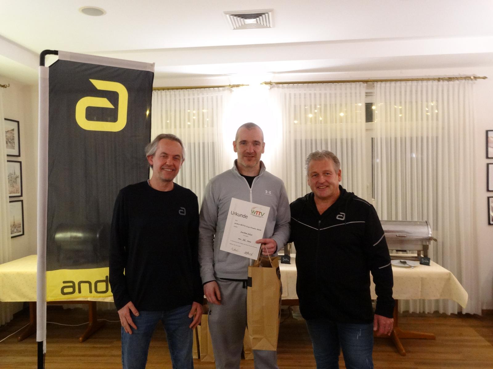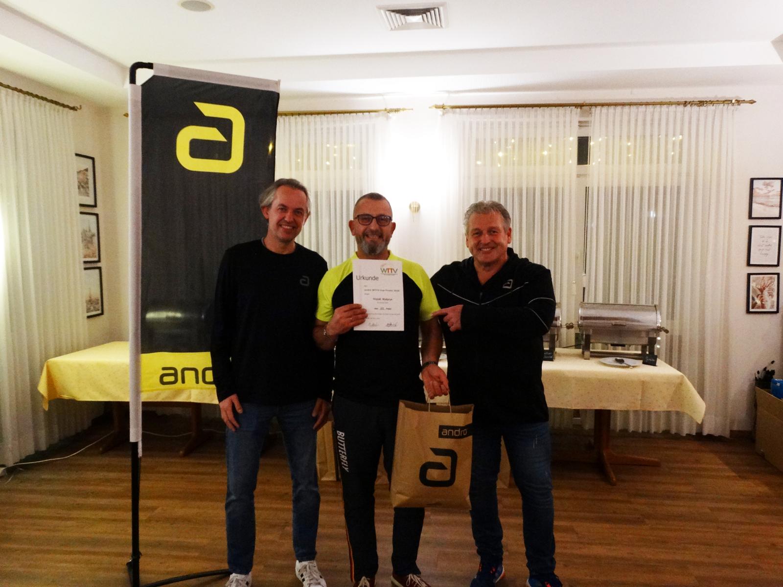 Ein besonderer Dank gilt dem TTV Waltrop, der das Turnier ausrichtete und sich zugleich bereit erklärt hat, auch die Finalturniere der Jahre 2026 bis 2028 zu übernehmen. Hervorzuheben ist zudem die Unterstützung des Titelsponsors andro, der statt der angekündigten 3.500 Euro Warenwert letztlich Preise im Gesamtwert von über 4.000 Euro bereitstellte.