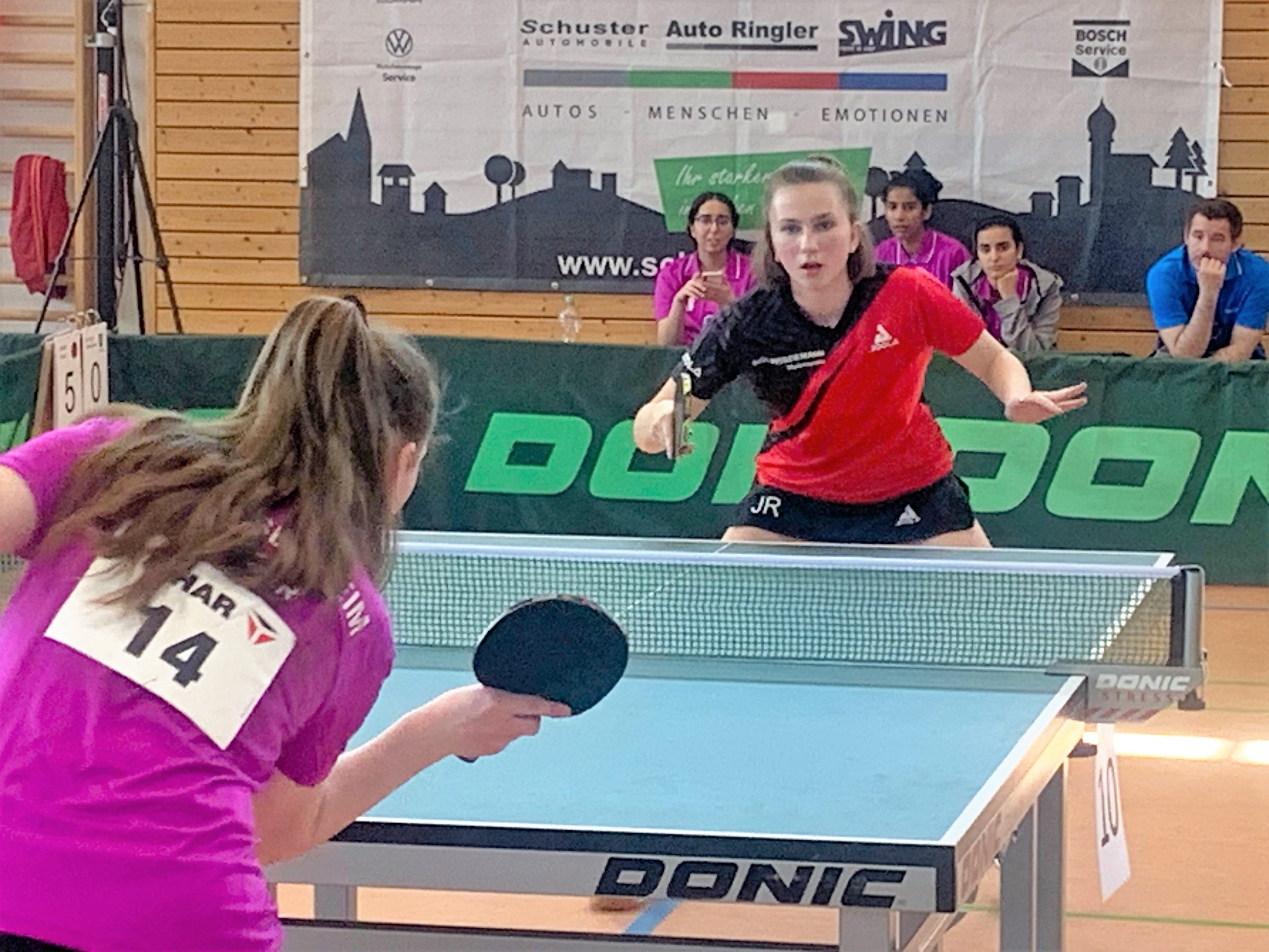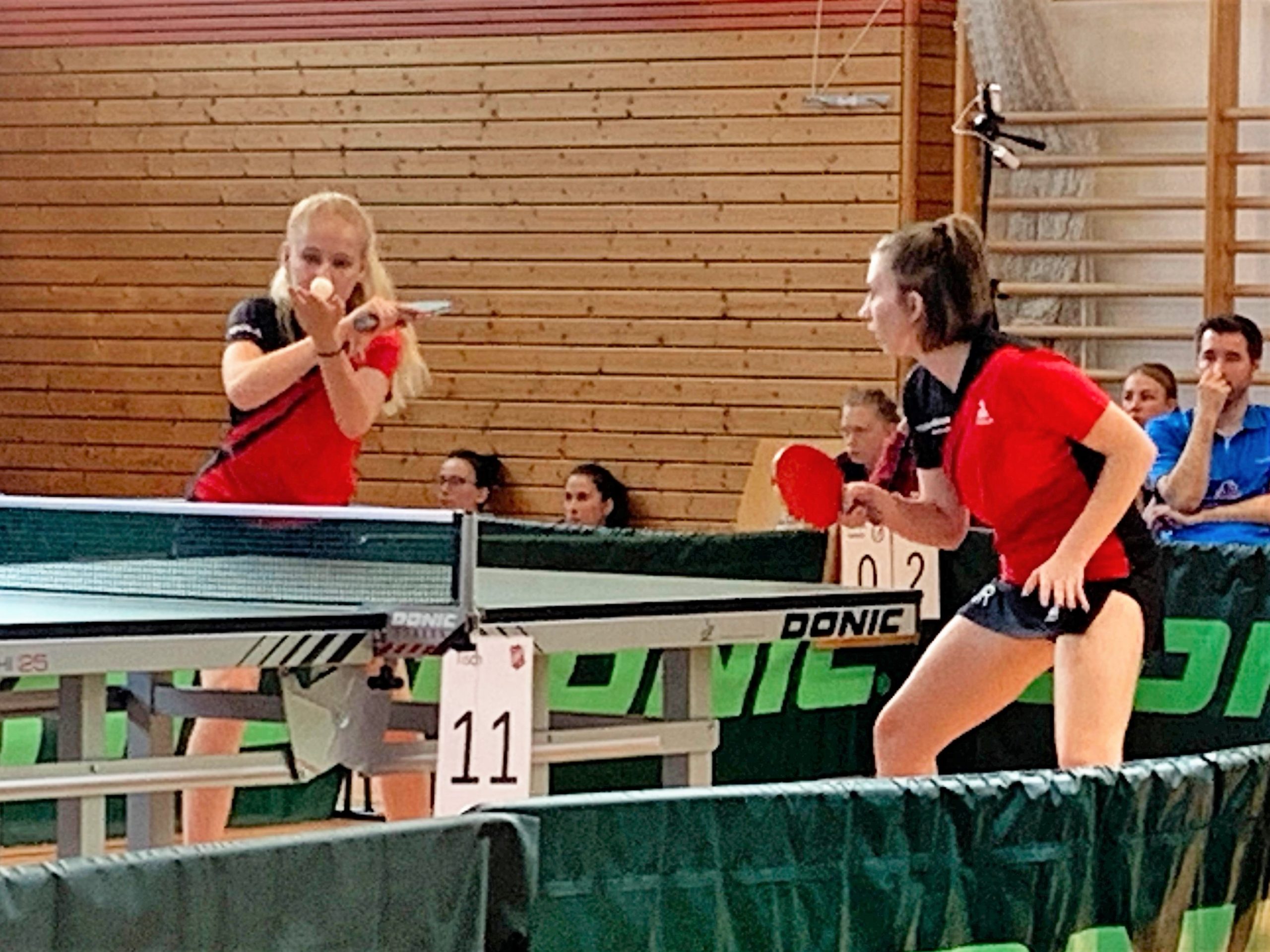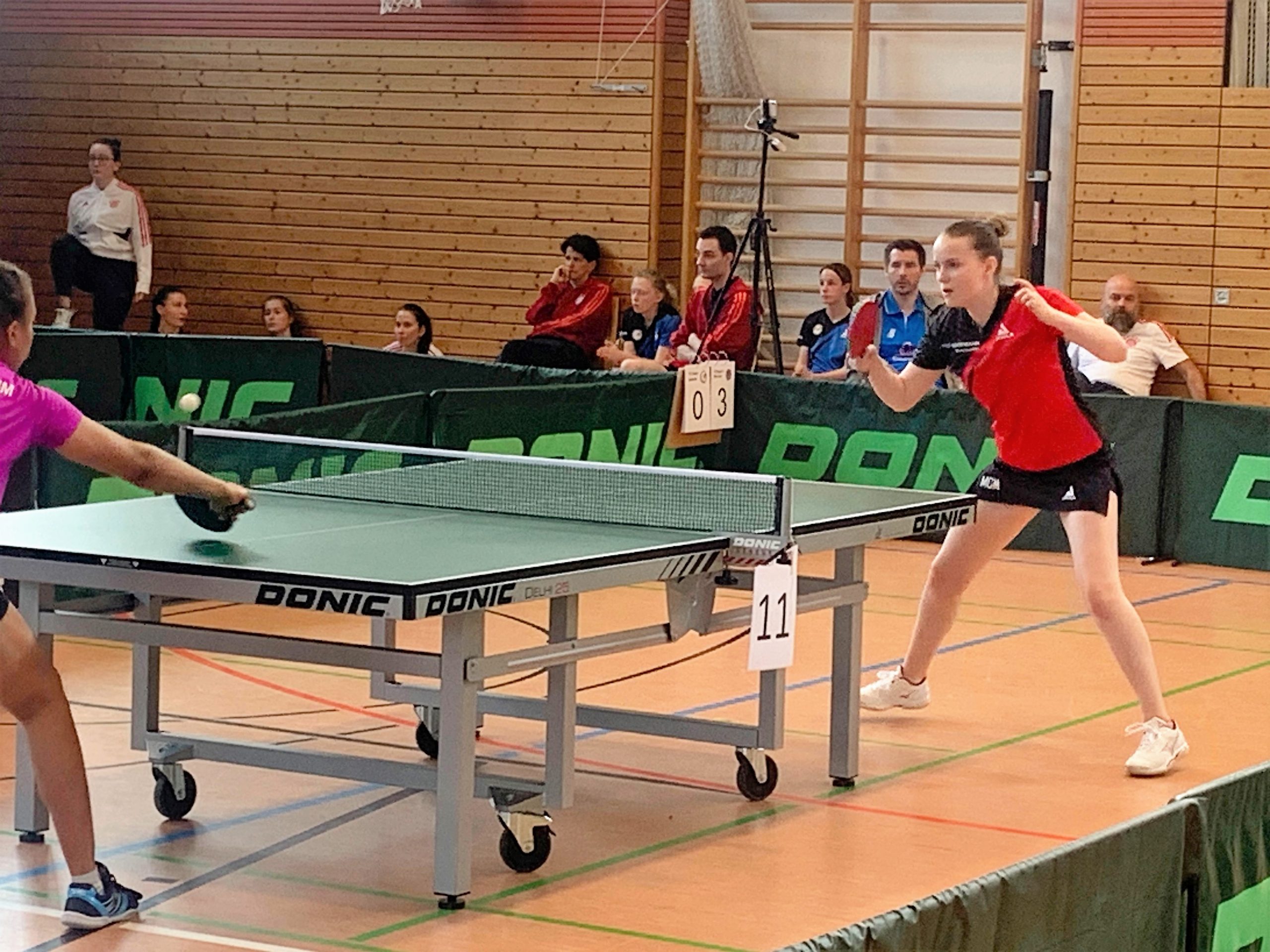 Madeea und Jana konnten ihr Doppel gewinnen, Michelle und Angelina mussten nach einem äußerst knappen 15:17 im fünften Satz leider den Gegnern gratulieren. In den beiden Einzeln gegen das starke obere Paarkreus der Mühlhausener waren Chancen da, aber am Ende verloren Medeea und Angelina beide mit 0:3, so stand es 1:3. Durch den Sieg von Michelle und der Niederlage von Jana und dem daraus resultierenden 2:4 rückte das Halbfinale in immer weitere Ferne. So kam es dann auch, denn beide Spiele im oberen Paarkreuz gingen erneut verloren und damit verloren die Mädels das erste Spiel mit 2:6.