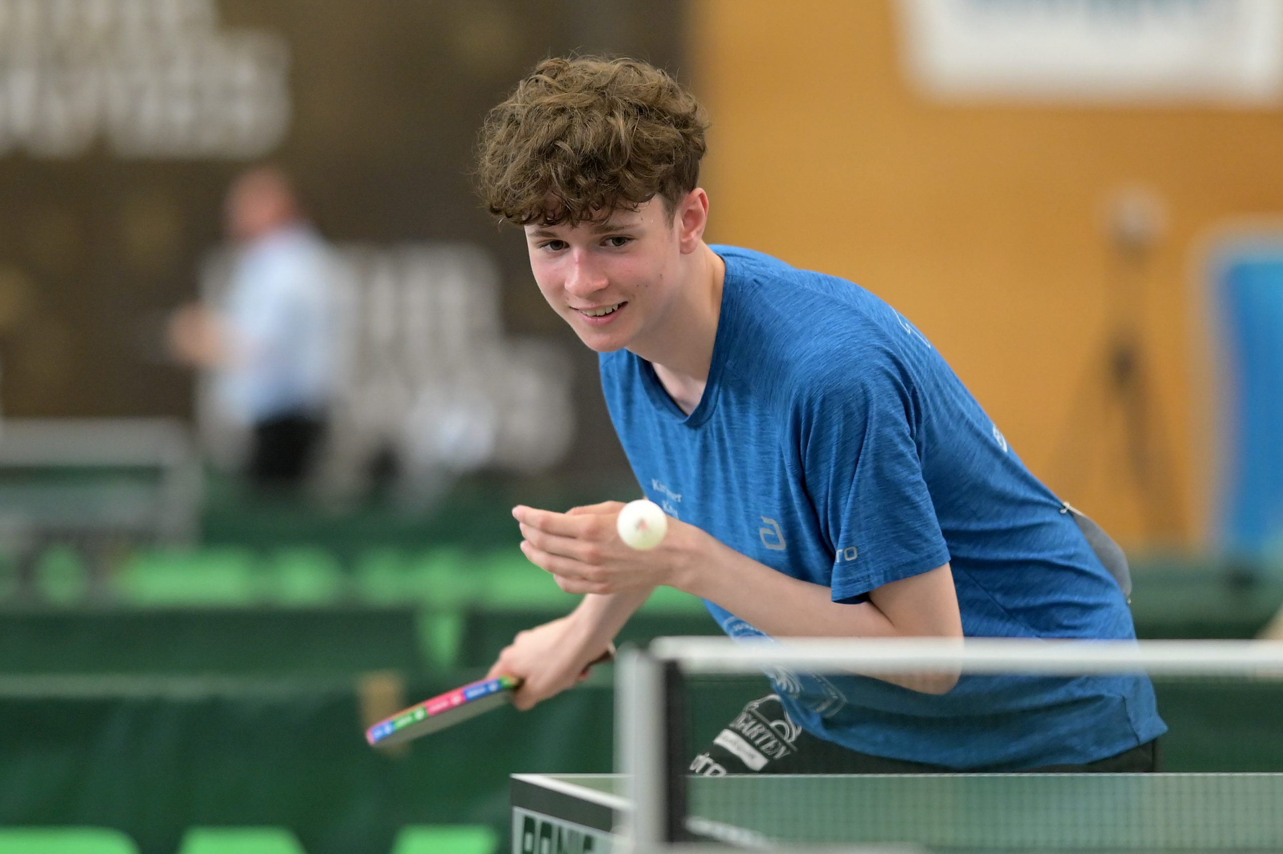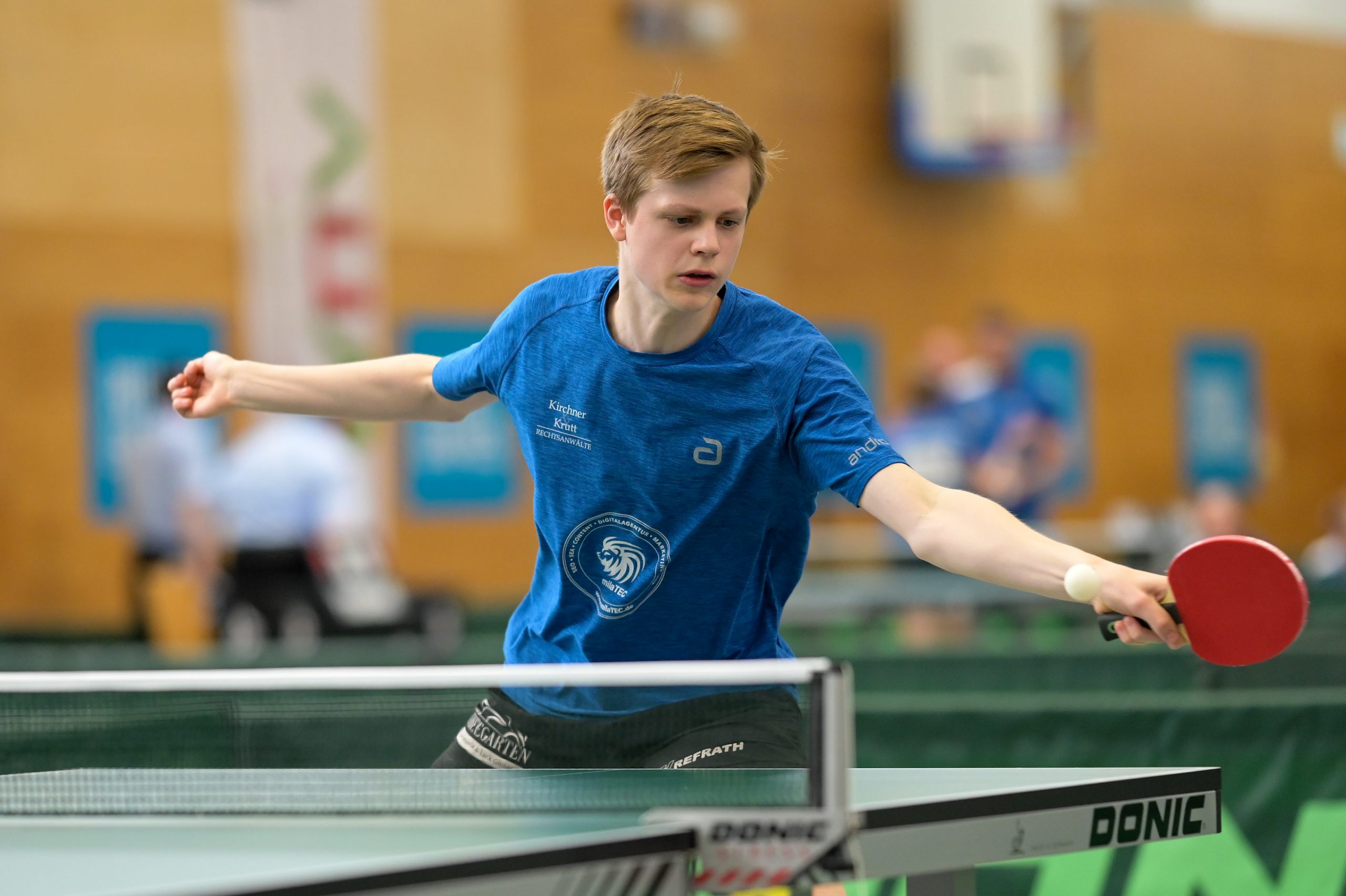 Das Spitzeneinzel gewann Alex Sahakiants (gegen Wolf) nach sehr starker Leistung mit 3:1. „Alex hat am ganzen Wochenende fantastisch abgeliefert, stark gespielt, aber auch die Mannschaft geführt, einfach klasse“, lobte Julian Peters seinen Spitzenspieler. Im zweiten Einzel des oberen Paarkreuzes unterlag Tobias Hackmann überraschend deutlich mit 0:3 gegen Samson, damit schmolz der Satzvorsprung des TV Refrath auf plus 1.