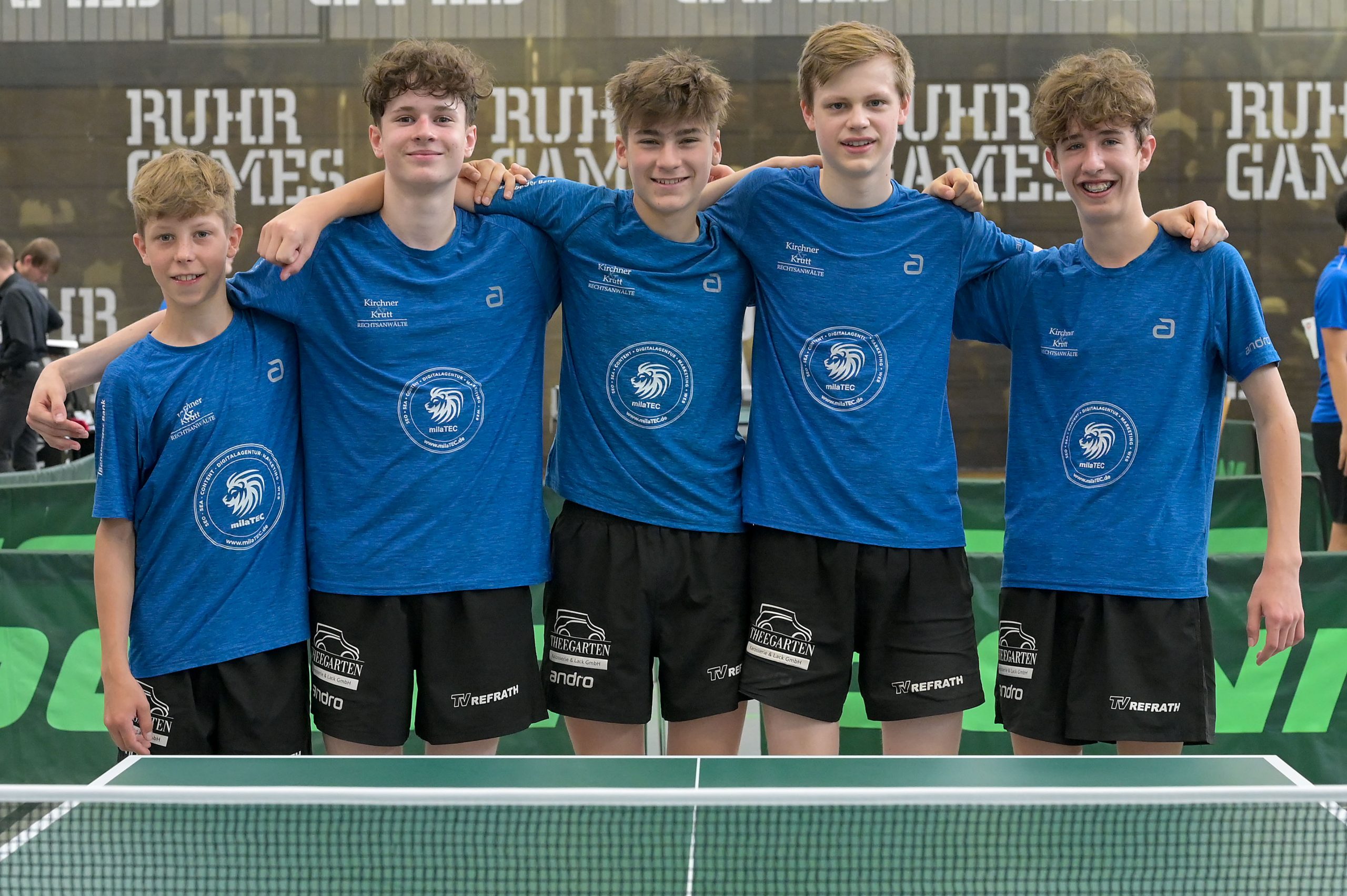 Die Gruppengegner hießen FC Bayern München, Union Schönebeck und TTV Niederlinxweiler. Mit drei sehr souveränen Siegen (6:0, 6:2, 6:1) wurden die Refrather deutlicher Gruppensieger. „Das war eine sehr starke Vorstellung am Samstag“, lobte Julian Peters seine Mannschaft.