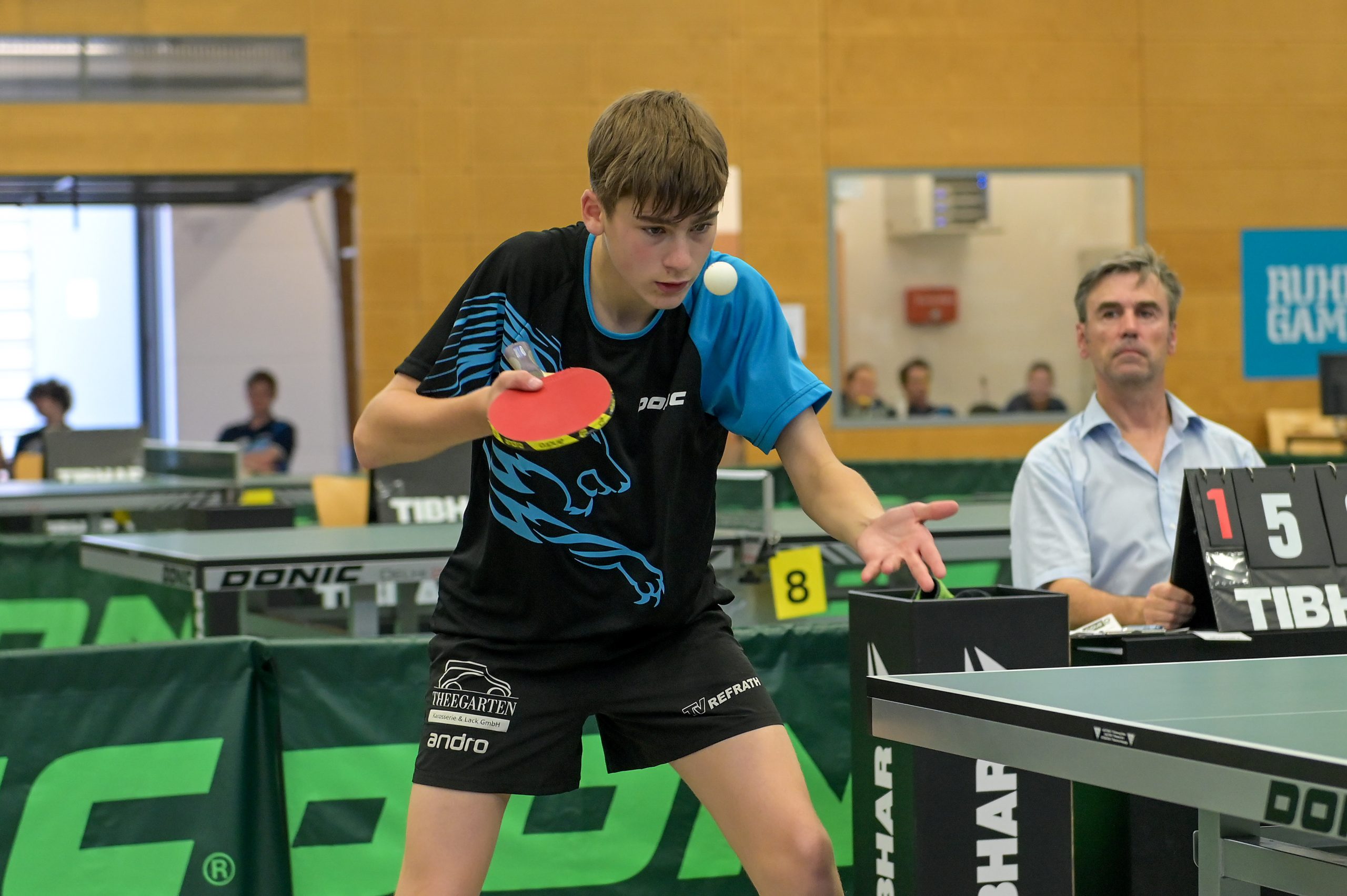 Im vorletzten Spiel des Tages unterlag David Vollmar mit 1:3 gegen Kaiser und der TV Refrath lag mit 4:5 im Hintertreffen. „Wir wussten, wir brauchen unbedingt den Sieg von Karl im letzten Spiel“, so Eberhardt, „natürlich wussten wir auch, dass bei einem 3:2 Sieg die Bälle gezählt werden müssen“. Karl Tennie siegte dann tatsächlich mit 3:2 gegen Rath und bescherte den Refrathern große Glücksgefühle, allerdings mit unklarem Ausgang. „Wir waren Mega-Happy nach Karls Spiel“, so Jakob Eberhardt, „er hat Matchbälle abgewehrt und fantastisch gekämpft und uns die Chance erhalten auf den Sieg“.