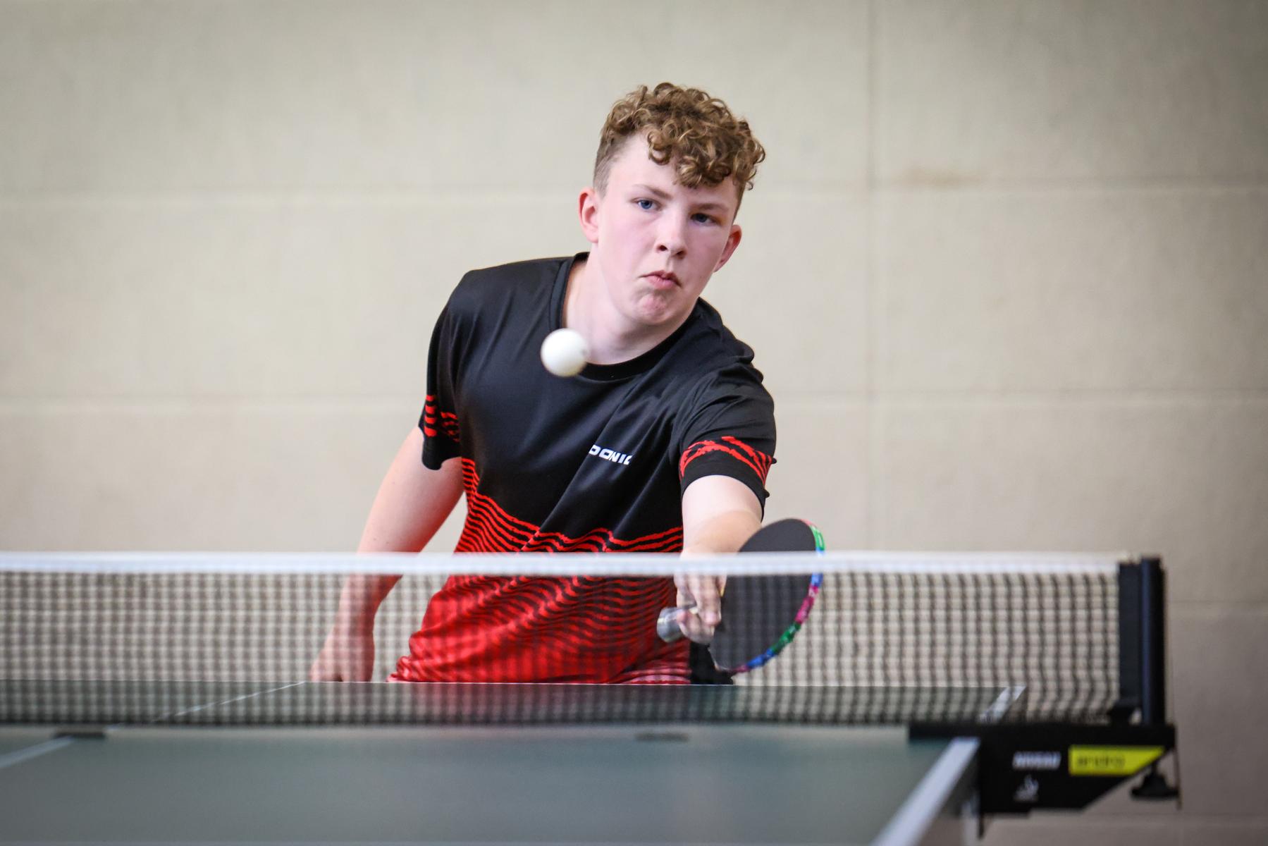 Im Semifinale standen sich dann Lukas und Dion sowie Maximilian und Felix gegenüber. Im Duell der beiden Linkshänder kam Dion mit dem Spiel von Lukas, der auf der Rückhandseite mit langen Noppen nah am Tisch agiert, nicht zurecht und unterlag mit 0:3. Die zweite Vorschlussrunde war hingegen sehr ausgeglichen und ging über die volle Distanz. Am Ende setzte sich Maximilian im fünften Satz mit 11:4 durch.