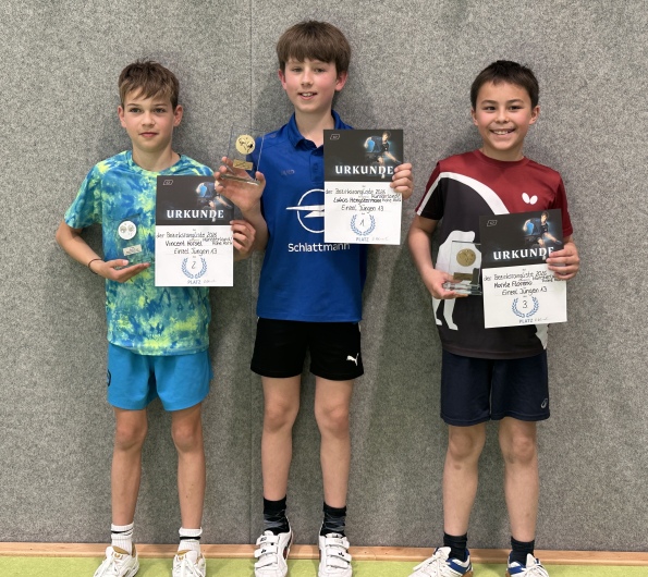 Am Samstag machte bei den Jungen 13 Lukas Hengstermann (Westfalia Gemen) das Rennen und vertritt den Bezirk auf WTTV-Ebene. Er siegte mit nur einer Niederlage vor Vincent Horsel (SC Südlohn) und Moritz Floreno (SSV Rhade).
