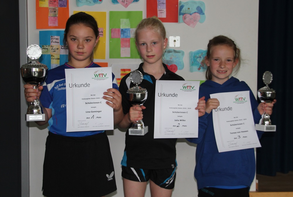 - Siegerfoto Schülerinnen C: v.l.: Lina Geminger (1. Platz), Jalia Wilke (2. Platz), Teresa von Heesen (3. Platz) – Foto: I.Müller
