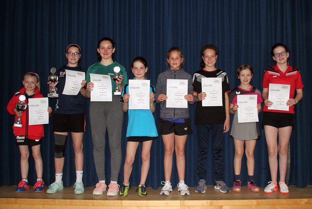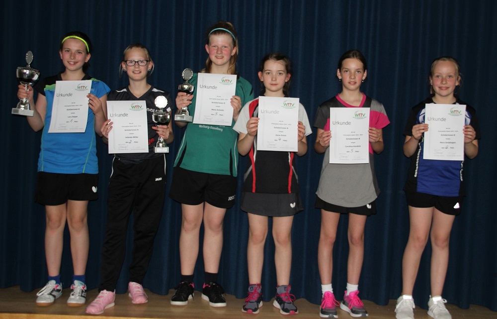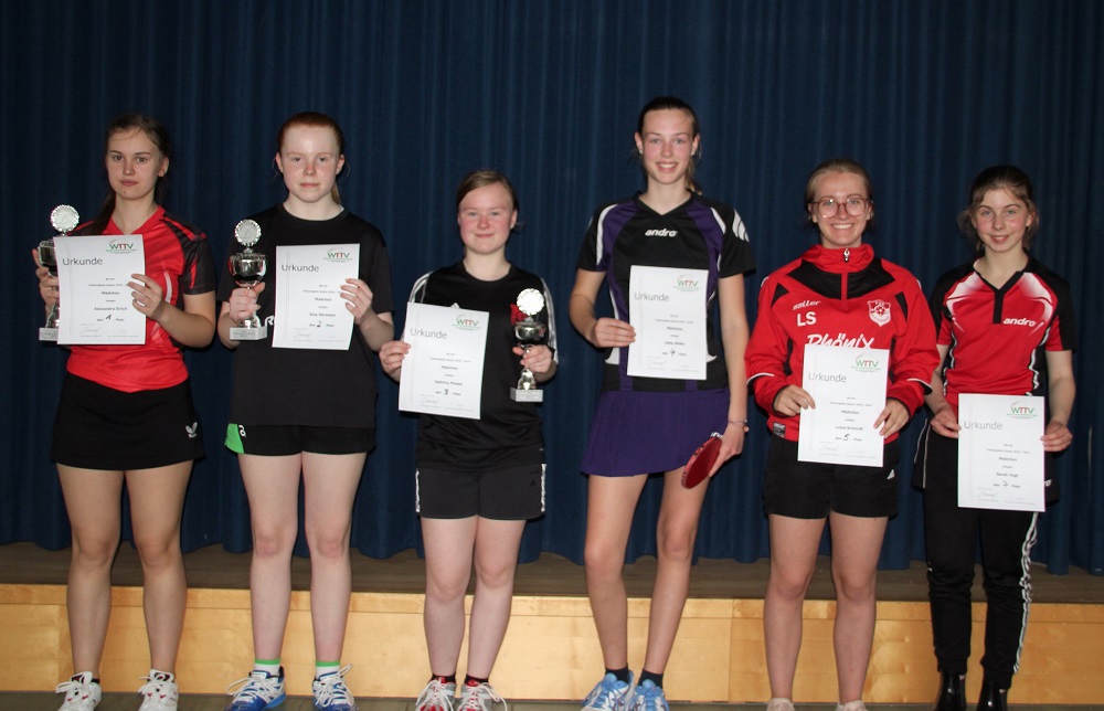 - alle TN Schülerinnen B: v.l.: Lara Deppe (1. Platz), Jolanda Wilke (2. Platz), Mona Schmitz (3. Platz), Anna Eirich (4. Platz), Carolina Korstick (5. Platz), Mara Drolshagen (6. Platz) – Foto: I.Müller