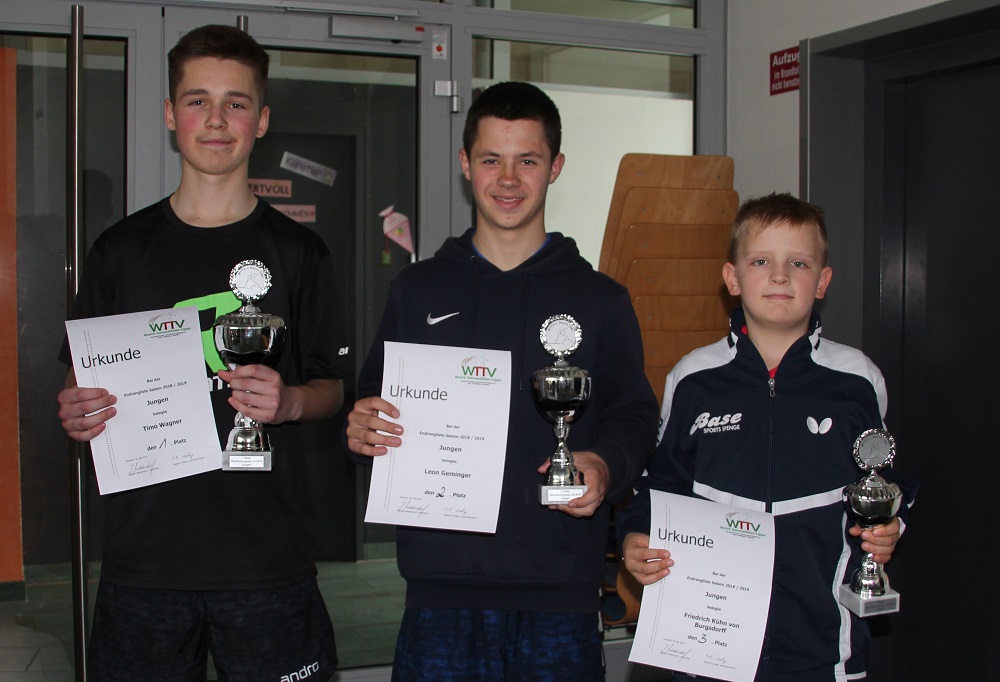 - Siegerfoto Jungen: v.l.: Timo Wagner (1. Platz), Leon Geminger (2. Platz), Friedrich Kühn von Burgsdorff (3. Platz) – Foto: I.Müller