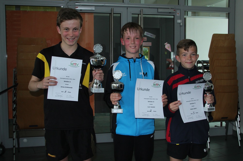 - Siegerfoto Schüler A: v.l.: Jonas Zirklewski (1. Platz), Levi Jaekel (2. Platz), Fabio Zelici (3. Platz) – Foto: I.Müller