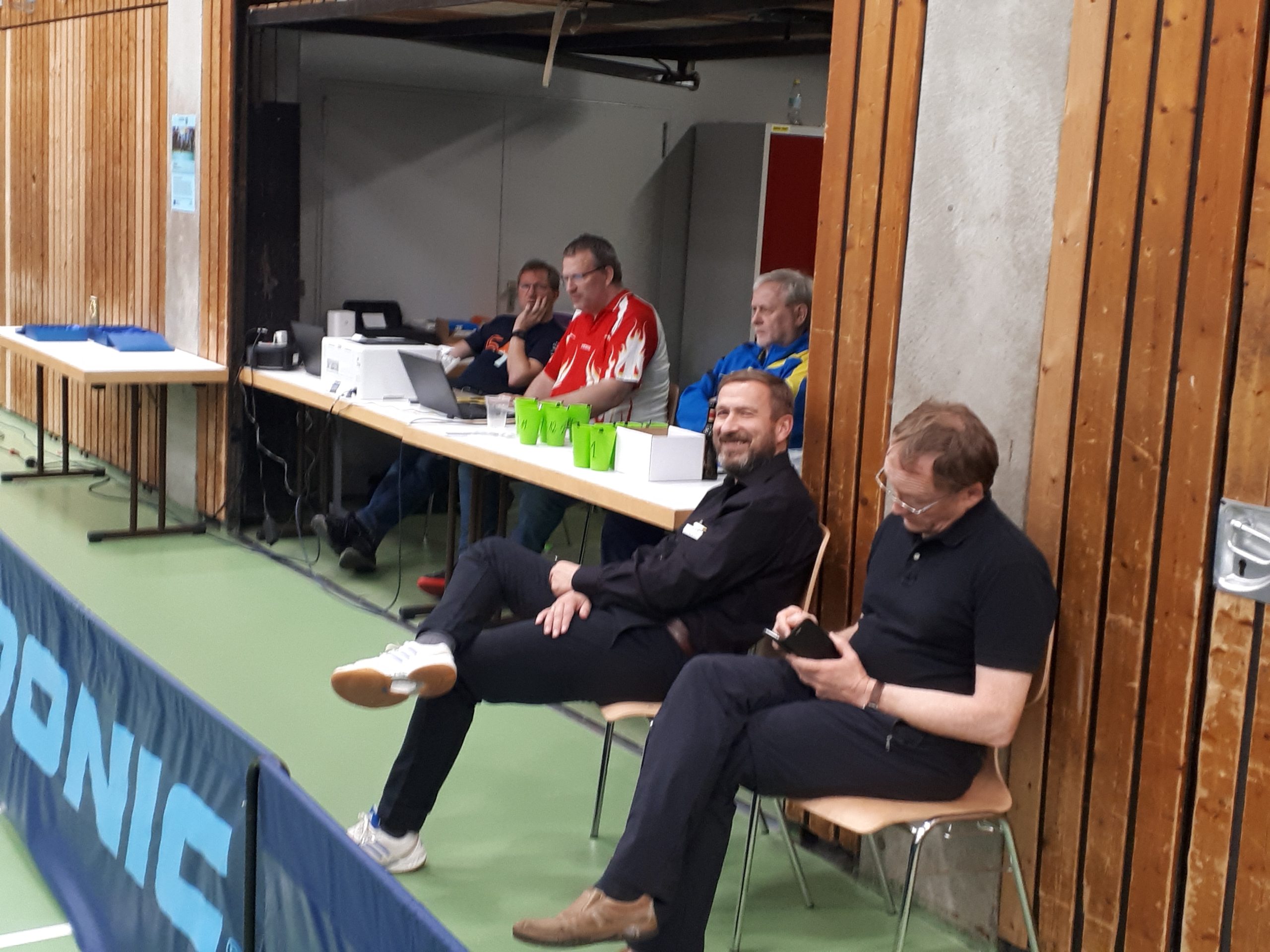 - Die Turnierleitung beobachtet aufmerksam das Geschehen an den Tischen