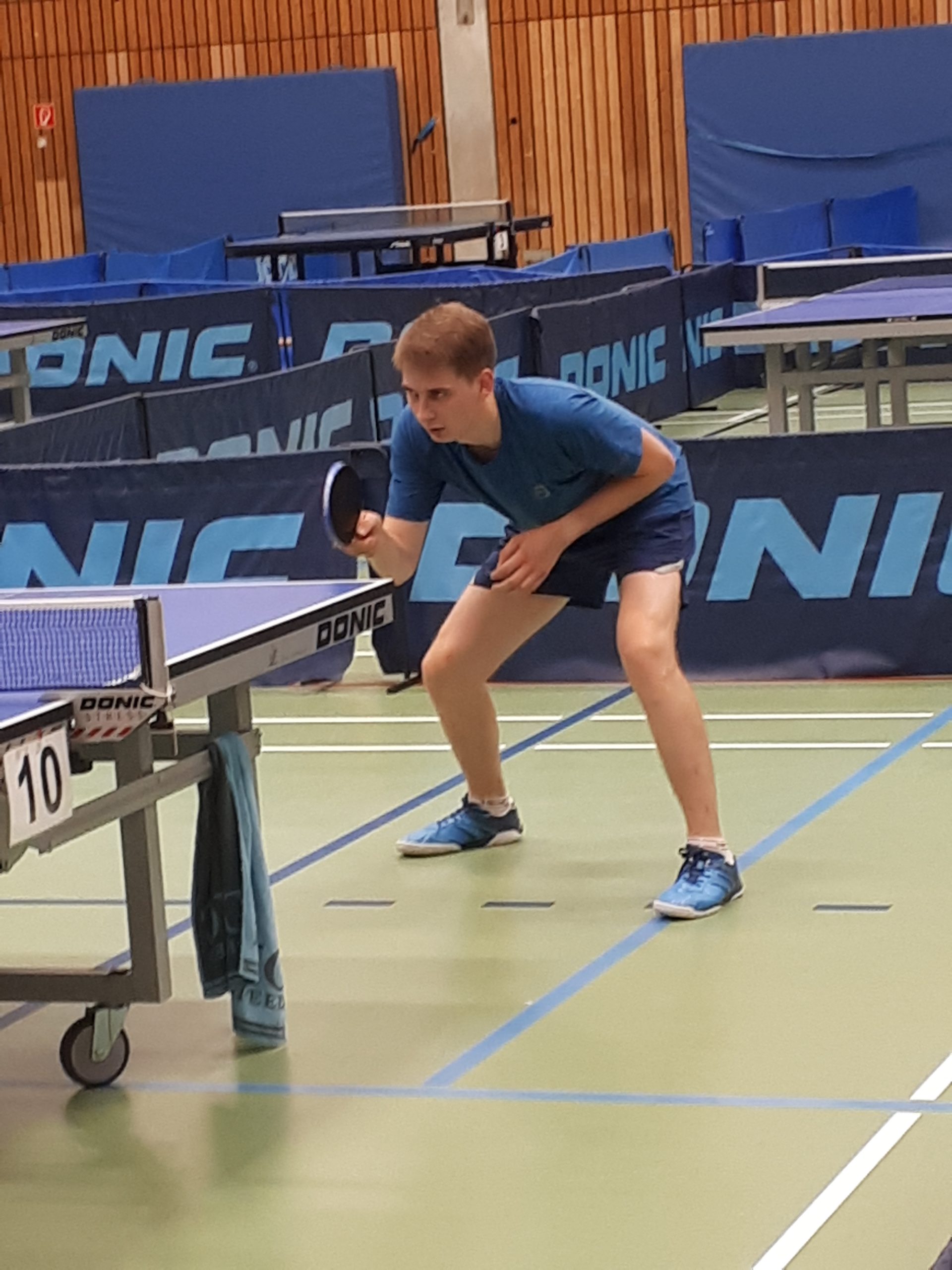 - Timo Banko konzentriert sich auf den Aufschlag von Jonas Langer