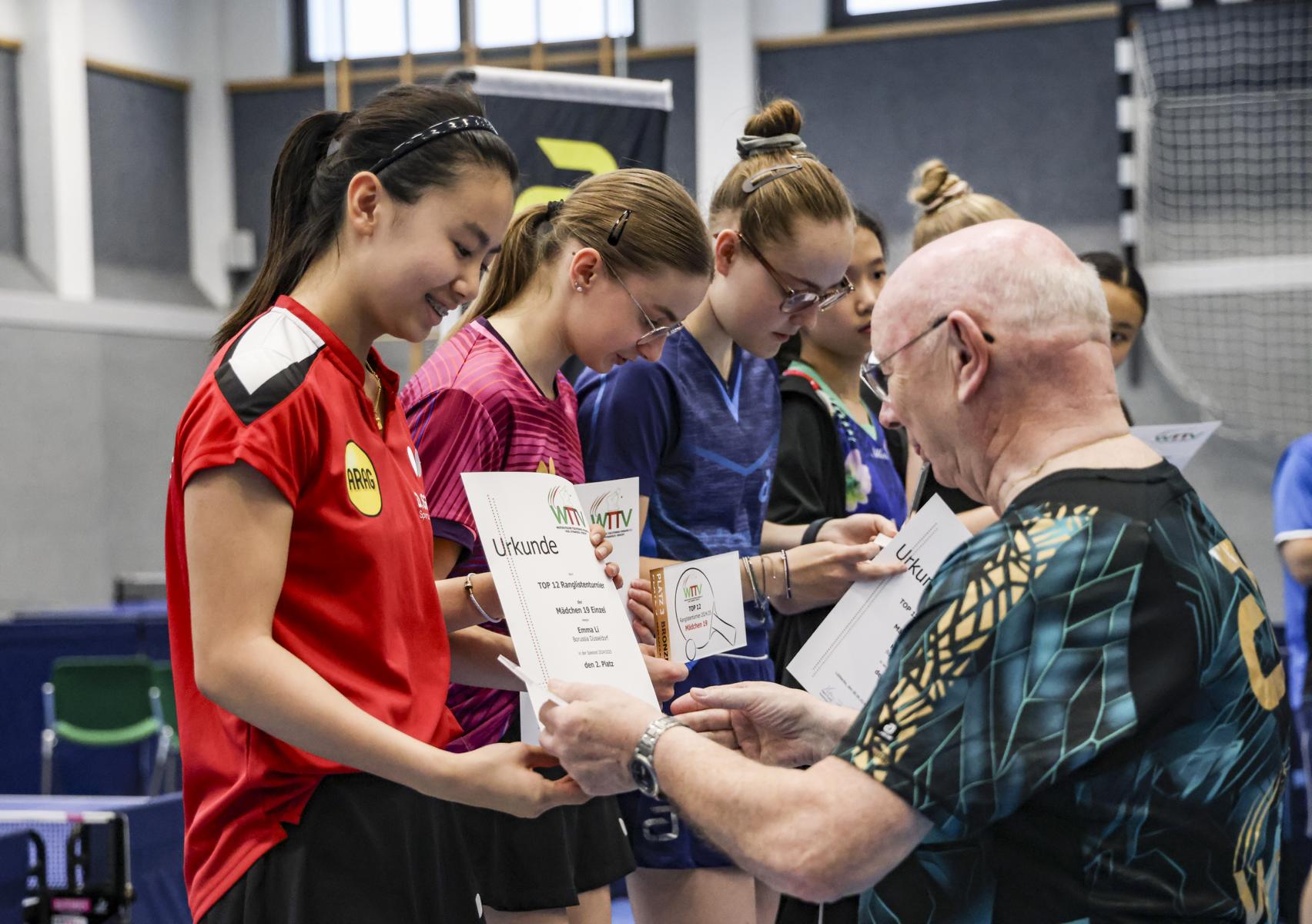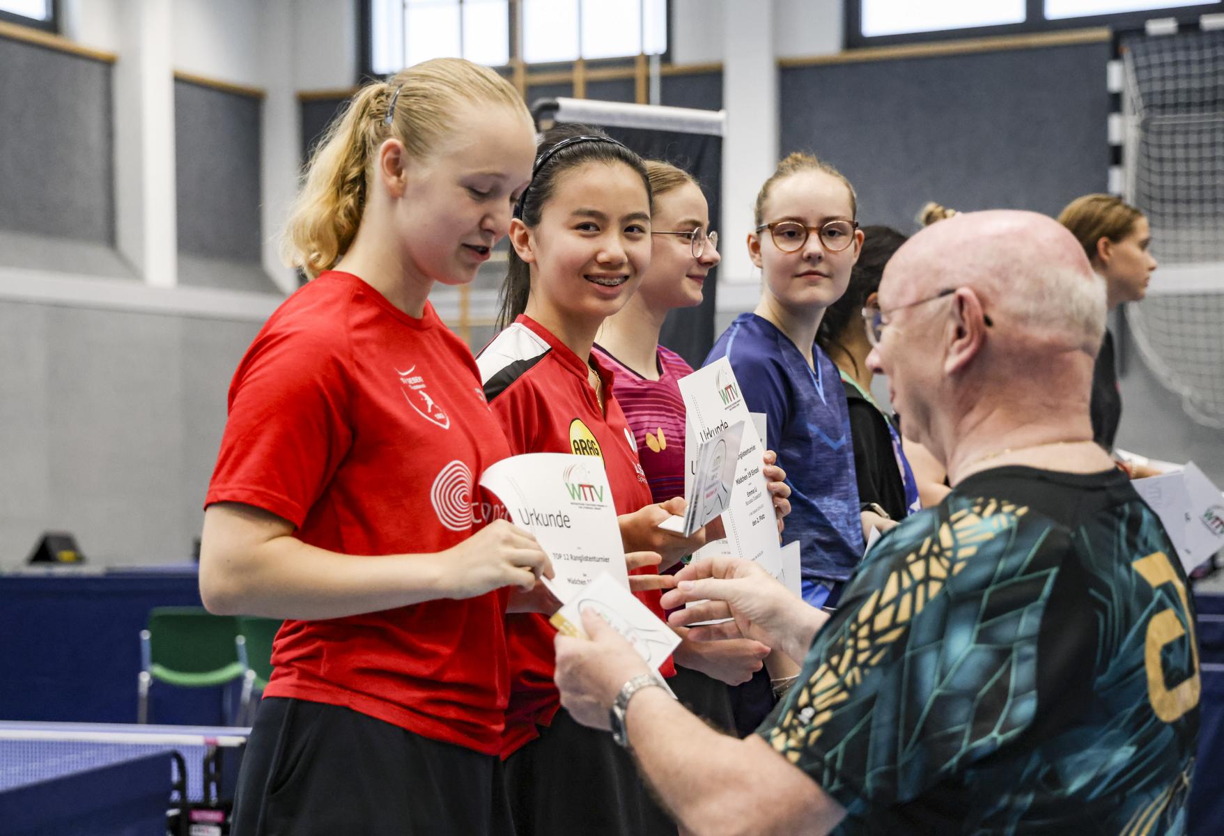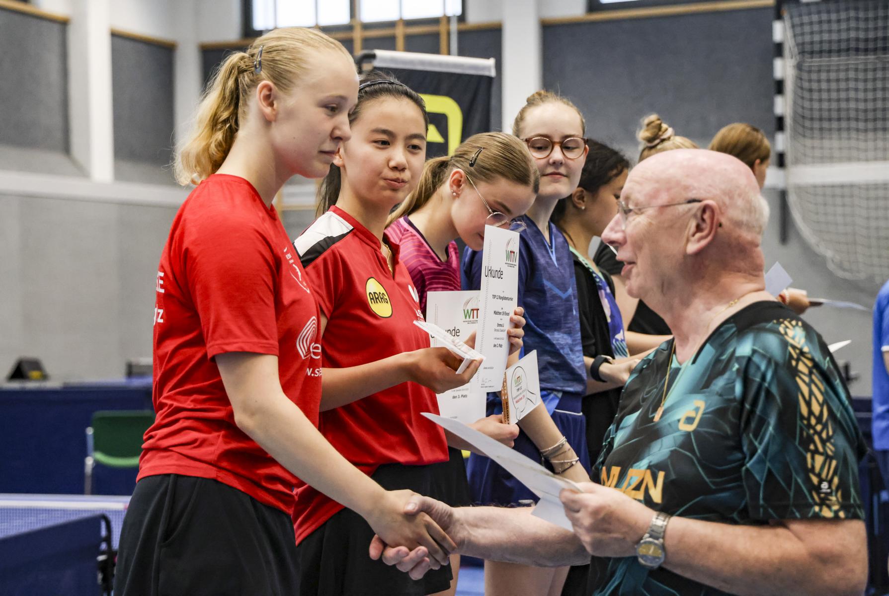 Dort bewies Frieda Strugholz ihre Nervenstärke und sicherte sich trotz einer Niederlage gegen Linyun Wei mit einer 6:1-Bilanz den Gesamtsieg. Emma Li und Sina Mens folgten auf den Plätzen zwei und drei, beide mit zwei Niederlagen. Das bessere Satzverhältnis verhalf Emma schließlich zum zweiten Platz.