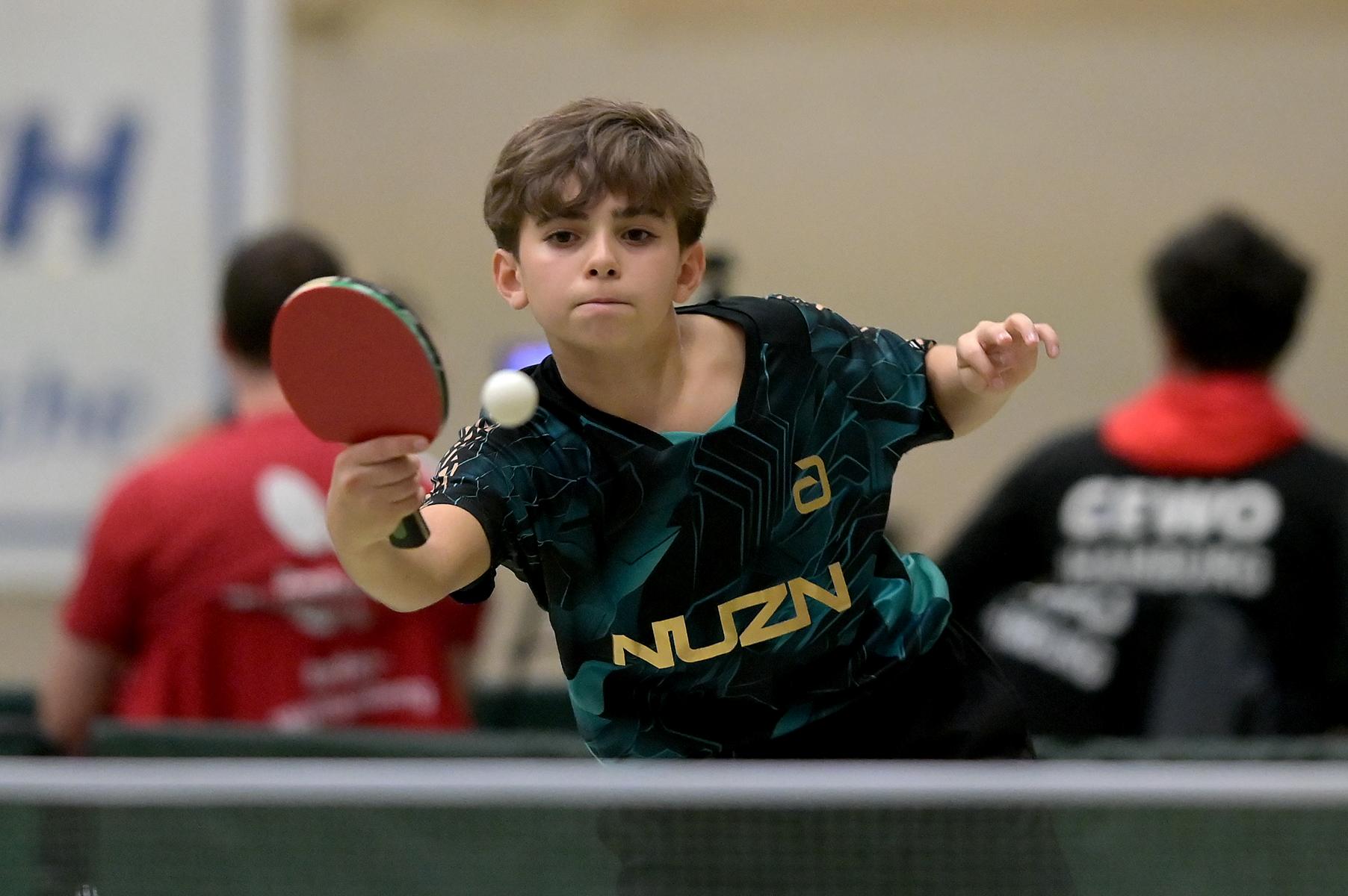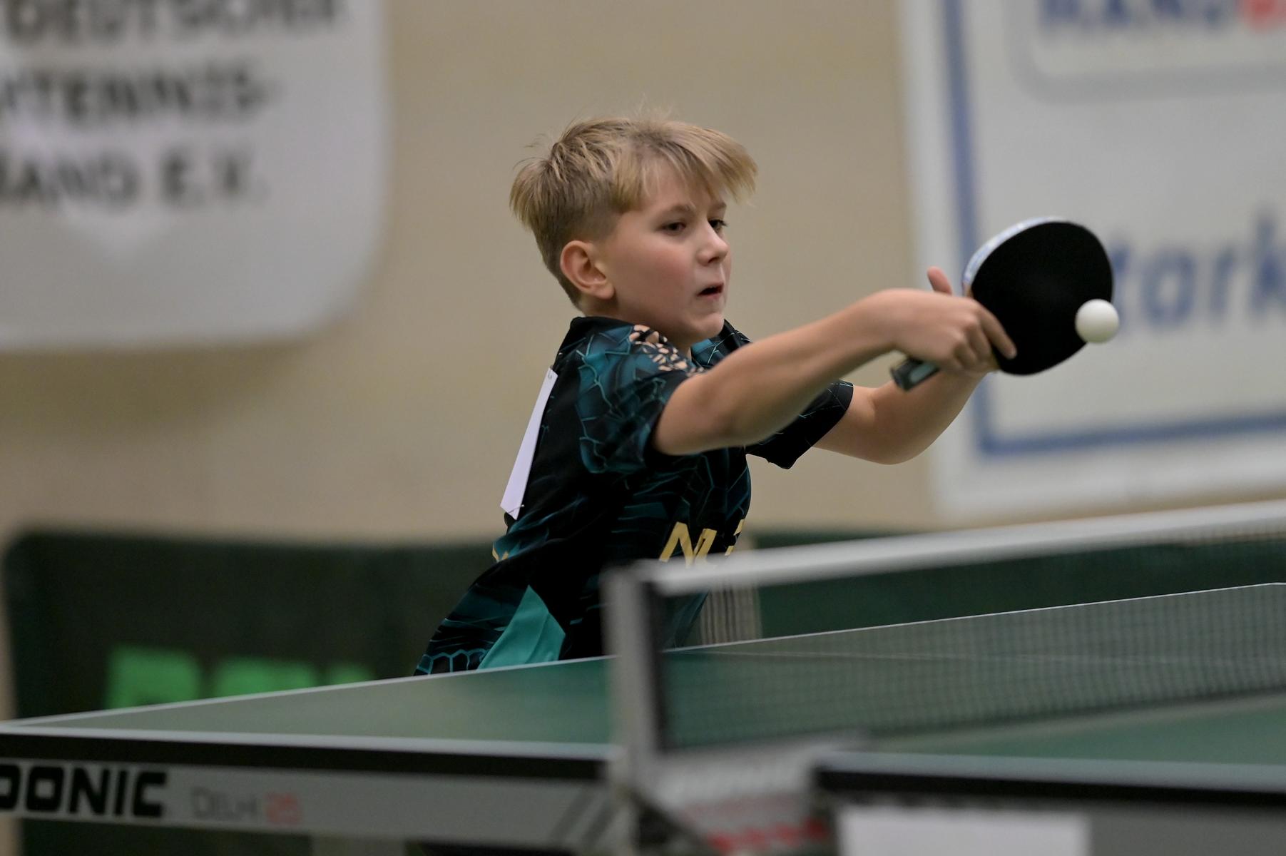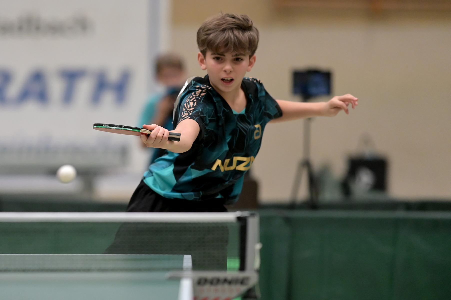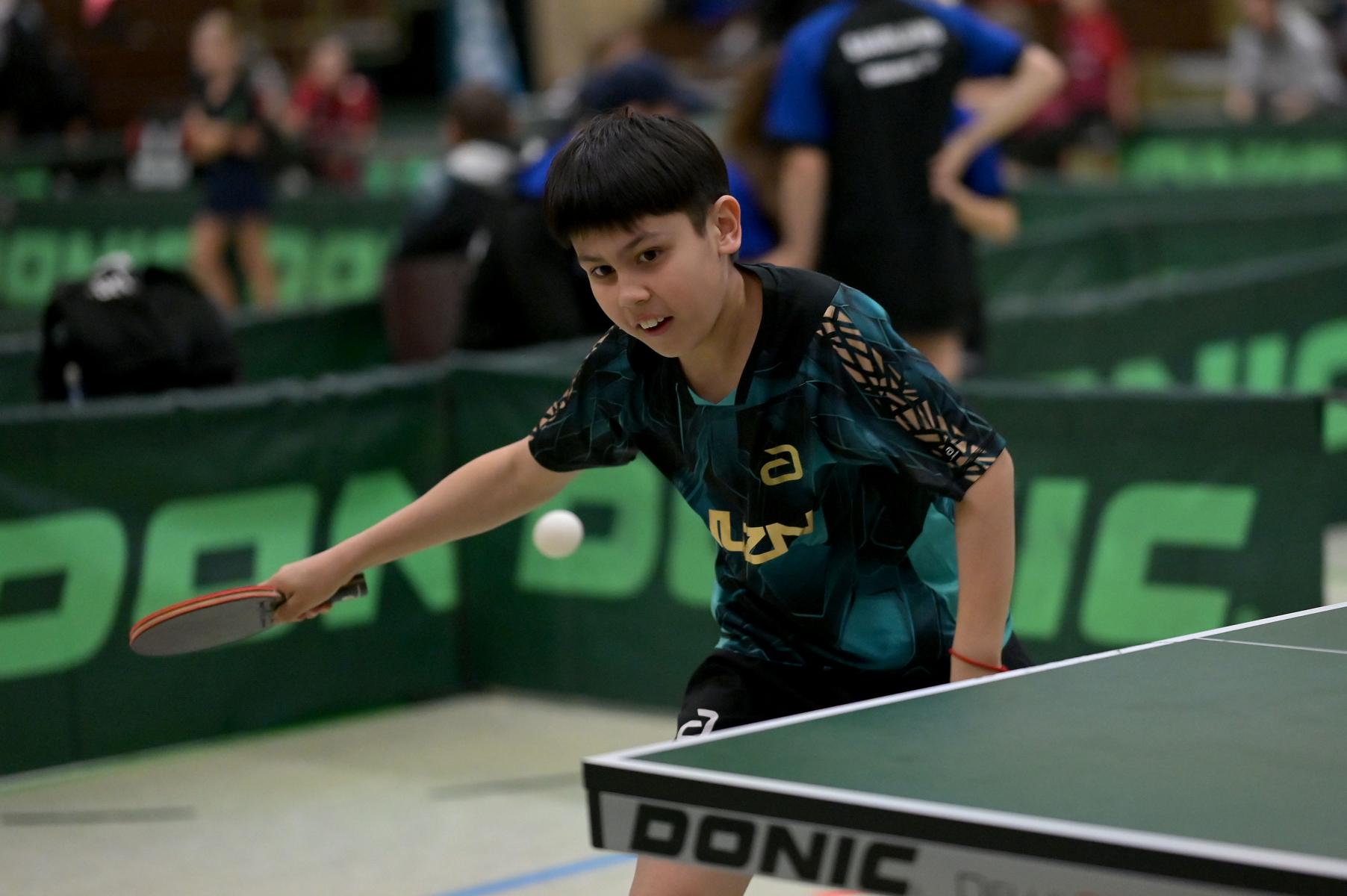 Adam Dahhan spielte eine hervorragende Vorrunde. Er konnte in seiner 8er Gruppe eine 6:1-Bilanz erspielen und sich Gruppenplatz zwei sichern. Die einzige Niederlage war gegen Kiril Manalaki aus Niedersachsen. Während die anderen drei Jungen nur noch den fünften Platz erreichen konnten, hatte Adam noch Chancen auf den Sieg der Veranstaltung. Gegen den Sachsen Koki Püschel im Viertelfinale behielt Adam auch in den knappen Situationen die Nerven und holte sich einen 3:2-Sieg und den Einzug in das Halbfinale. Im Halbfinale wartete mit Paul Flemming der nächste Sachse. Nach einem sehr umkämpften ersten Satz (12:10) kam Adam immer besser mit der Spielweise seines Gegners zurecht und holte sich auch Durchgang zwei und drei. Im Finale ging es dann erneut gegen Kiril Manalaki. Am Vortag hatte Adam noch 2:3 gegen ihn verloren und auch einen Matchball leider nicht verwandeln können. Das wollte er jetzt besser machen und sich revanchieren. Dies gelang Adam auch und er holte sich einen souveränen 3:0-Sieg und den Sieg der Veranstaltung.