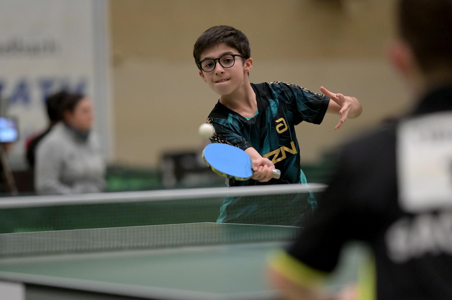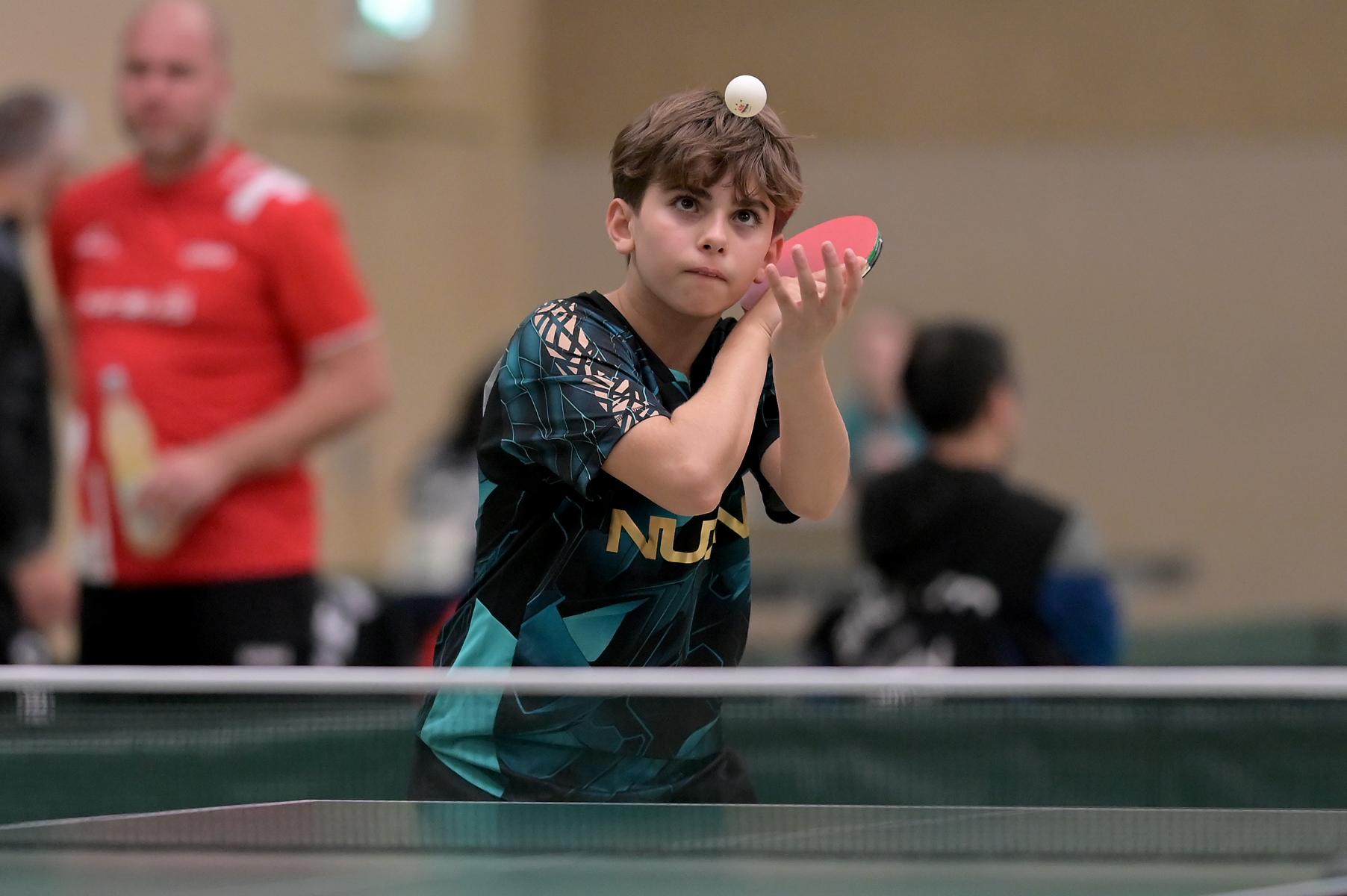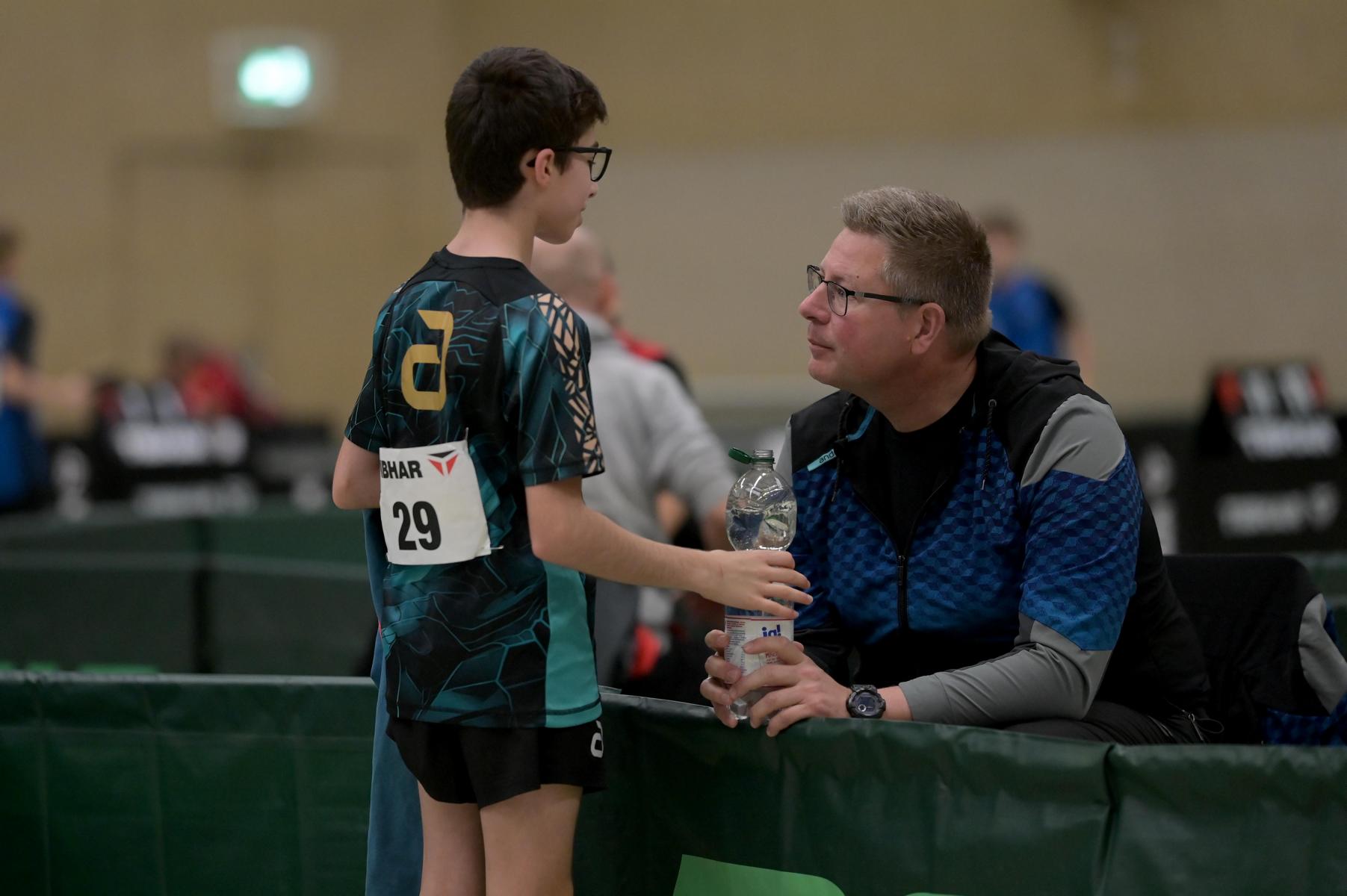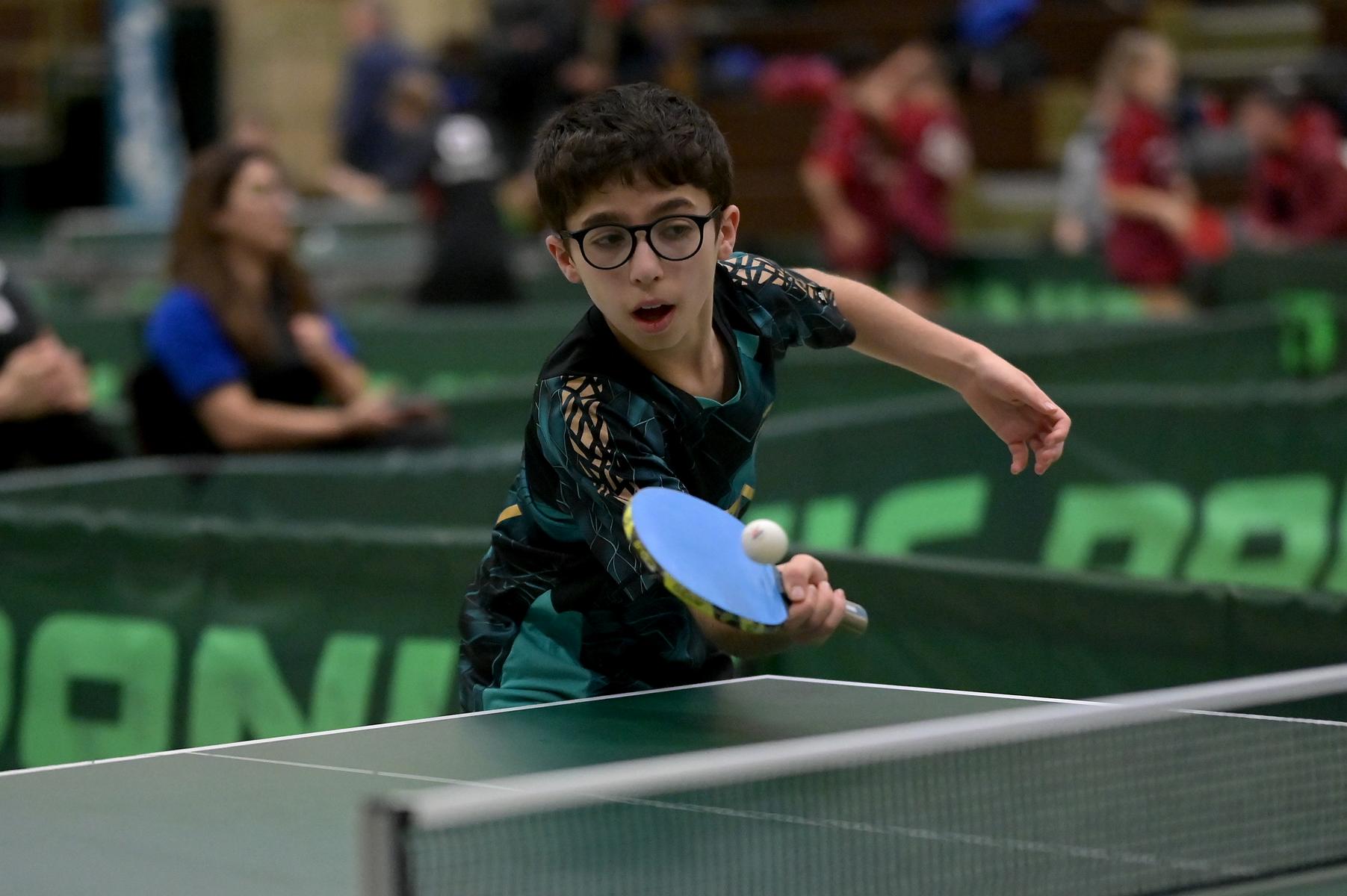 Adam Dahhan spielte eine hervorragende Vorrunde. Er konnte in seiner 8er Gruppe eine 6:1-Bilanz erspielen und sich Gruppenplatz zwei sichern. Die einzige Niederlage war gegen Kiril Manalaki aus Niedersachsen. Während die anderen drei Jungen nur noch den fünften Platz erreichen konnten, hatte Adam noch Chancen auf den Sieg der Veranstaltung. Gegen den Sachsen Koki Püschel im Viertelfinale behielt Adam auch in den knappen Situationen die Nerven und holte sich einen 3:2-Sieg und den Einzug in das Halbfinale. Im Halbfinale wartete mit Paul Flemming der nächste Sachse. Nach einem sehr umkämpften ersten Satz (12:10) kam Adam immer besser mit der Spielweise seines Gegners zurecht und holte sich auch Durchgang zwei und drei. Im Finale ging es dann erneut gegen Kiril Manalaki. Am Vortag hatte Adam noch 2:3 gegen ihn verloren und auch einen Matchball leider nicht verwandeln können. Das wollte er jetzt besser machen und sich revanchieren. Dies gelang Adam auch und er holte sich einen souveränen 3:0-Sieg und den Sieg der Veranstaltung.