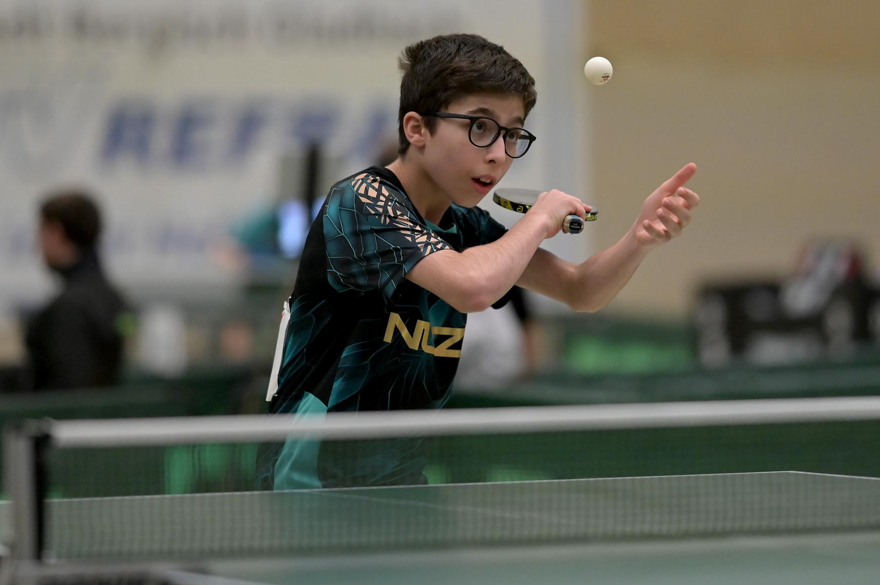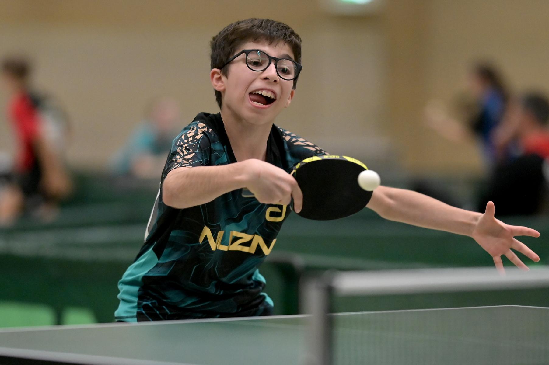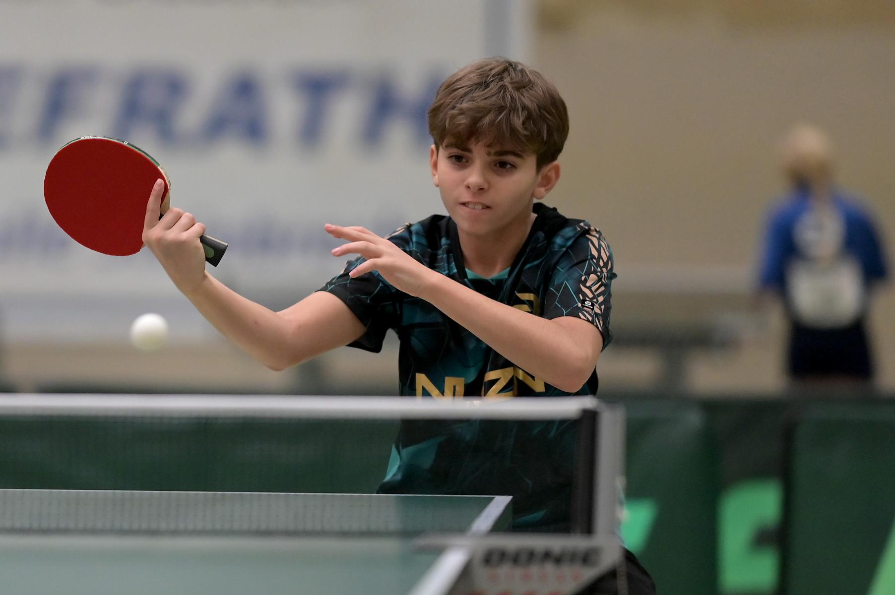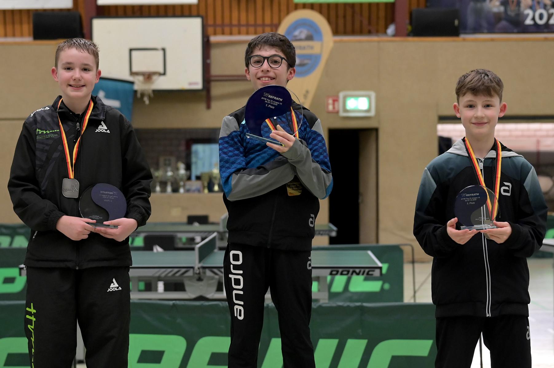 Adam Dahhan spielte eine hervorragende Vorrunde. Er konnte in seiner 8er Gruppe eine 6:1-Bilanz erspielen und sich Gruppenplatz zwei sichern. Die einzige Niederlage war gegen Kiril Manalaki aus Niedersachsen. Während die anderen drei Jungen nur noch den fünften Platz erreichen konnten, hatte Adam noch Chancen auf den Sieg der Veranstaltung. Gegen den Sachsen Koki Püschel im Viertelfinale behielt Adam auch in den knappen Situationen die Nerven und holte sich einen 3:2-Sieg und den Einzug in das Halbfinale. Im Halbfinale wartete mit Paul Flemming der nächste Sachse. Nach einem sehr umkämpften ersten Satz (12:10) kam Adam immer besser mit der Spielweise seines Gegners zurecht und holte sich auch Durchgang zwei und drei. Im Finale ging es dann erneut gegen Kiril Manalaki. Am Vortag hatte Adam noch 2:3 gegen ihn verloren und auch einen Matchball leider nicht verwandeln können. Das wollte er jetzt besser machen und sich revanchieren. Dies gelang Adam auch und er holte sich einen souveränen 3:0-Sieg und den Sieg der Veranstaltung.