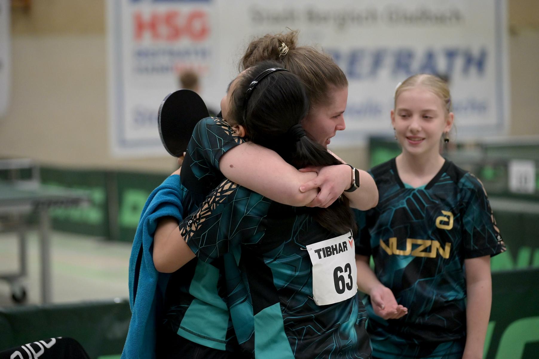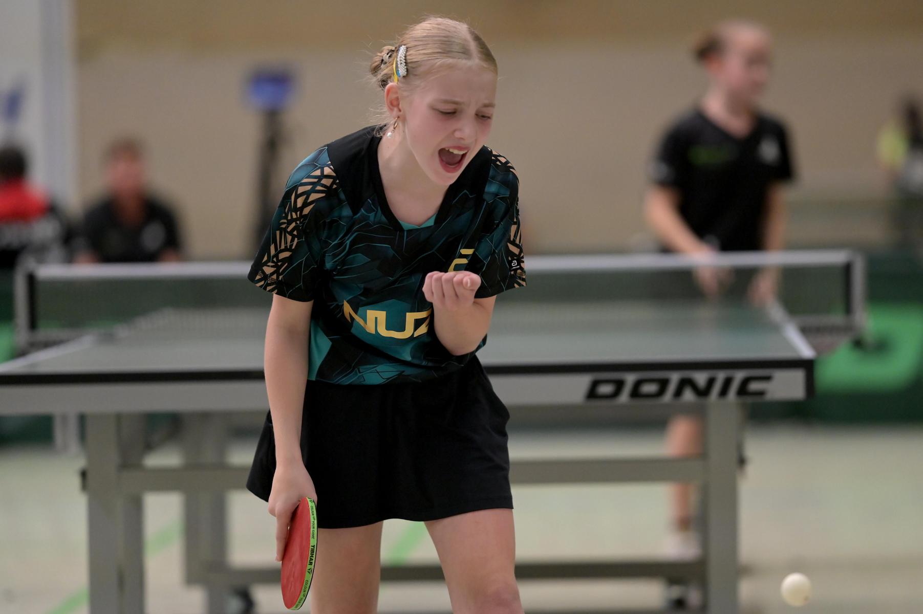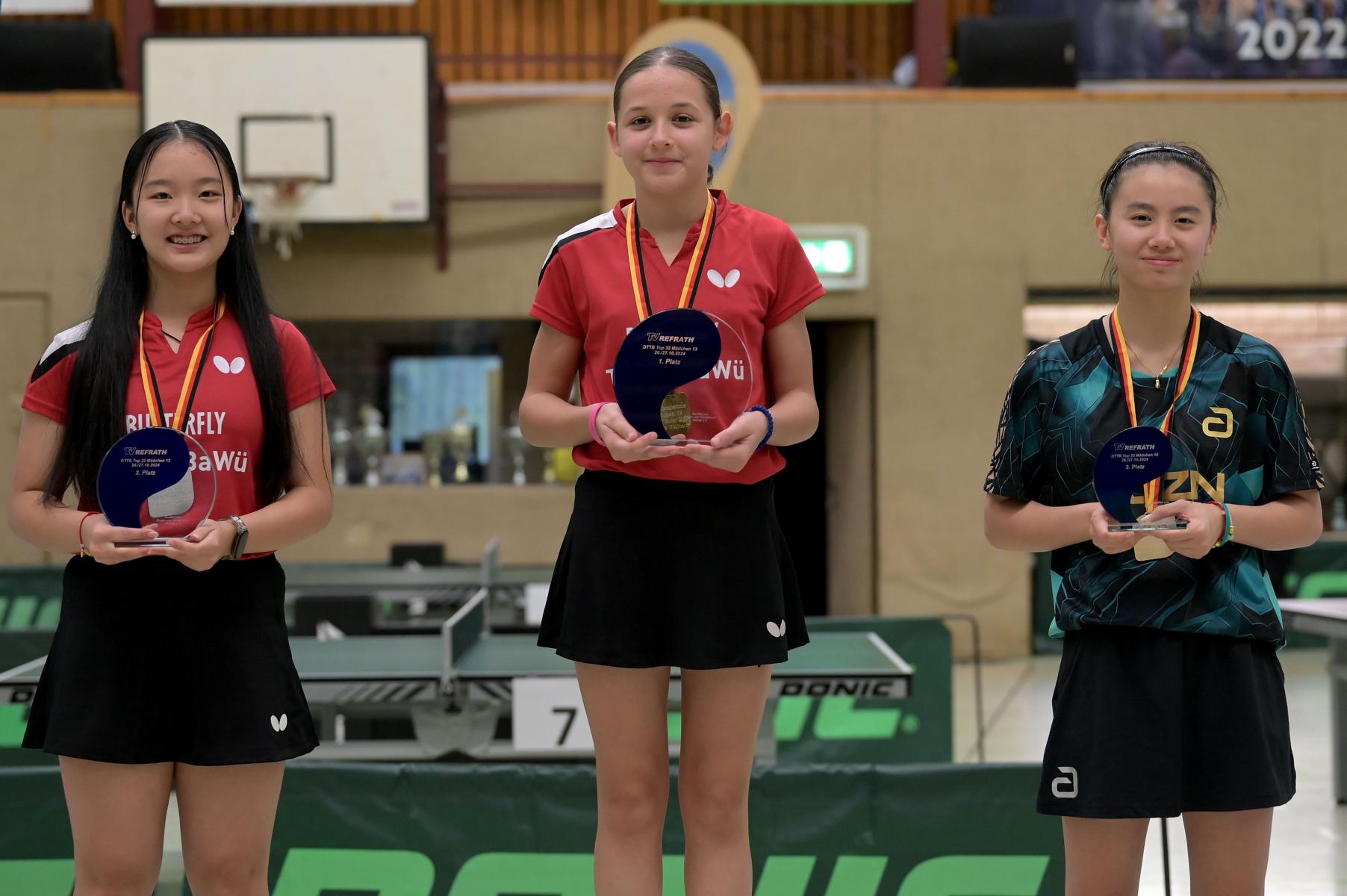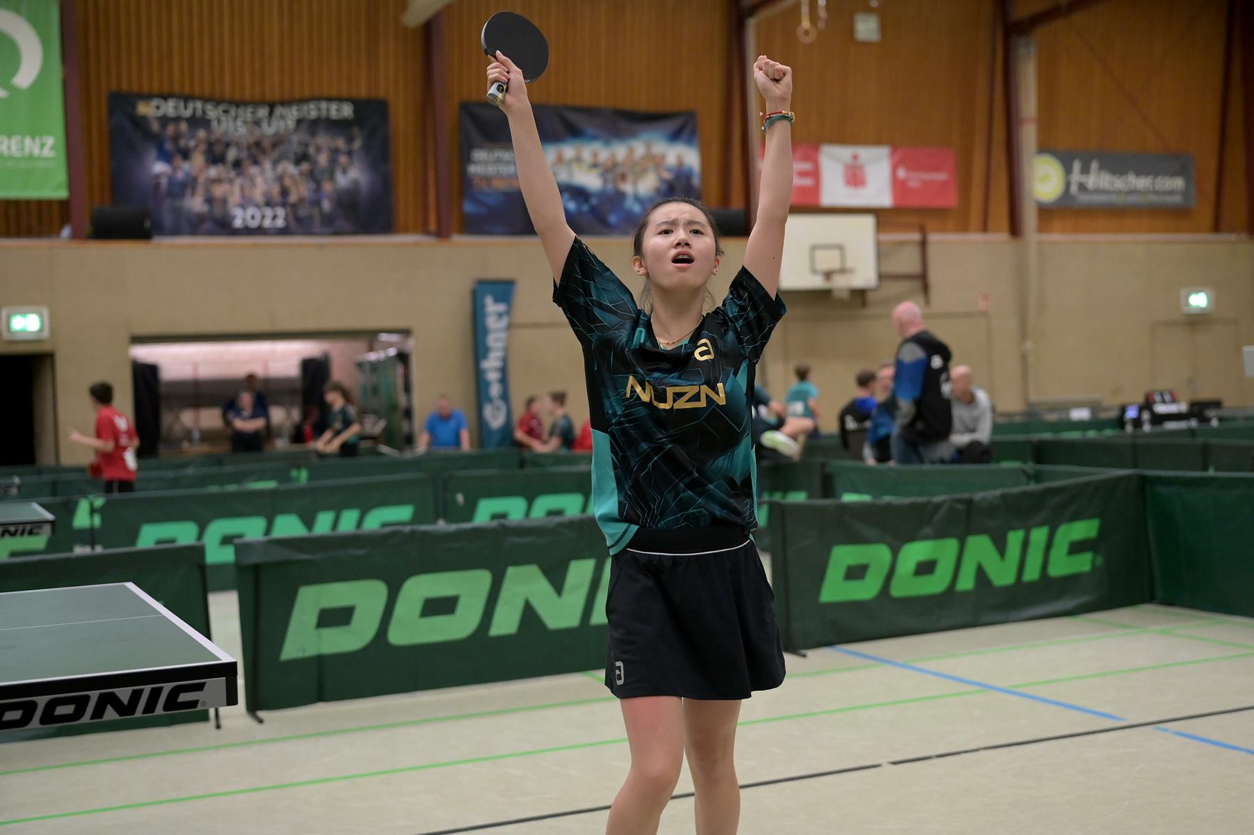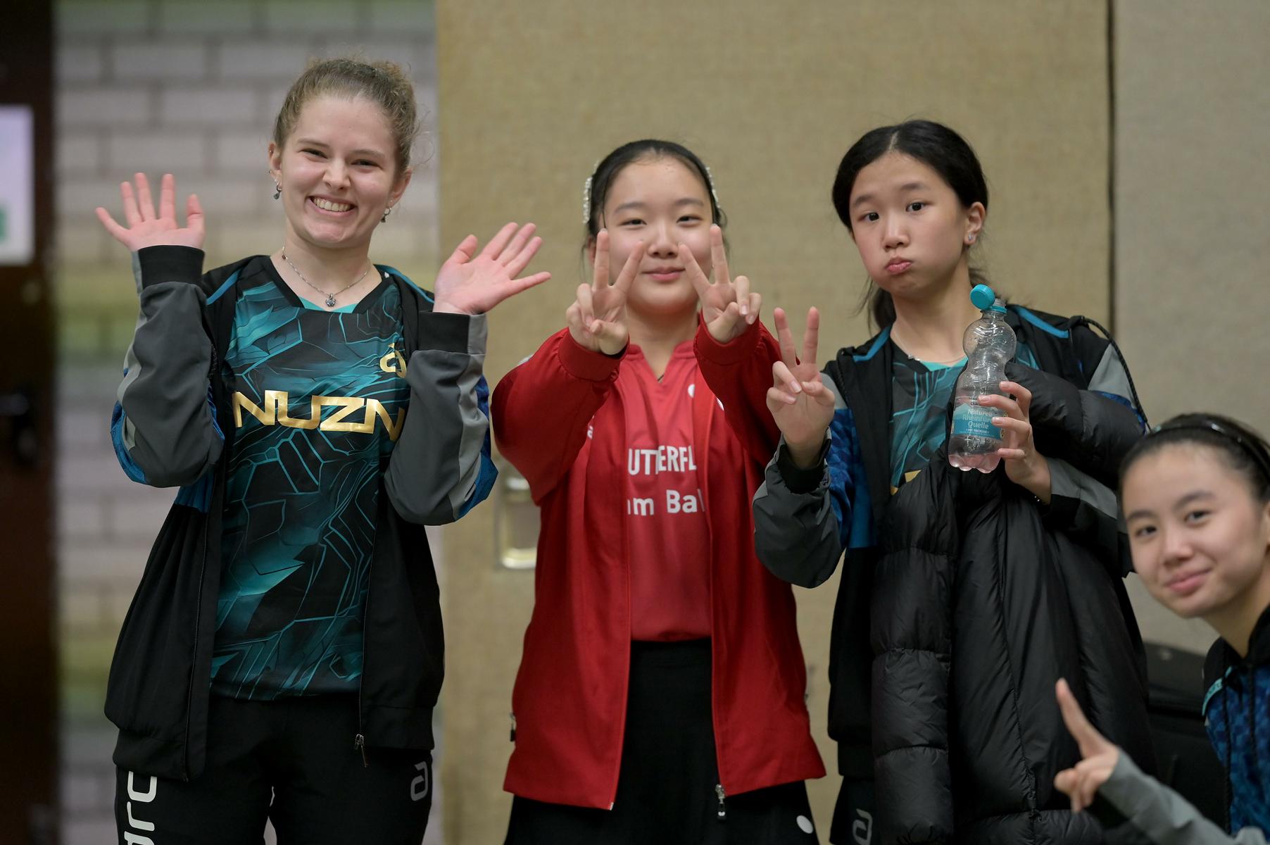 Bei den Mädchen erspielte sich Emma den Gruppensieg (7:0). Zusammen konnten alle sieben Gegnerinnen Emma nur drei Sätze abnehmen. Linyun wurde Gruppenzweite mit nur einer Niederlage gegen Chenhao Chen aus Baden-Württemberg. Emily unterlag in ihrer Gruppe zwar Hannah Schlauch aus Hessen und Melissa Bill aus Bayern, konnte aber trotzdem Zweite werden, da Schlauch gegen Pia Kaltenschnee verloren hatte. Emilia wurde mit einer 2:5-Bilanz Gruppensechste. Emilia ging in fünf ihrer sieben Partien über die volle Distanz und gab keinen Ballwechsel verloren.