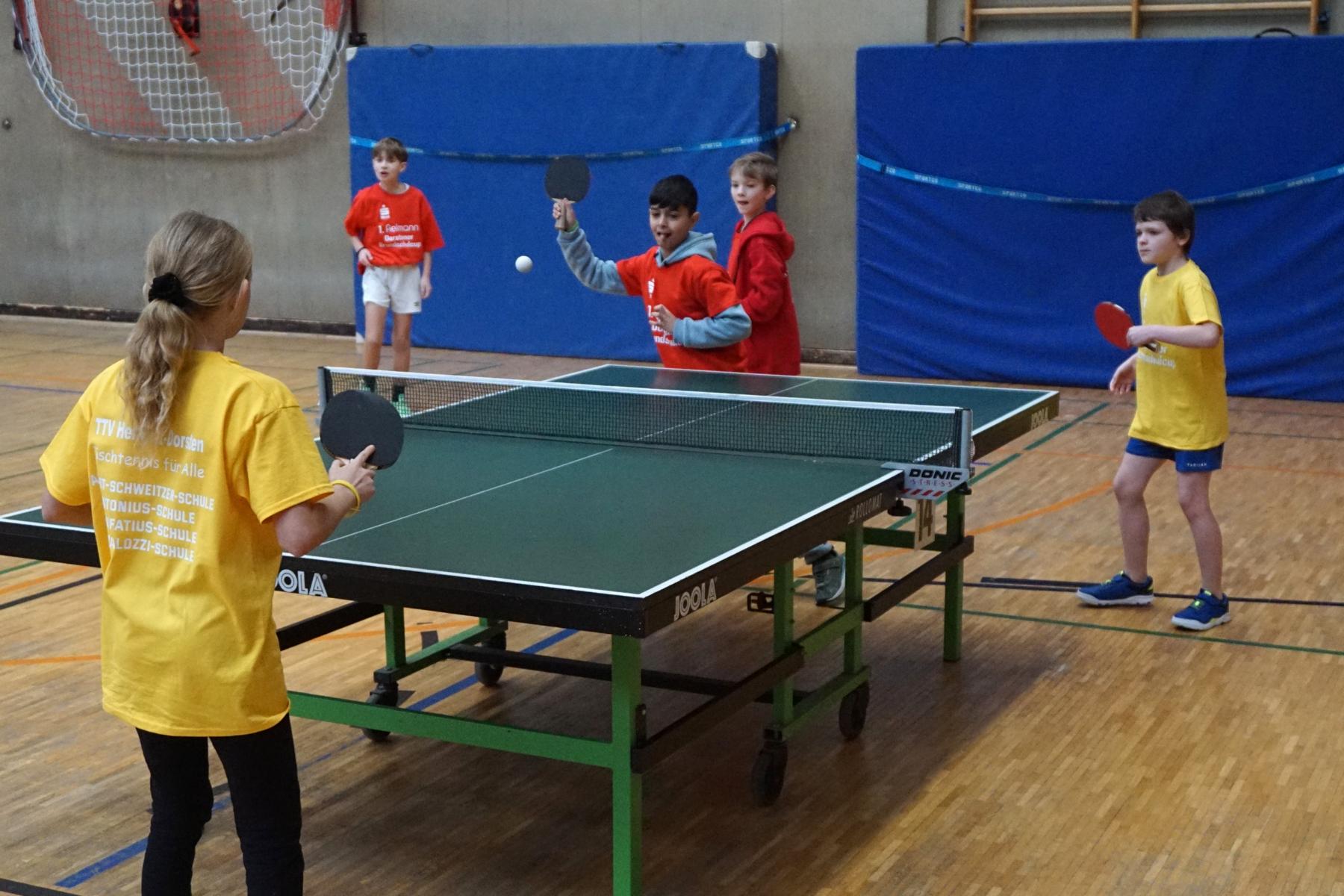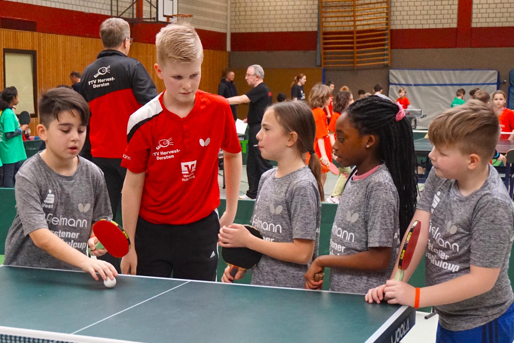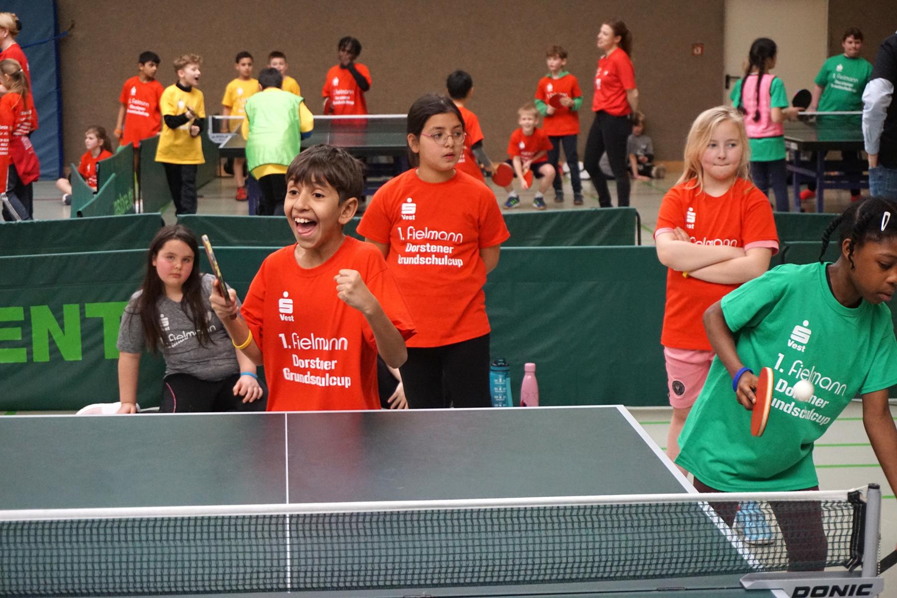 Viele Kinder waren mit dem Schläger schon recht versiert, weil sie in der Schule trainiert oder an einer der letzten Schul-Tischtenniswochen, die der TTV Hervest-Dorsten initiiert hatte, teilgenommen hatten. Es herrschte eine fantastische Atmosphäre, voller Lachen, Jubel und sportlichem Ehrgeiz.