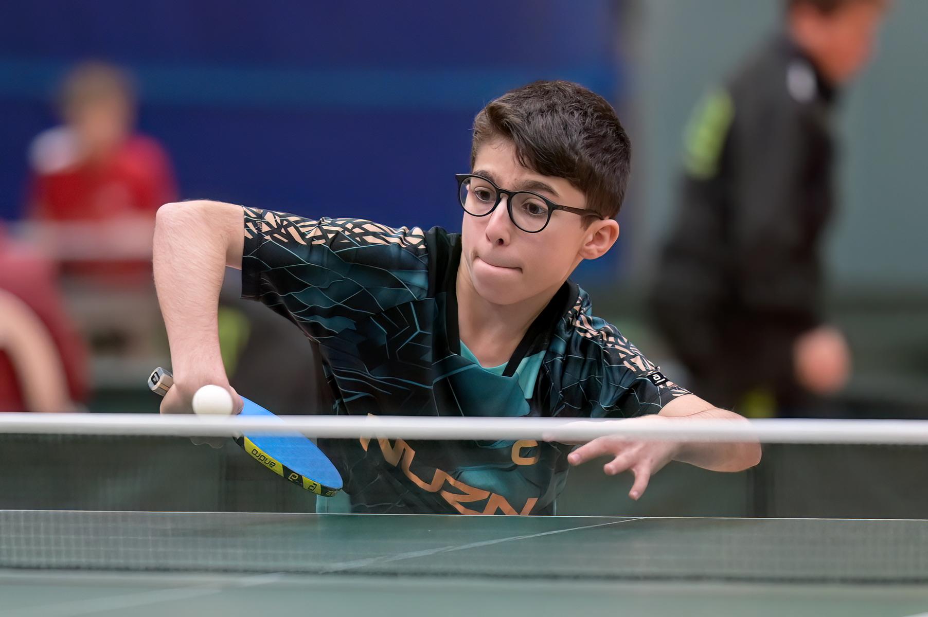 Bei Adam, der noch vor einigen Wochen das TOP32-Turnier U13 gewinnen konnte, lief nicht viel zusammen. Er kassierte am ersten Tag nur Niederlagen und war dementsprechend enttäuscht und niedergeschlagen. Am zweiten Tag konnte er sich aber wieder aufraffen und zumindest einen 3:2-Sieg gegen Jonathan Kilian erspielen und landete am Ende auf dem 41. Platz.