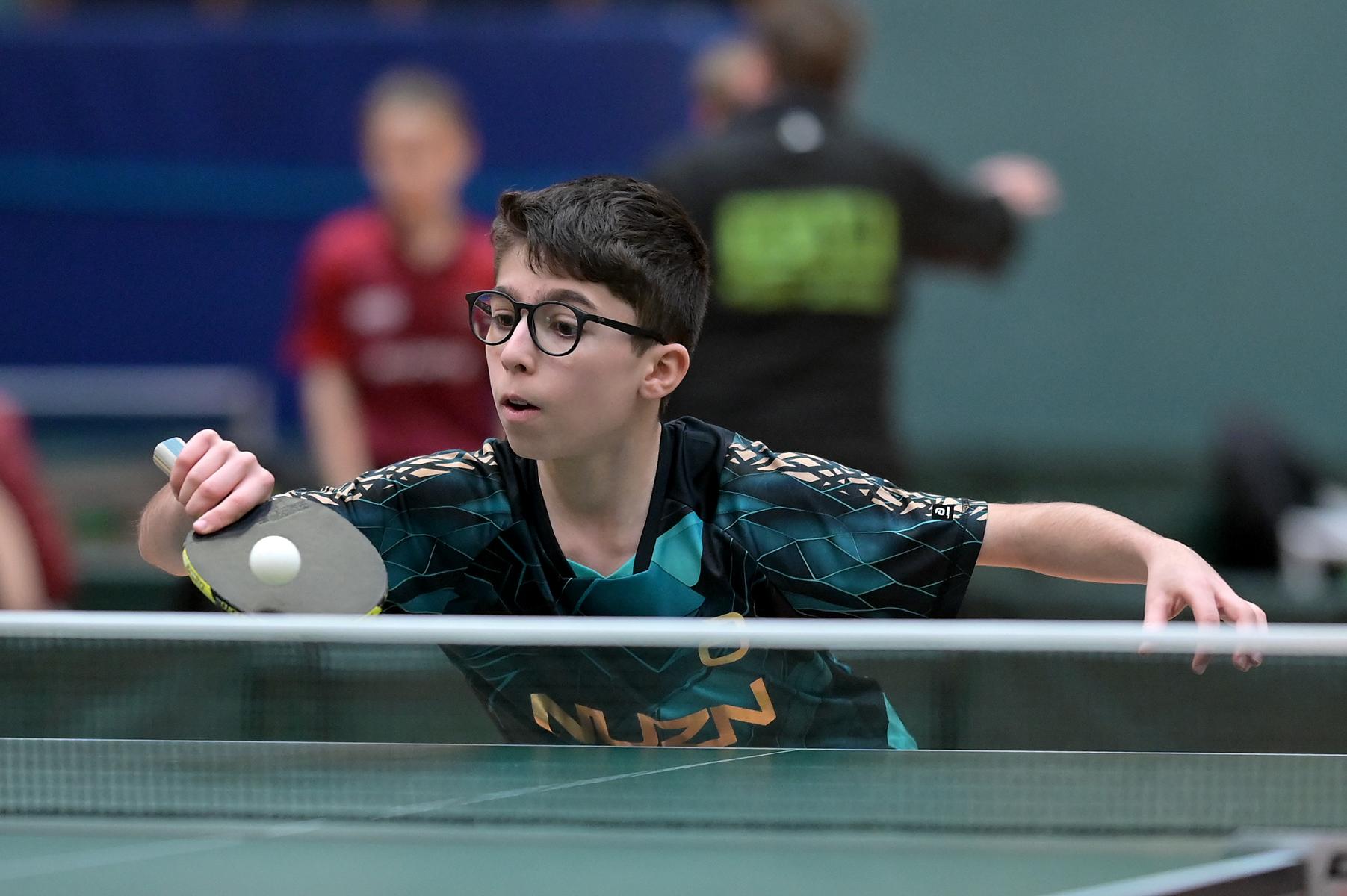 Bei Dorian lief es besser. Er konnte sich in seiner 6er-Gruppe zwei Siege erspielen und landete damit auf dem vierten Gruppenplatz. Leider nahm er die Niederlage gegen den Hessen Üksel Ahmed mit in die nächste Gruppenphase. In dieser traf er auch auf seinen WTTV-Kollegen Sebastian. Dieser hatte sich mit einer 3:2-Bilanz den dritten Platz in seiner Vorrundengruppe erspielt. Die Partie zwischen den beiden WTTVlern ging mit 3:0 an Sebastian. Ein Spiel sollte Dorian noch gegen den Niedersachsen Kiril Manalaki bestreiten. Aber auch hier war sein Gegner etwas stärker und Dorian musste nach vier Sätzen seinem Kontrahenten gratulieren. Dorian wurde also am Ende 29.