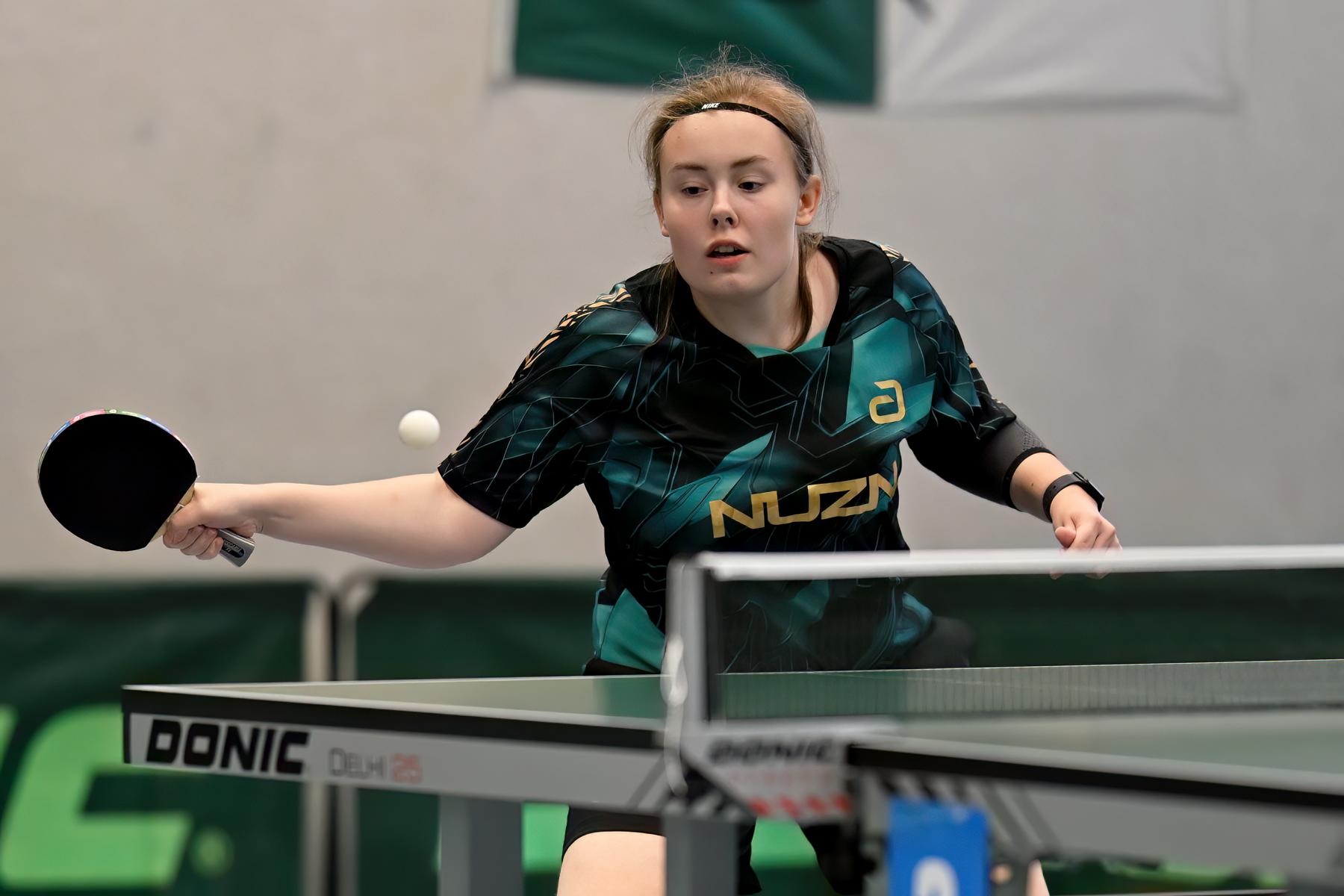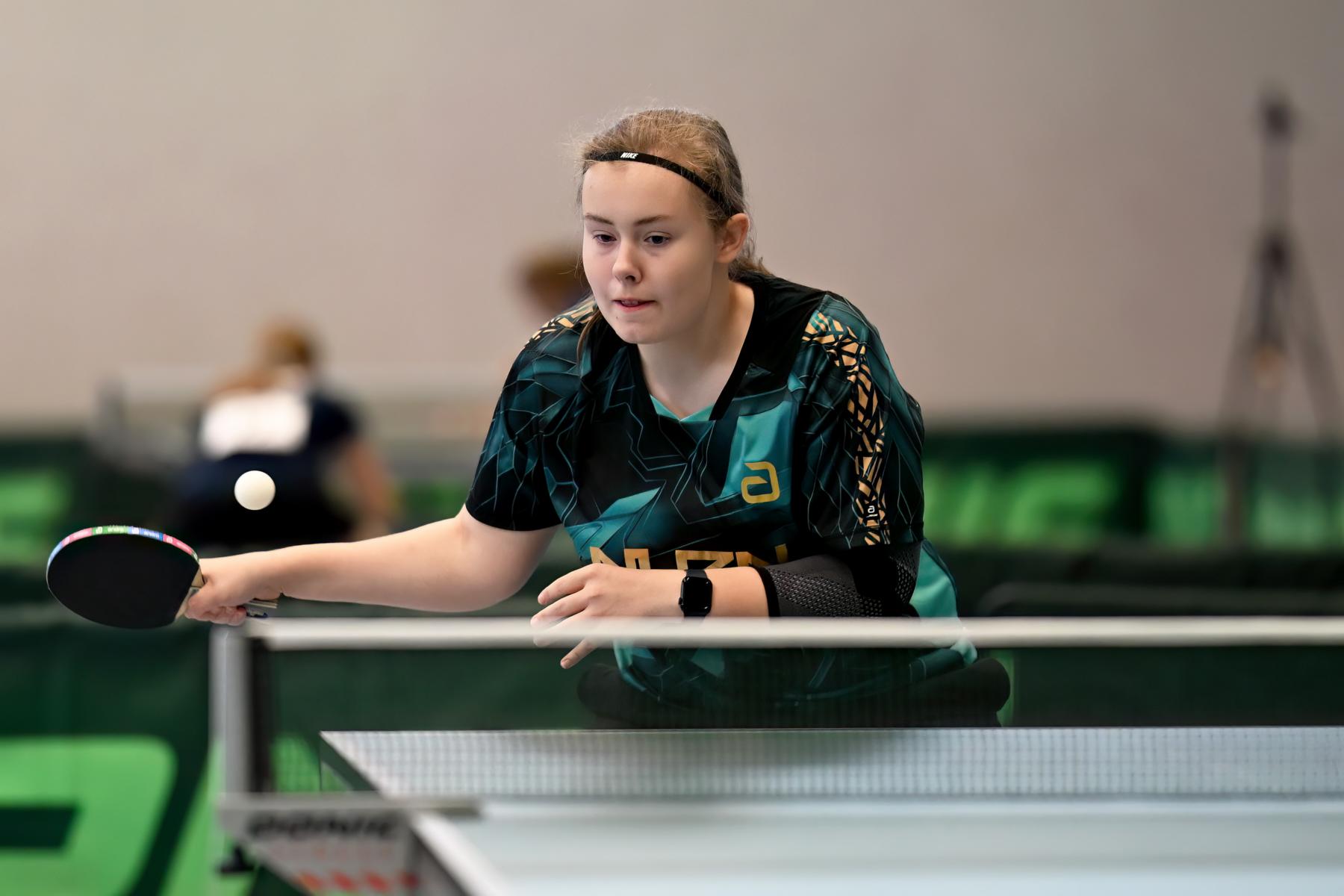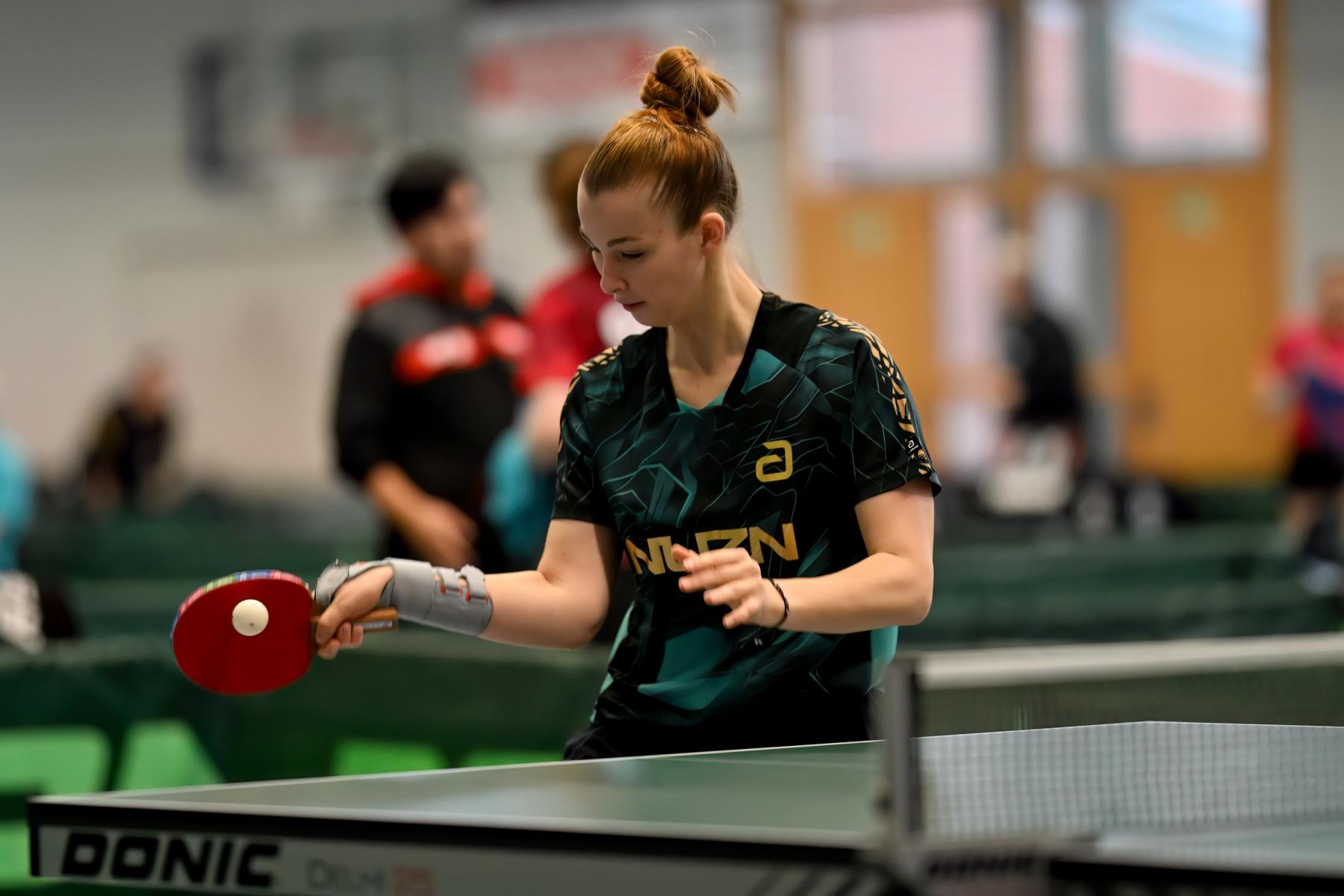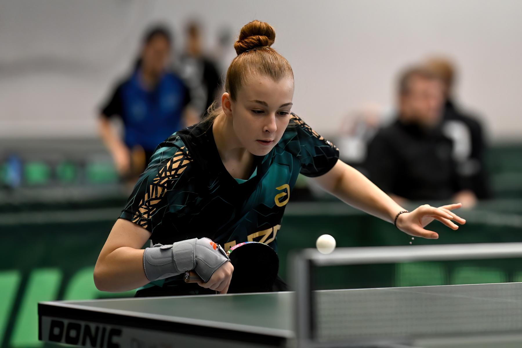 Vivien Hegelich startete in Dissen zum ersten Mal bei einem nationalen Turnier für den WTTV – und machte ihre Sache sehr gut. Gleich im ersten Spiel setzte sie ein Ausrufezeichen und besiegte Magdalene Hübgen (STTB) mit 3:0. Nach einem weiteren Erfolg gegen Leonie Gaida (SATTV) belegte sie in ihrer Gruppe Rang vier und zog damit in die Platzierungsrunde um die Plätze 17 bis 32 ein. Dort verlor sie zwar ihre beiden folgenden Spiele, belegte aber insgesamt Rang 29–32 – ein gelungenes Debüt auf Bundesebene.