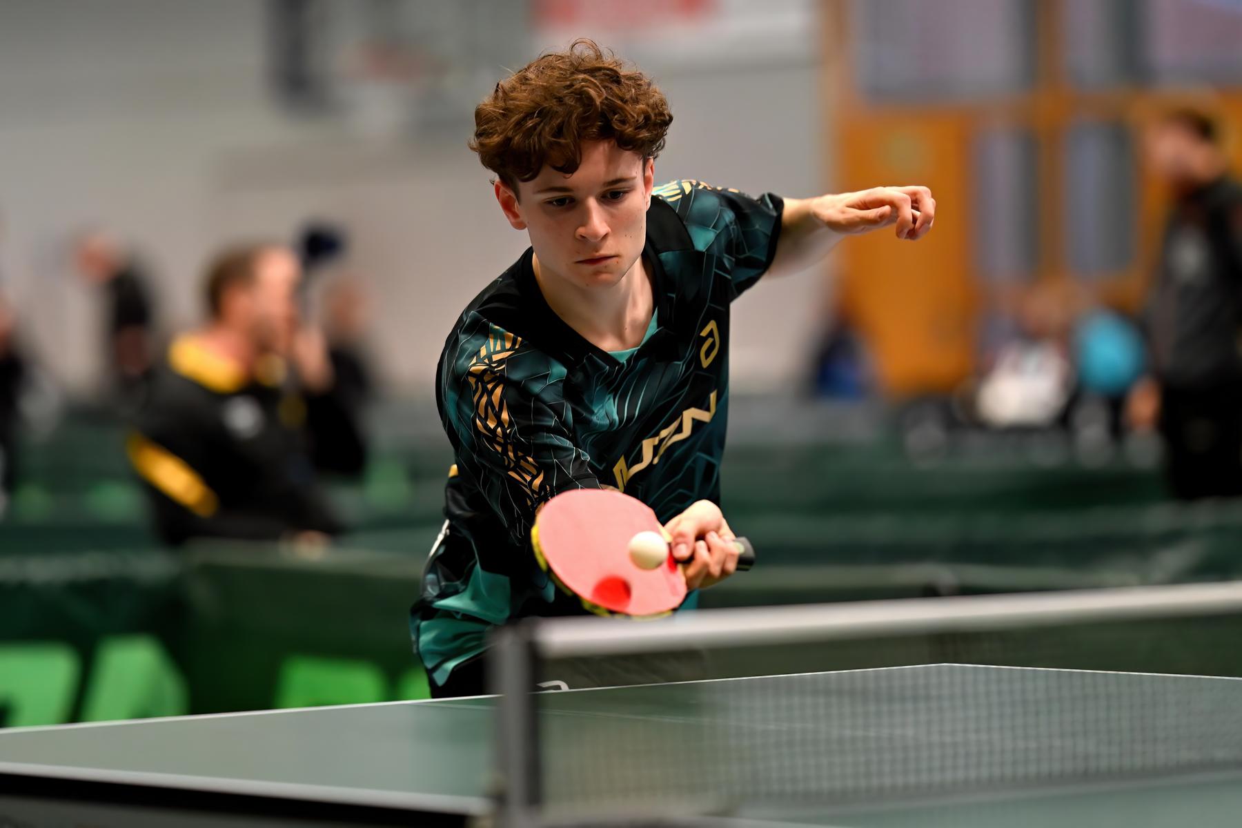 Chris Andersen zeigte am Samstag eine starke Leistung und gewann seine Vorrundengruppe ohne Niederlage. Besonders in den engen Partien gegen Ben-Luca Köhler (HETTV) und den Abwehrspieler Matthis Kassens (TTVN) bewies er Nervenstärke und setzte sich jeweils über die volle Distanz durch. In der Zwischenrunde kam es dann gegen Jonas Rinderer zum entscheidenden Duell um den Einzug ins Halbfinale. Nach einem spannenden Match musste Chris dem Bayern nach fünf Sätzen gratulieren. Das bedeutete Platz 5–8 und damit die direkte Qualifikation für das Top 16.