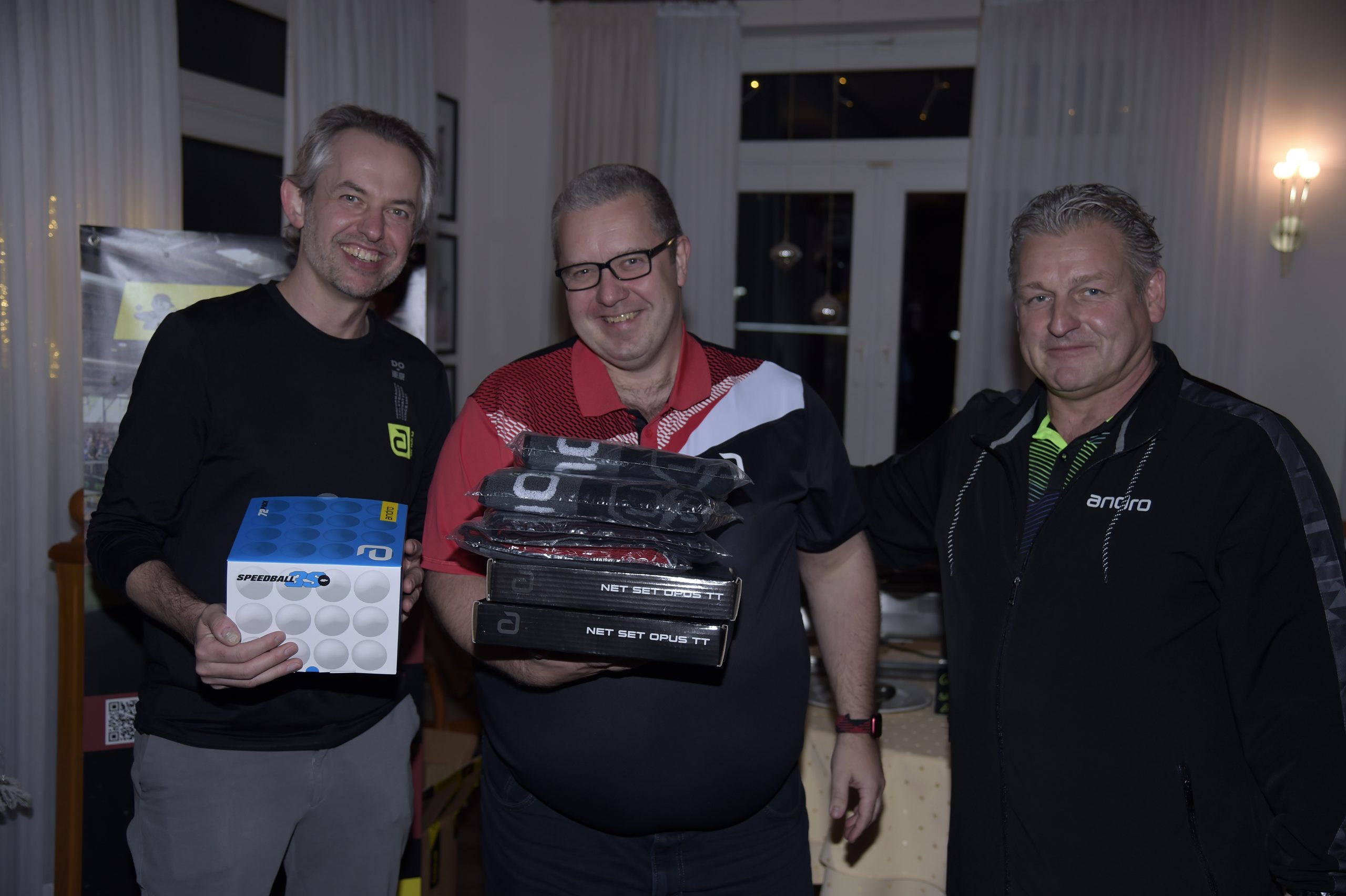 Andro hatte für Jens Korte und den TTV Waltrop noch einige Präsente parat, über die man sich natürich sehr freute: