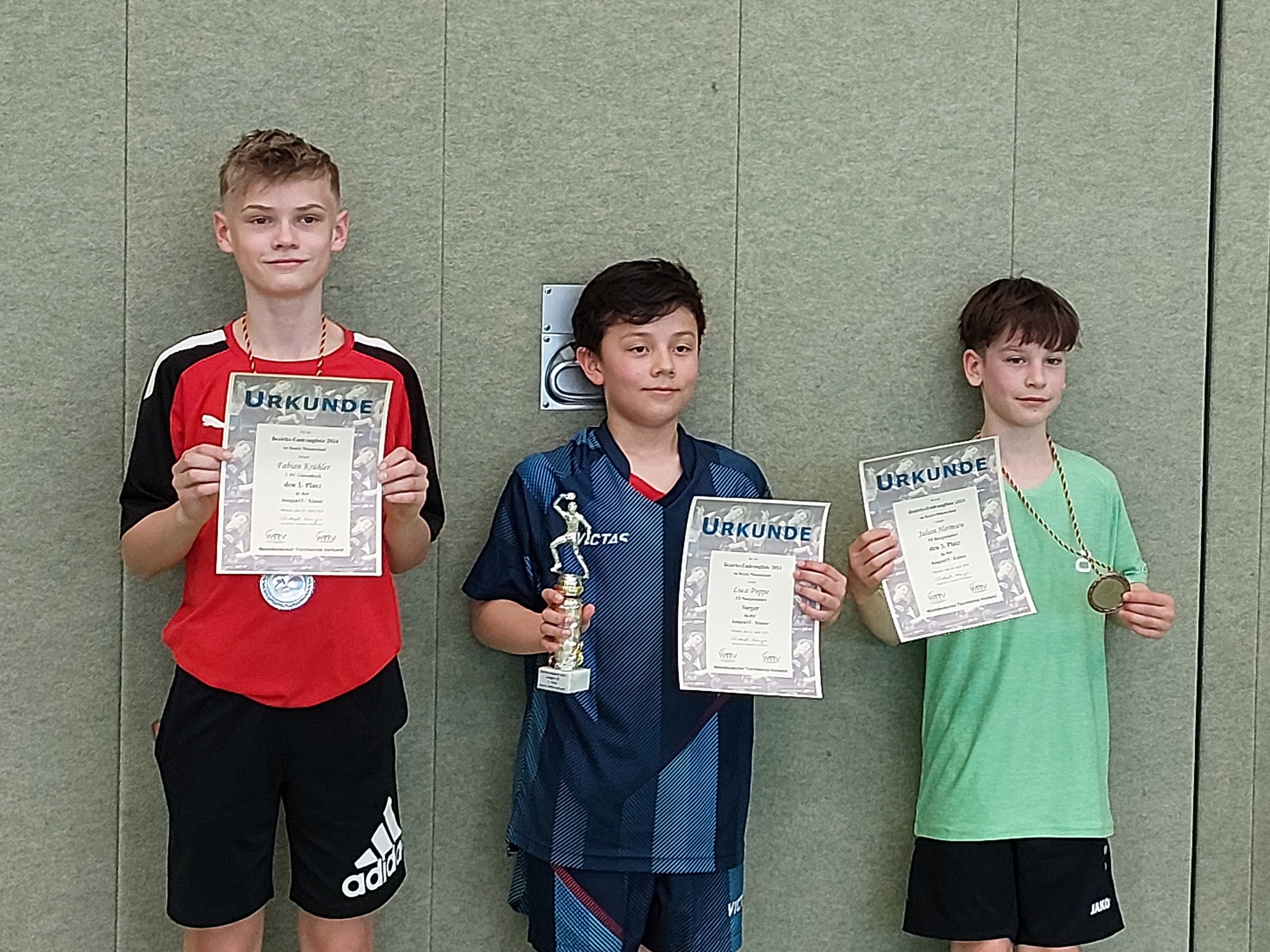 Leider waren es zumeist nur die Sieger, die mit ihrer guten Platzierung ein Ticket für die WTTV-Ranglisten im Juni ergattern konnten. Sebastian Lenz (Jungen 15) und Luca Puppe (Jungen 13) waren zurecht freigestellt, denn sie gewannen sogar die jeweils nächsthöhere Altersklasse (Lenz Jungen 19, Puppe Jungen 15). Sebastian Lenz (TuS Hiltrup) gab dabei insgesamt einen Satz ab, Luca Puppe (TB Burgsteinfurt) gar keinen.