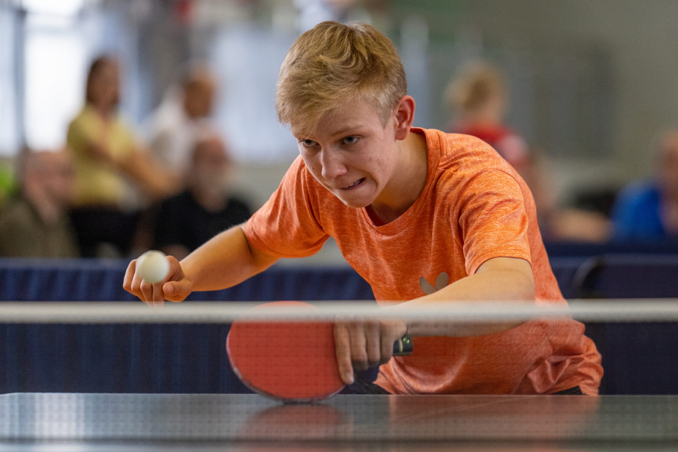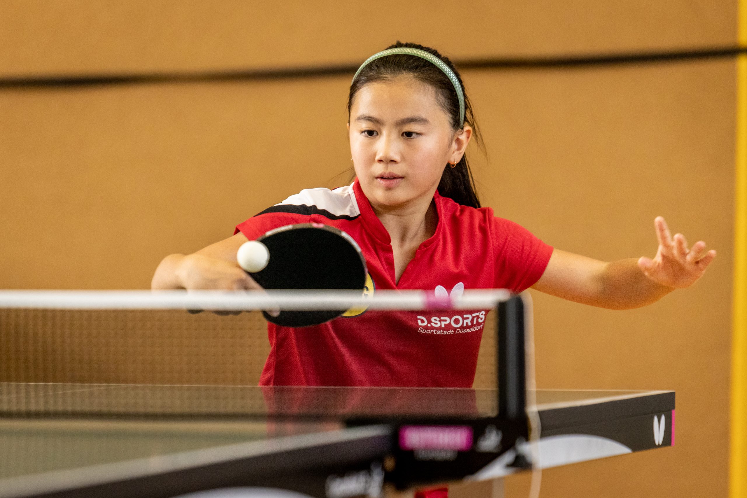 Weiter ging es am Sonntag mit den Mädchen und Jungen der Altersklasse U15. Genau wie bei den Mädchen U13 qualifizierten die Gruppensiegerinnen zunächst für die Endrunde. In den Gruppen A und B war das eine deutliche Angelegenheit. Hier verloren Frieda Strugholz (LTV Lippstadt) und Stella Huynh (SC Fortuna Bonn) jeweils nur einen Satz. In der Gruppe C gewannen gleich drei Athletinnen vier ihrer fünf Spiele. Erste wurde mit 14:3 Sätzen Marharyta Pavliuk (PSV Oberhausen). Auf den Plätzen zwei und drei landeten Lara Deppe (TTC Mennighüffen) und Maria Holin (TTK Anröchte). Beide erspielten sich eine Satzbilanz von +7, sodass hier sogar die Bälle gezählt werden mussten. In der Gruppe D war es ähnlich knapp, auch hier musste die Satzbilanz über den Einzug in die Endrunde entscheiden. Rahel Nolten (Anrather TK RW) sicherte sich mit 14:9 Sätzen den ersten Platz vor Jolanda Wilke (TTV Mennighüffen) mit 13:8 Sätzen. In der Endrunde konnte sich Frieda Strugholz ähnlich souverän wie in der Vorrunde durchsetzen und gab nur einen Satz ab. Die Spiele um die Plätze zwei bis vier waren deutlich knapper. Zwei der drei Spiele gingen in den fünften Satz. Schlussendlich sicherte sich Stella Huynh den zweiten und Rahel Nolten den dritten Platz.