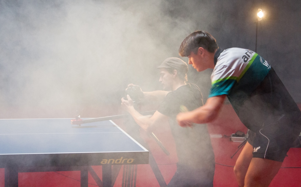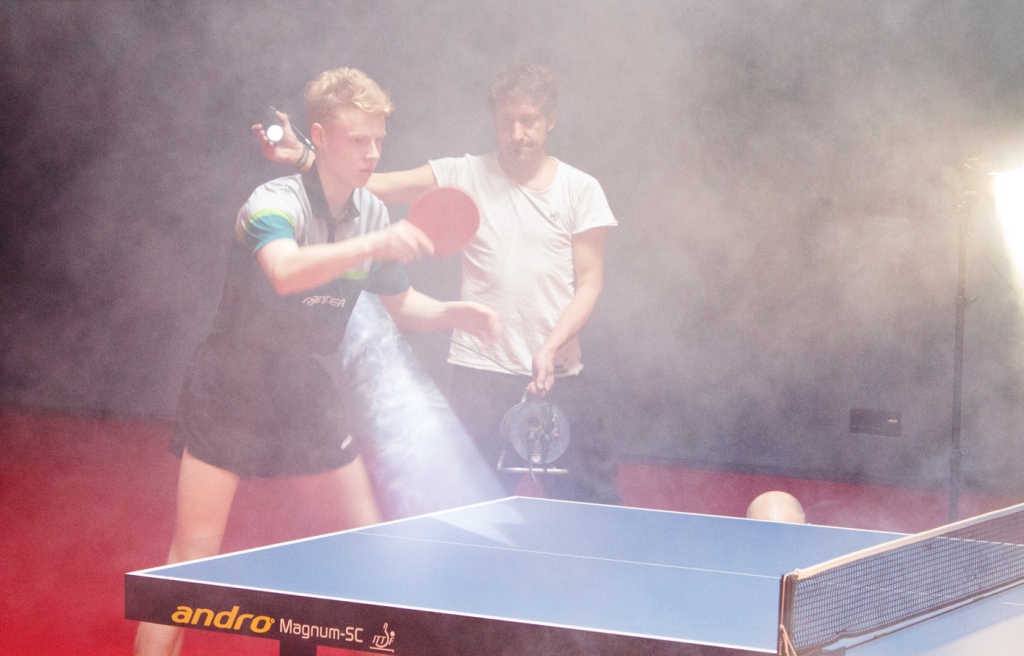 „Nebel! Ich brauche mehr Nebel!“ Filmemacher Tom Smiljanic aus Duisburg und sein Team lieben klare Ansagen am Set. So auch bei den Aufnahmen im DTTZ Düsseldorf zum WTTV-Filmtrailer „Demokratie und Respekt“, einer Initiative des Landessportbundes NRW.