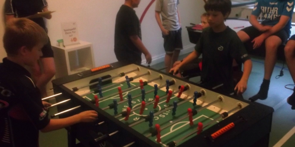 Etwas ruhiger ging es zu bei den Turnieren am Mini-Tisch, am Kicker, sowie bei Schach-, Kniffe-l oder Poker-Turnieren, die in unserem Gruppenraum oder dem neu eingerichteten Spiele-Raum der Sportschule ausgerichtet wurden.