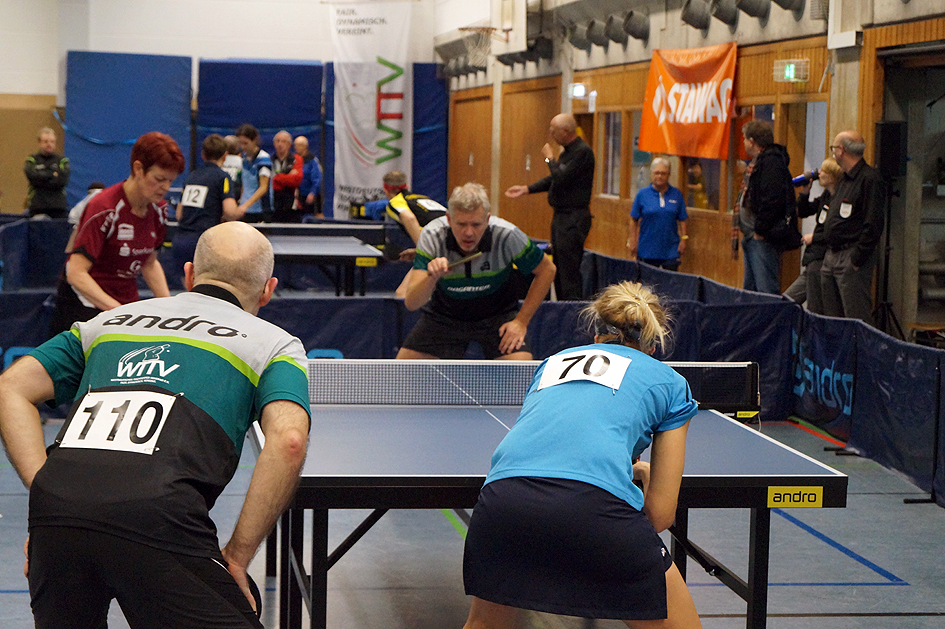 Für Rosemarie Bartelt-Ludwig (TTG Niederkassel) hat sich ebenfalls die Teilnahme gelohnt: Sie triumphierten in ihren Altersklassen und waren auch in den Paarkonkurrenzen erfolgreich. Besonders für Rosemarie (TTG Niederkassel) kam der Titelgewinn in der AK60 nach der Vizemeisterschaft im Vorjahr überraschend: Sie hatte am Ende mit dem besseren Satzverhältnis gegenüber ihrer Doppelpartnerin Almut Pigerl (DJK SV Holzbüttgen) die Nase vorne. Im Doppel landeten beide auf Platz zwei. Im Mixed mit Engelbert Karmainski (TTF GW Elsdorf) hingegen verteidigte Bartelt-Ludwig den Titel erfolgreich.