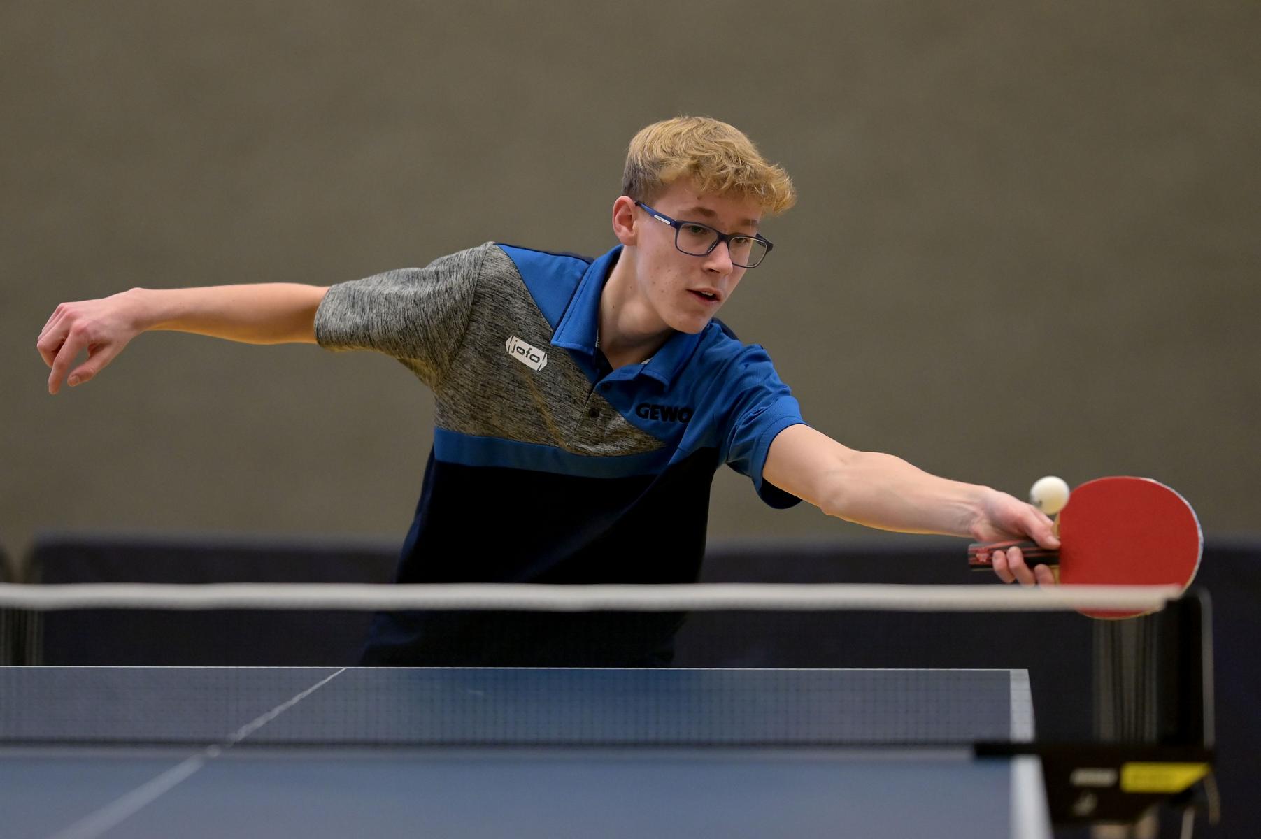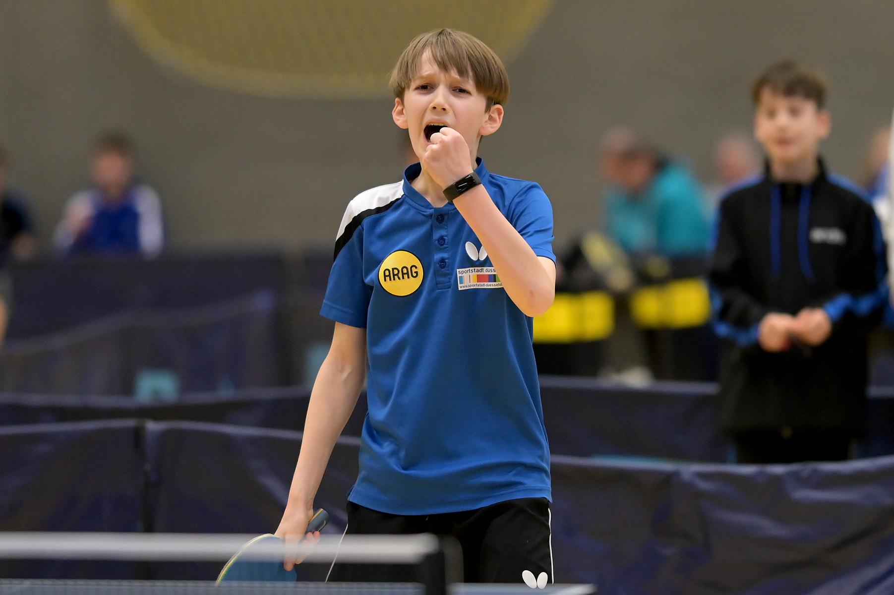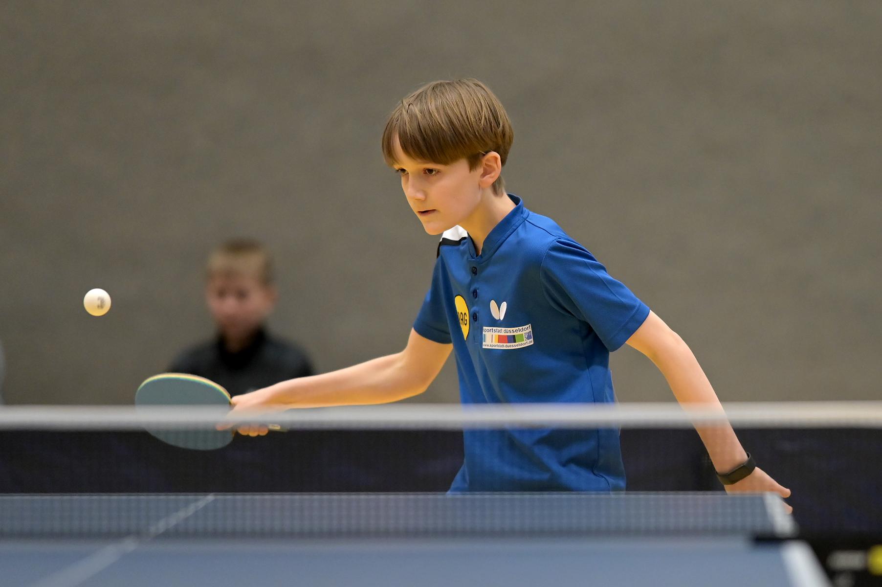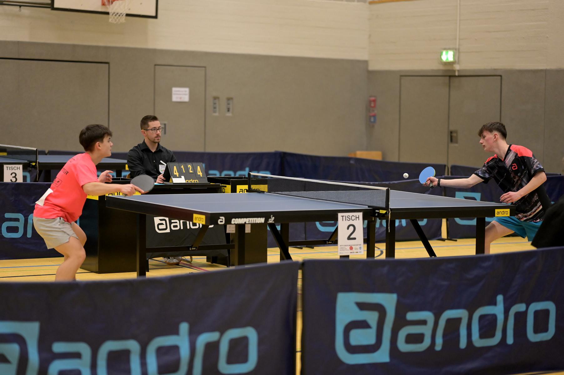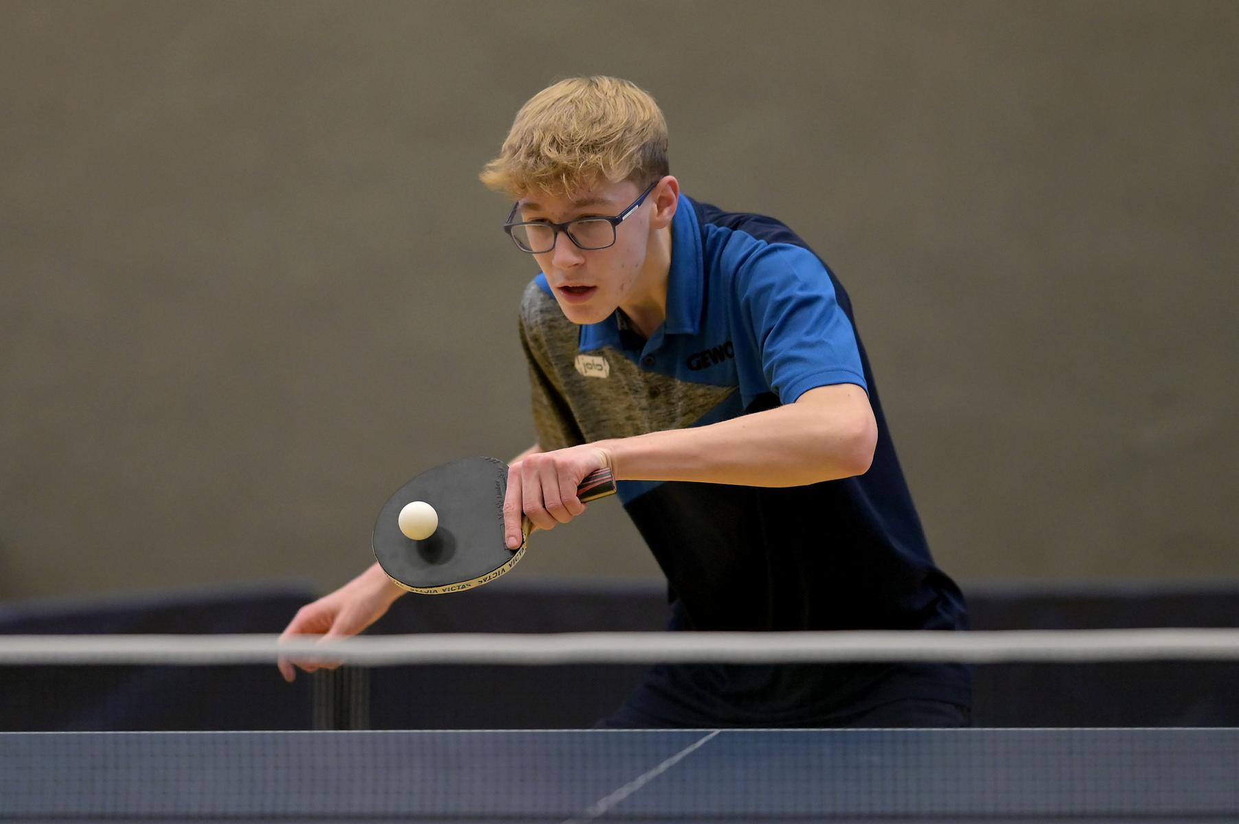 Bei den Jungen erreichte Top-Favorit Ole Brock ( TTC DJK Bad Westernkotten) souverän das Finale. Im gegenüber stand Finn Stockmann (Spvgg. Meiderich 06/95), der an diesem Wochenende ein tolles Turnier spielte und seine Chance nutzte, denn in der unteren Hälfte der KO-Runde „stolperten“ einige Favoriten. So kam es im Halbfinale zu den Paarungen Finn Stockmann gegen Amandus Vogl (TTC Bärbroich) und Ole spielte gegen Rahdeen Haghighat (1. FC Köln). Sowohl Finn als auch Ole gaben hier lediglich einen Satz ab und erreichten durch ihre 3:1-Siege das Finale.