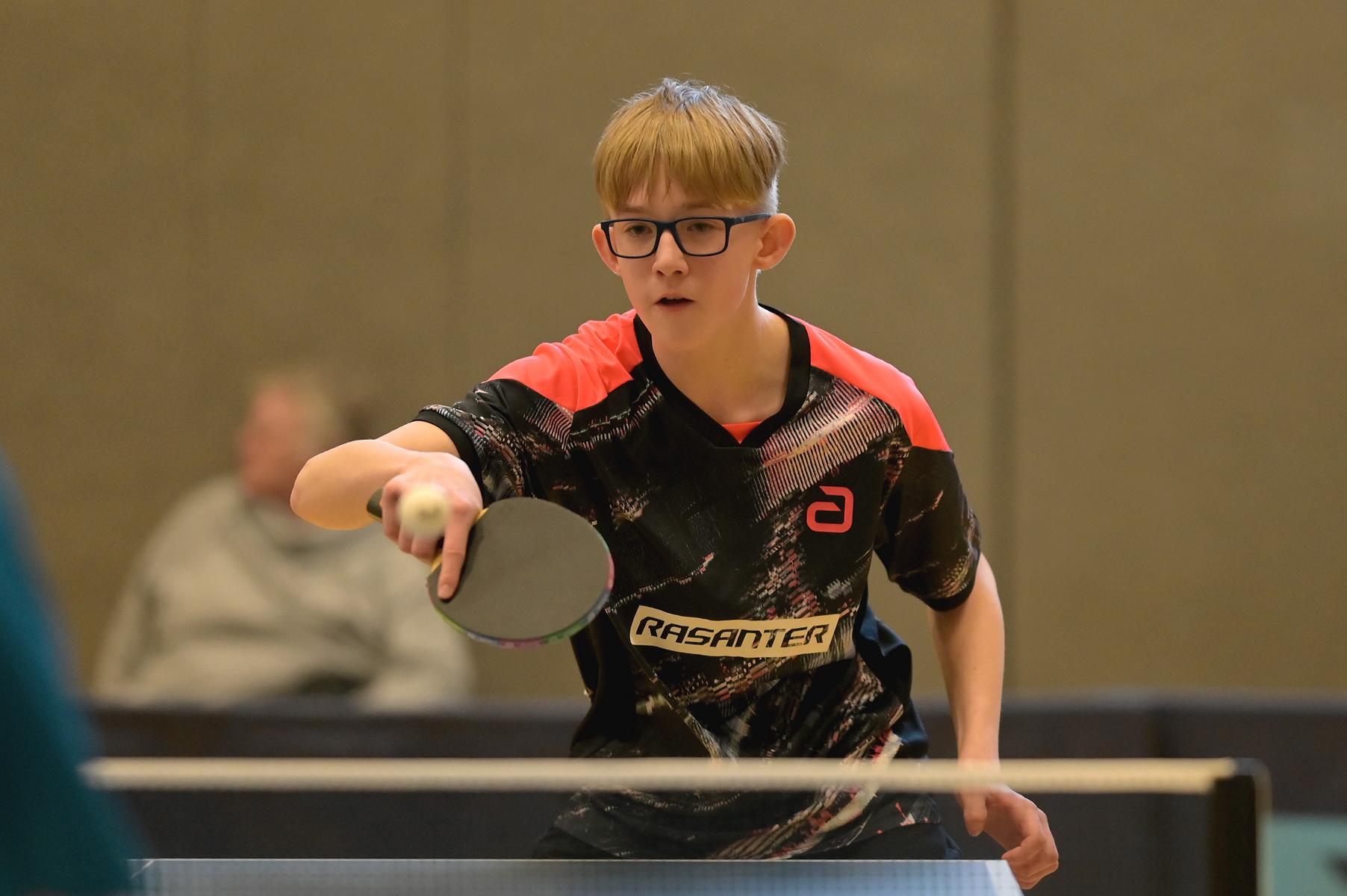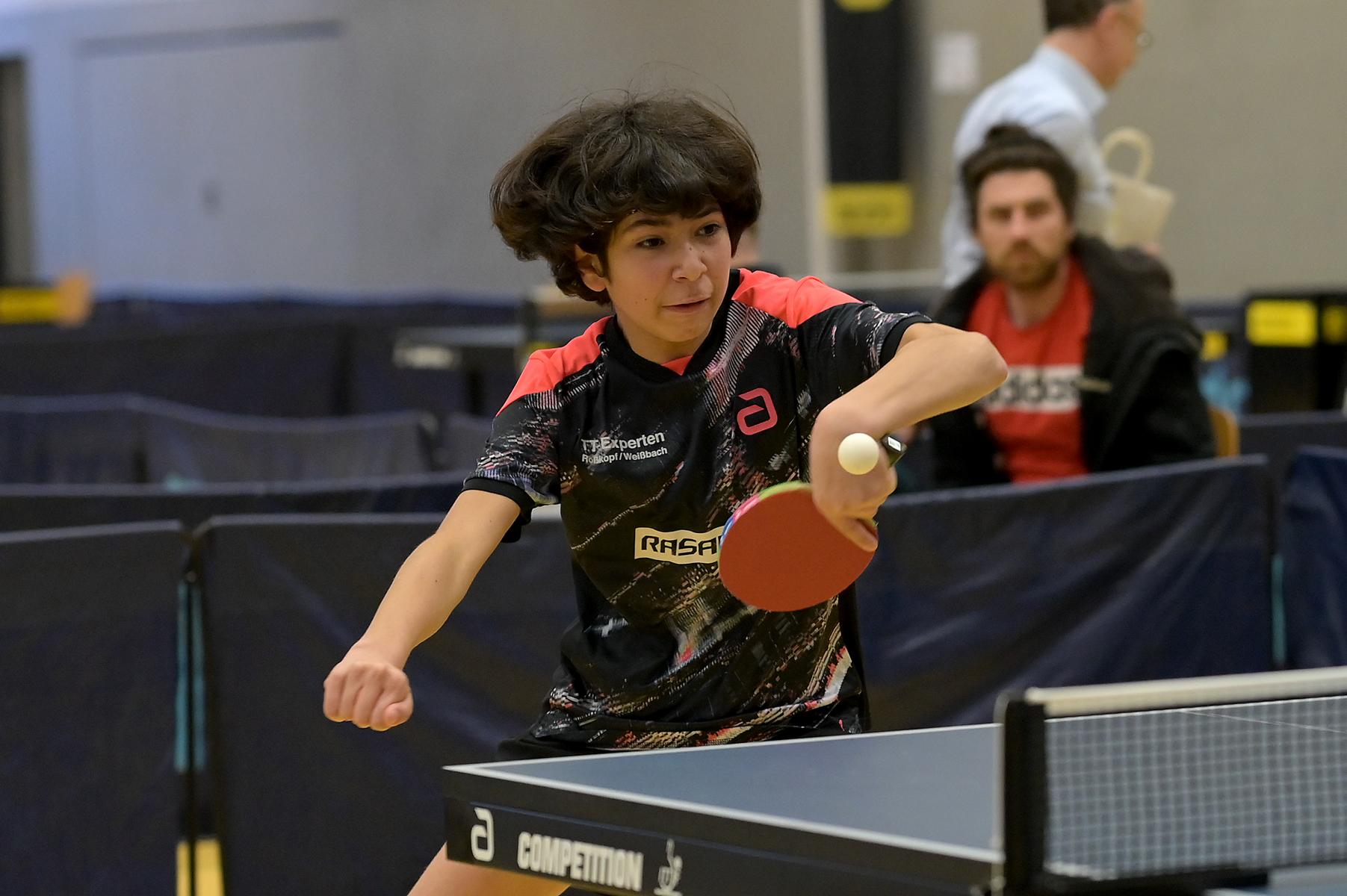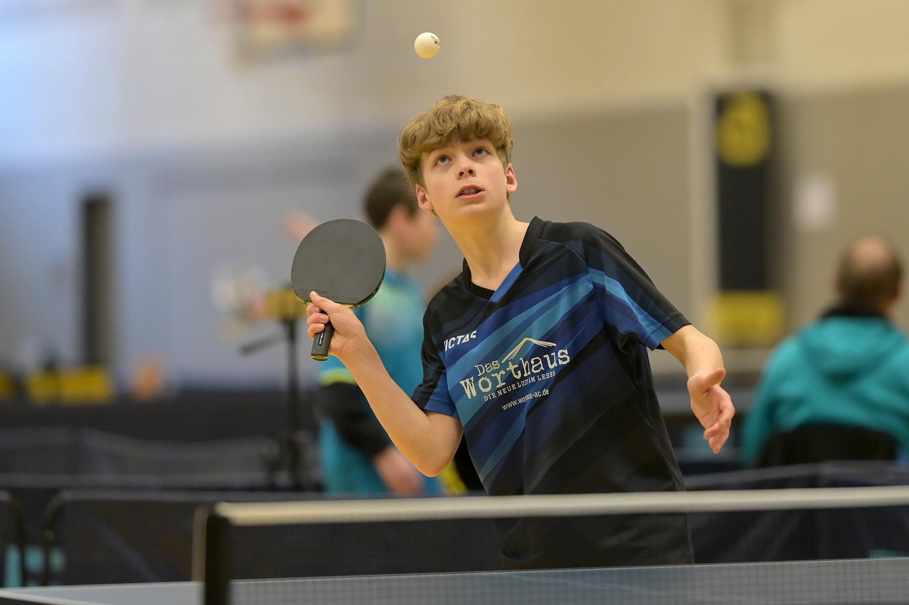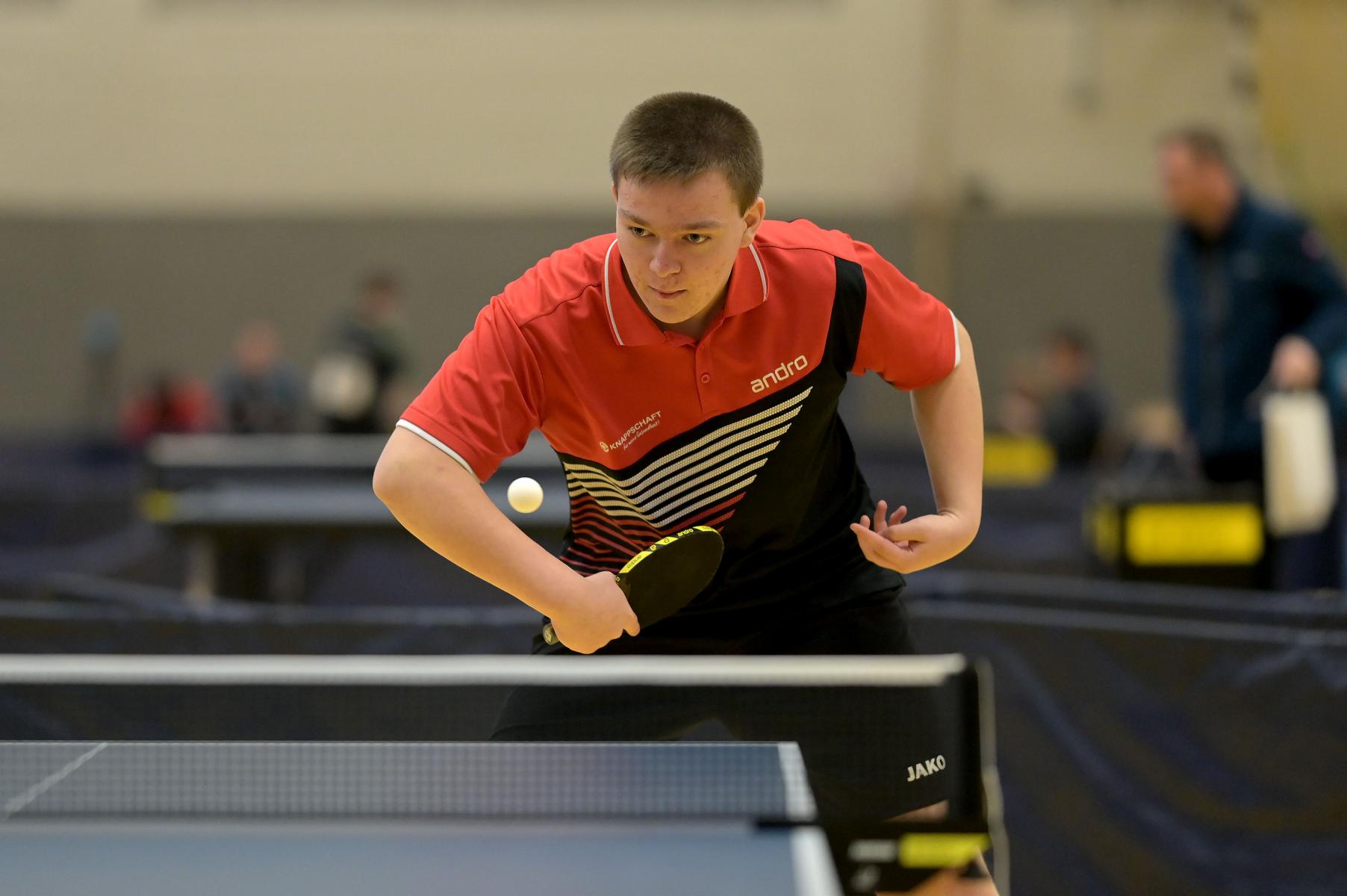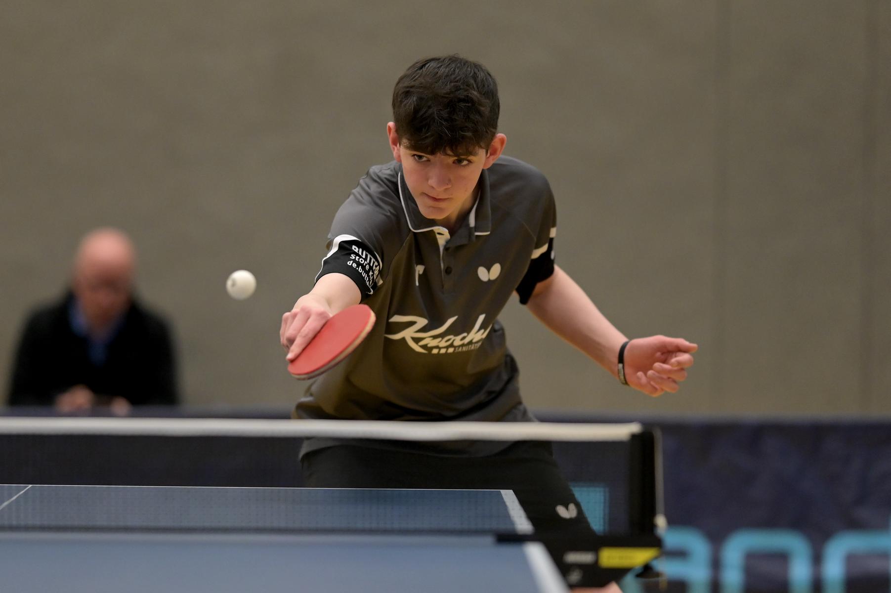 Bei den Jungen erreichte Top-Favorit Ole Brock ( TTC DJK Bad Westernkotten) souverän das Finale. Im gegenüber stand Finn Stockmann (Spvgg. Meiderich 06/95), der an diesem Wochenende ein tolles Turnier spielte und seine Chance nutzte, denn in der unteren Hälfte der KO-Runde „stolperten“ einige Favoriten. So kam es im Halbfinale zu den Paarungen Finn Stockmann gegen Amandus Vogl (TTC Bärbroich) und Ole spielte gegen Rahdeen Haghighat (1. FC Köln). Sowohl Finn als auch Ole gaben hier lediglich einen Satz ab und erreichten durch ihre 3:1-Siege das Finale.