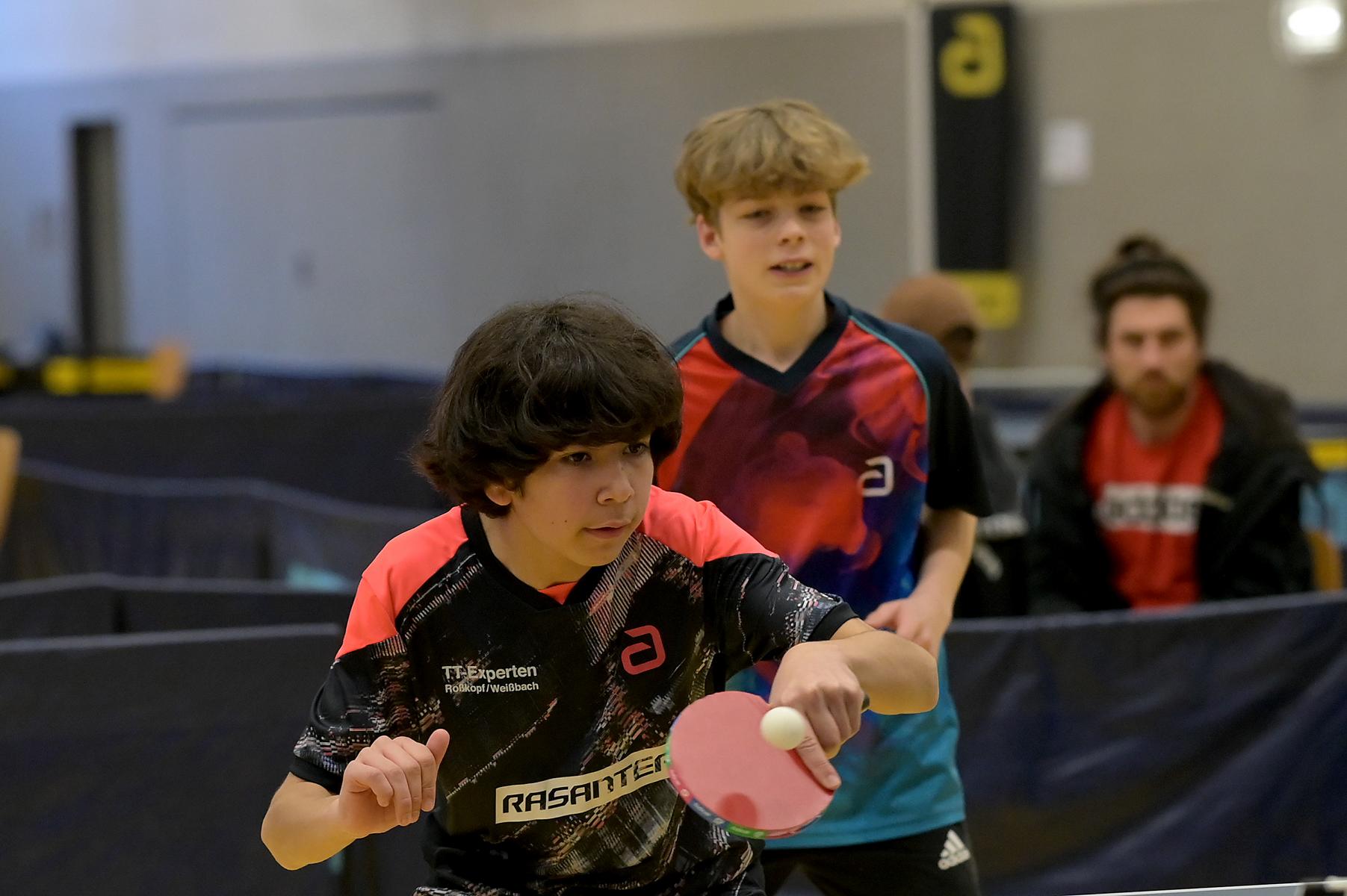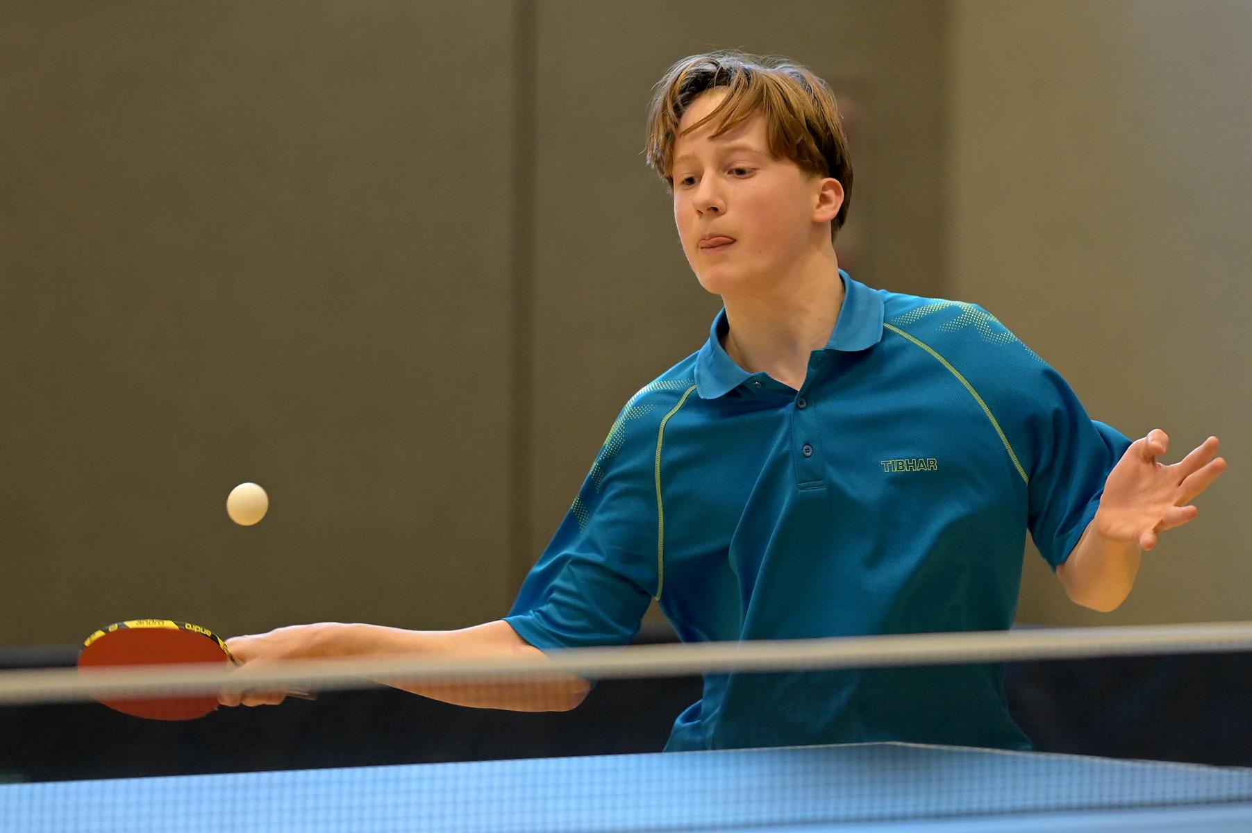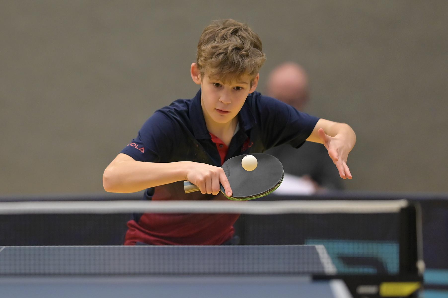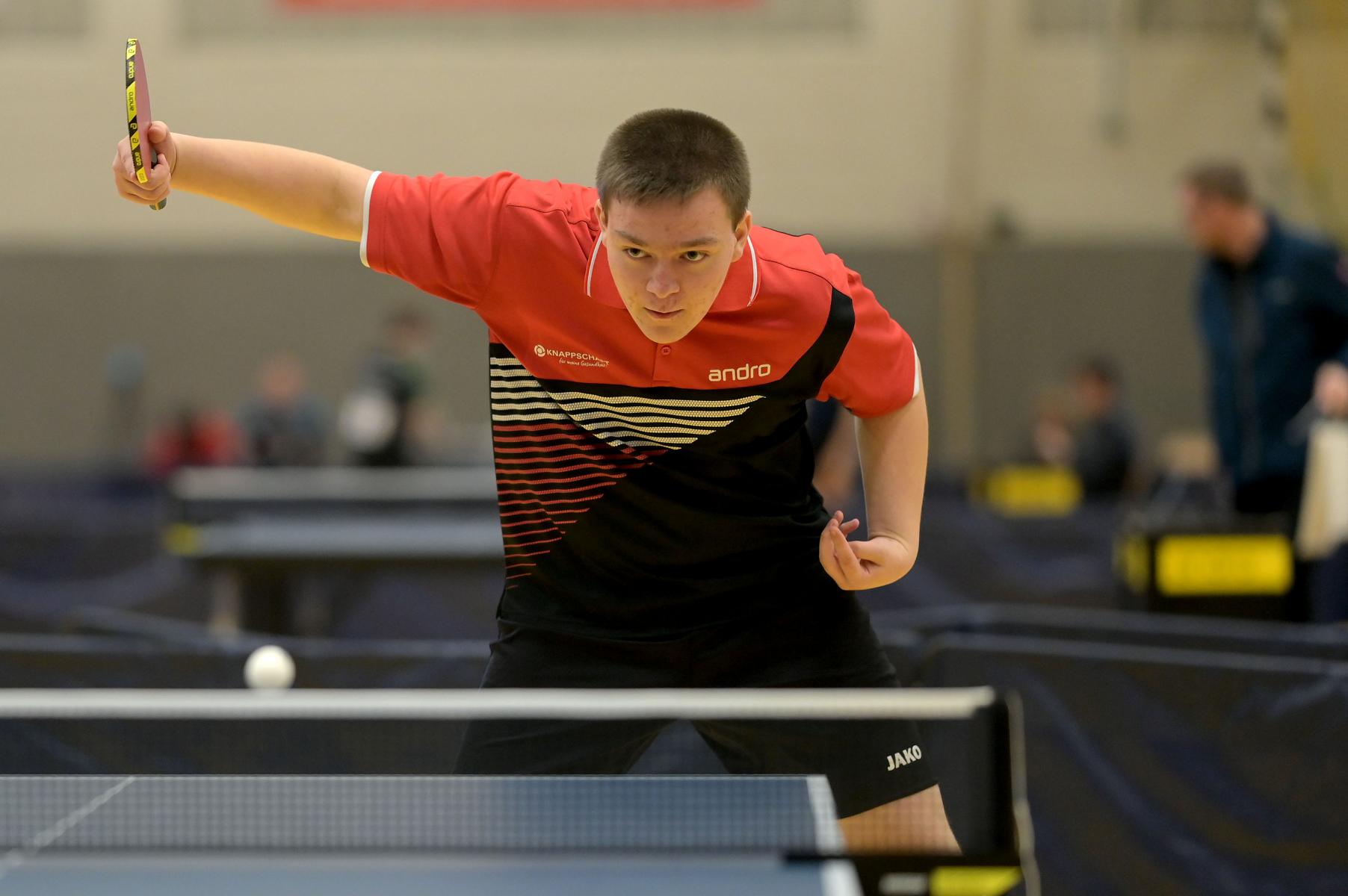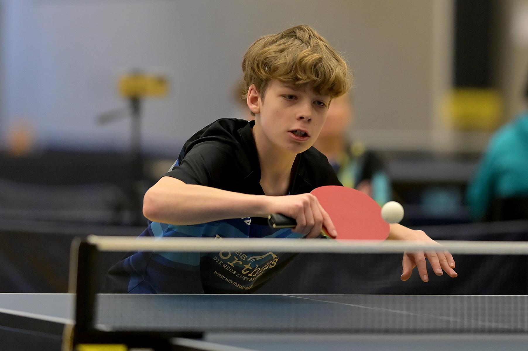Bei den Jungen erreichte Top-Favorit Ole Brock ( TTC DJK Bad Westernkotten) souverän das Finale. Im gegenüber stand Finn Stockmann (Spvgg. Meiderich 06/95), der an diesem Wochenende ein tolles Turnier spielte und seine Chance nutzte, denn in der unteren Hälfte der KO-Runde „stolperten“ einige Favoriten. So kam es im Halbfinale zu den Paarungen Finn Stockmann gegen Amandus Vogl (TTC Bärbroich) und Ole spielte gegen Rahdeen Haghighat (1. FC Köln). Sowohl Finn als auch Ole gaben hier lediglich einen Satz ab und erreichten durch ihre 3:1-Siege das Finale.