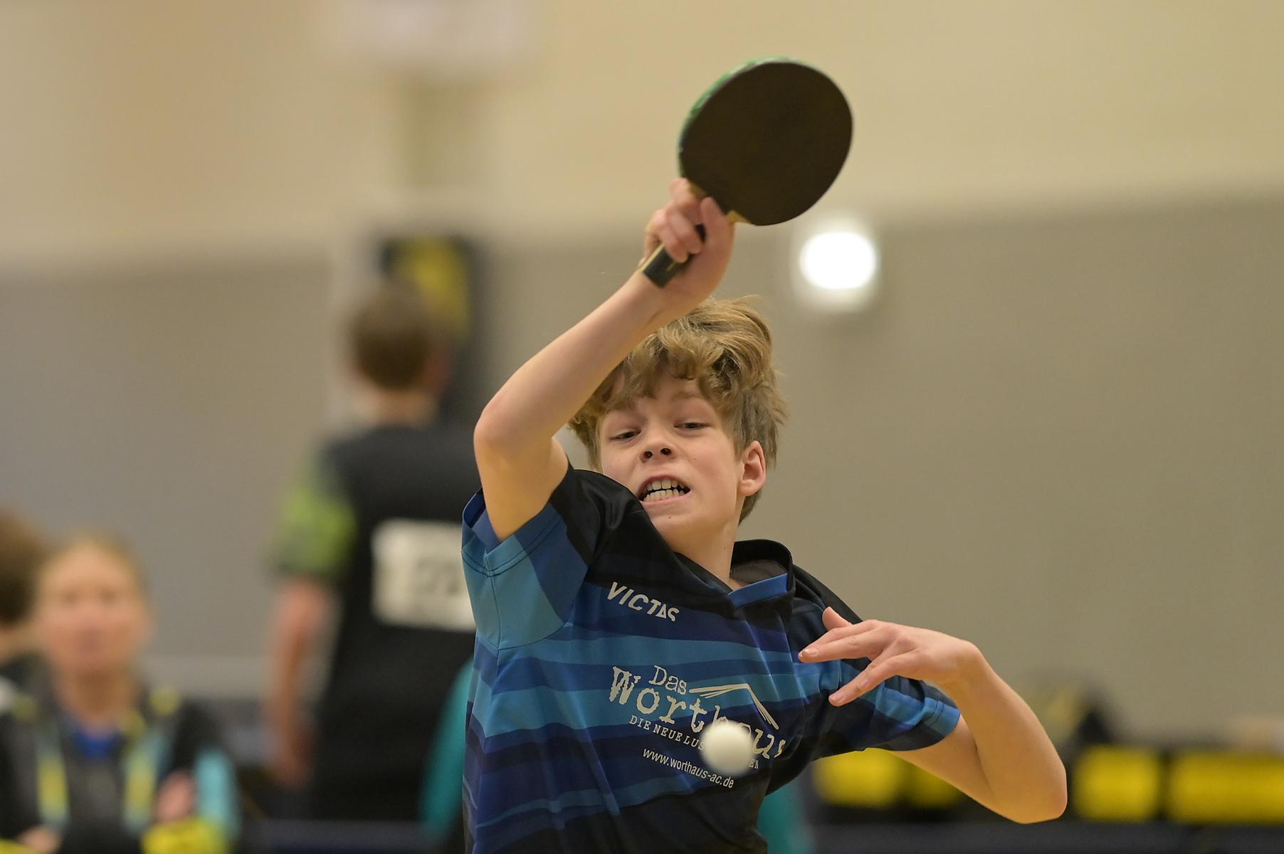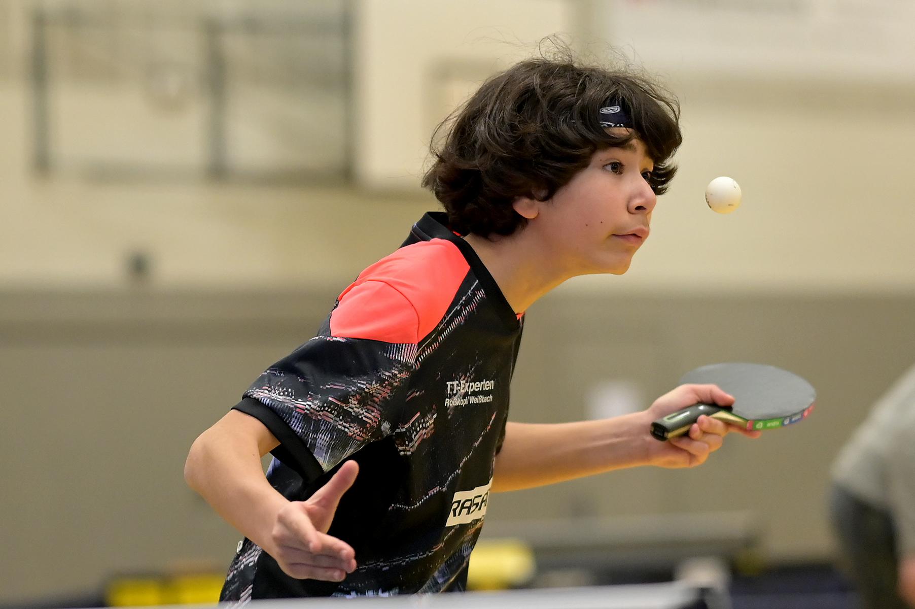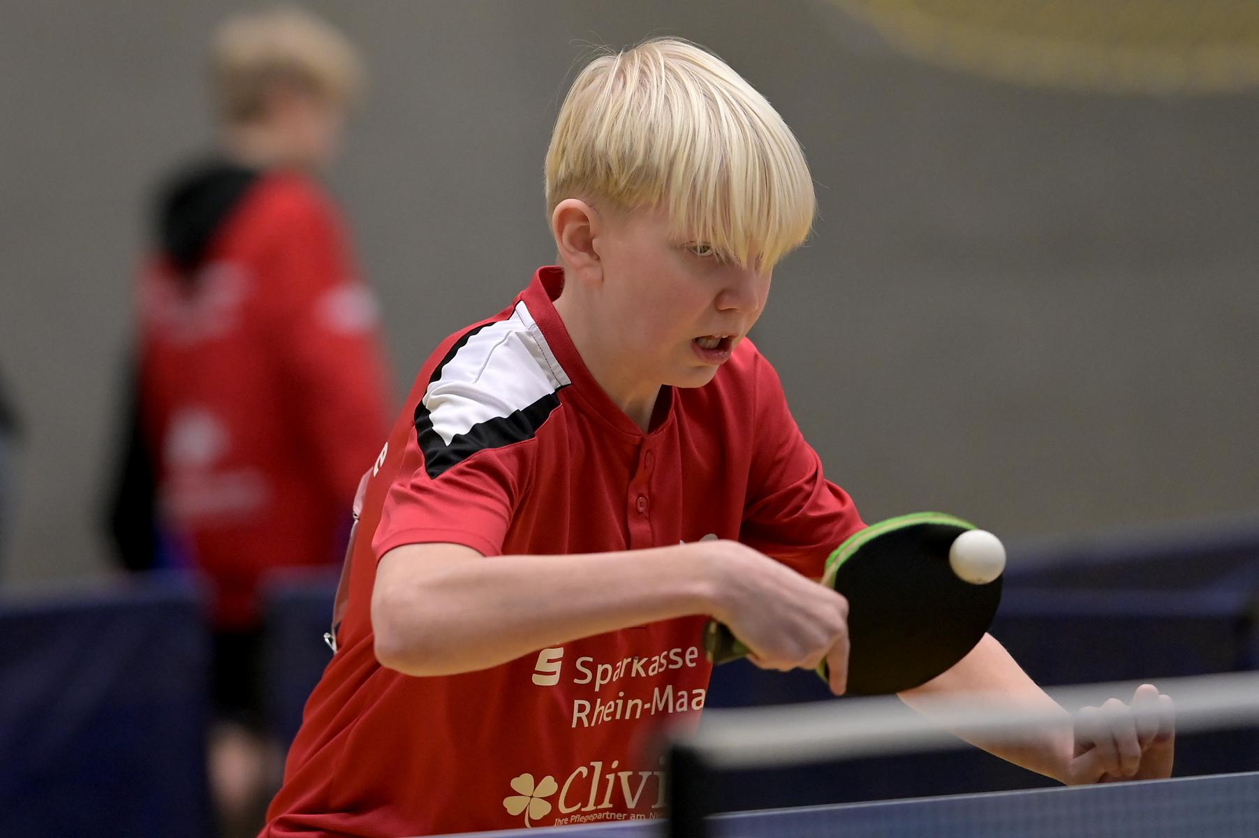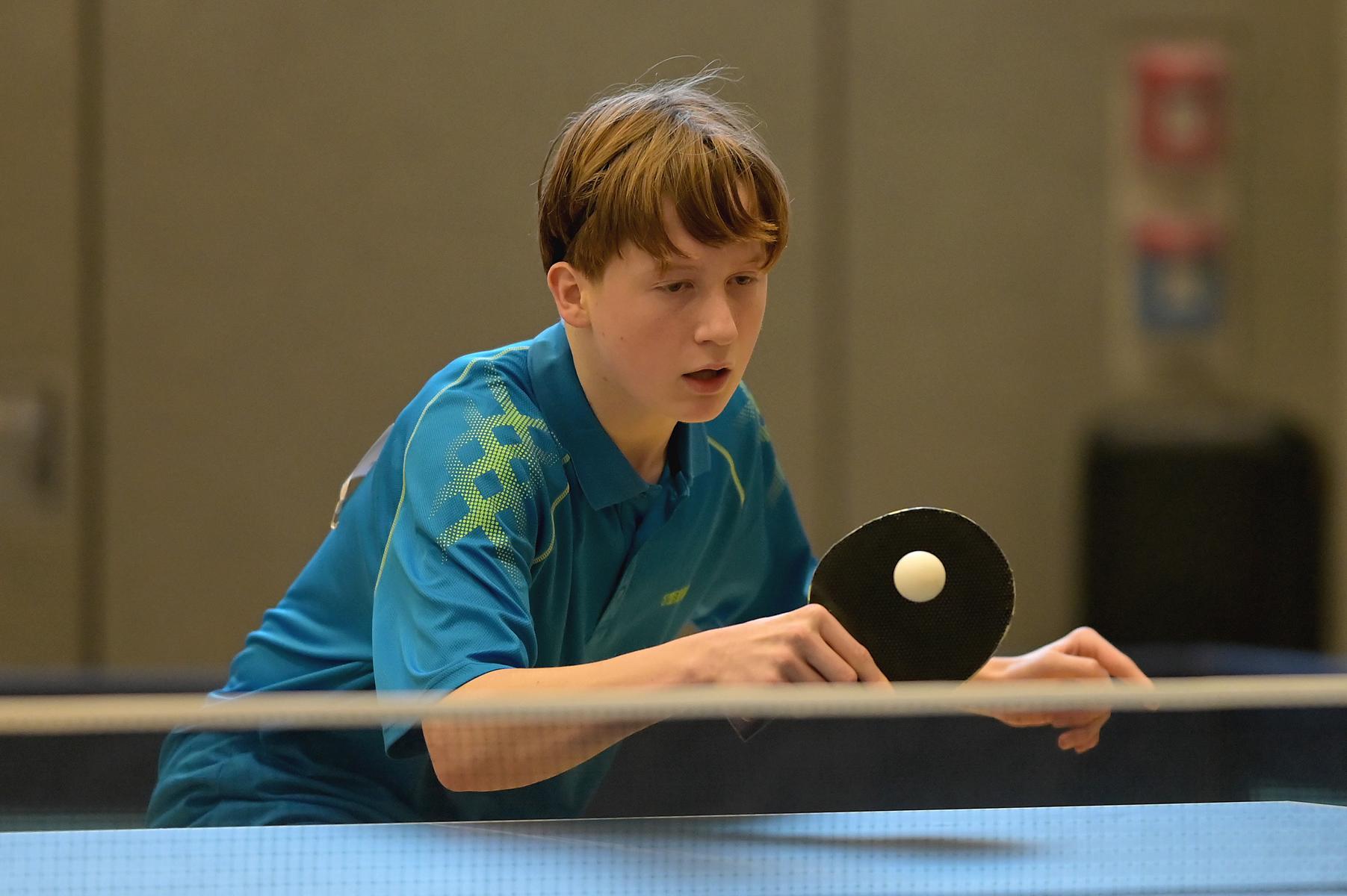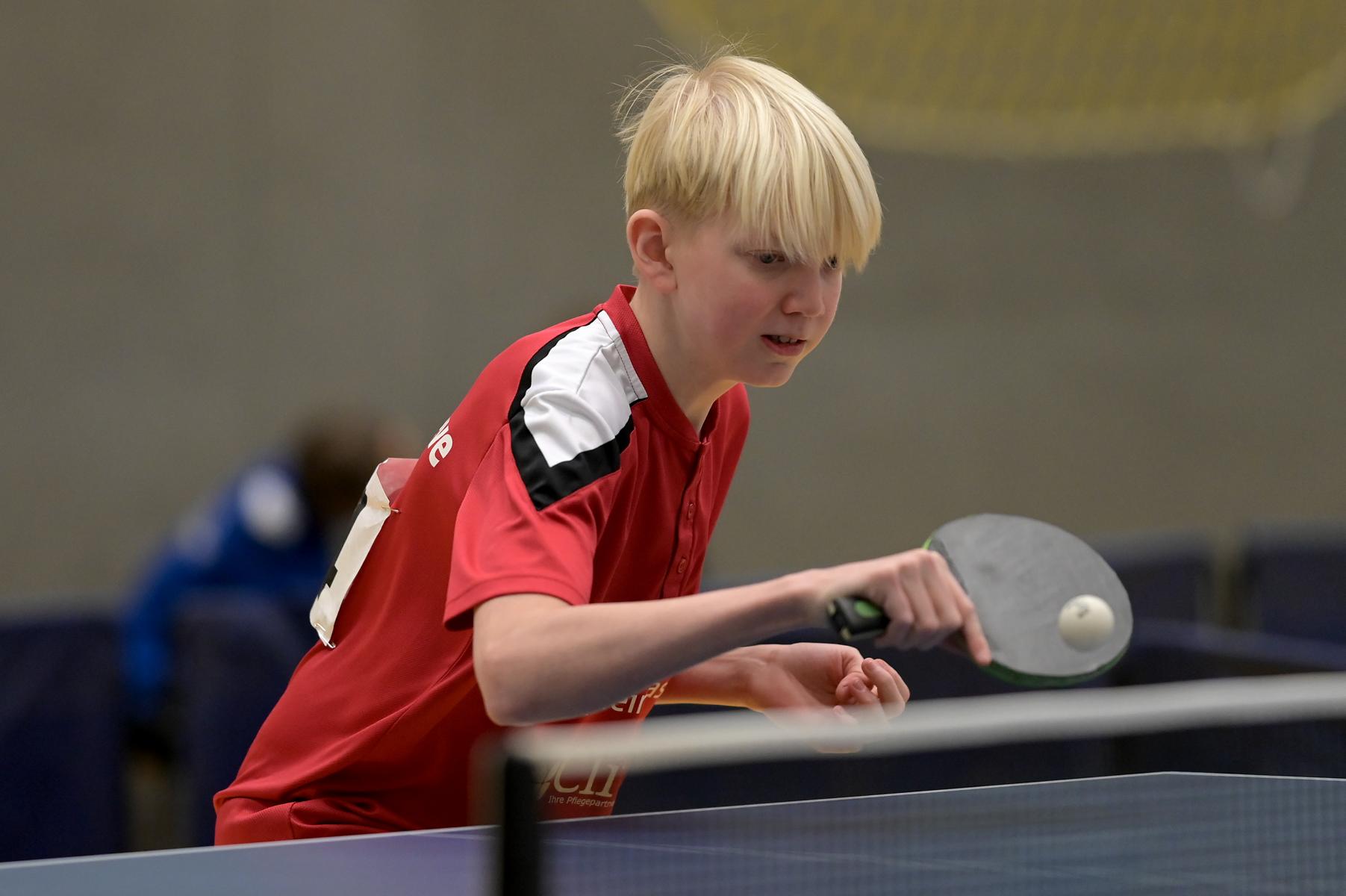 Bei den Jungen erreichte Top-Favorit Ole Brock ( TTC DJK Bad Westernkotten) souverän das Finale. Im gegenüber stand Finn Stockmann (Spvgg. Meiderich 06/95), der an diesem Wochenende ein tolles Turnier spielte und seine Chance nutzte, denn in der unteren Hälfte der KO-Runde „stolperten“ einige Favoriten. So kam es im Halbfinale zu den Paarungen Finn Stockmann gegen Amandus Vogl (TTC Bärbroich) und Ole spielte gegen Rahdeen Haghighat (1. FC Köln). Sowohl Finn als auch Ole gaben hier lediglich einen Satz ab und erreichten durch ihre 3:1-Siege das Finale.
