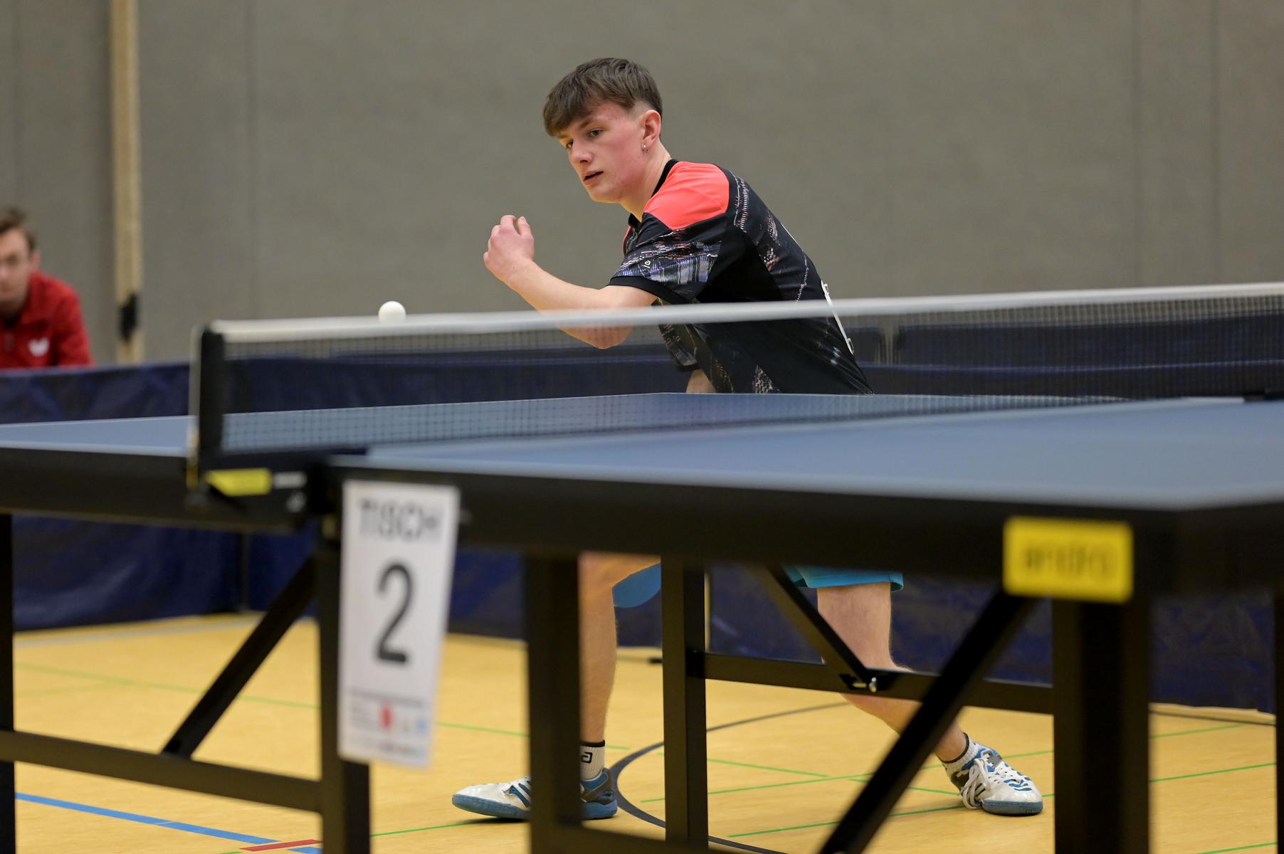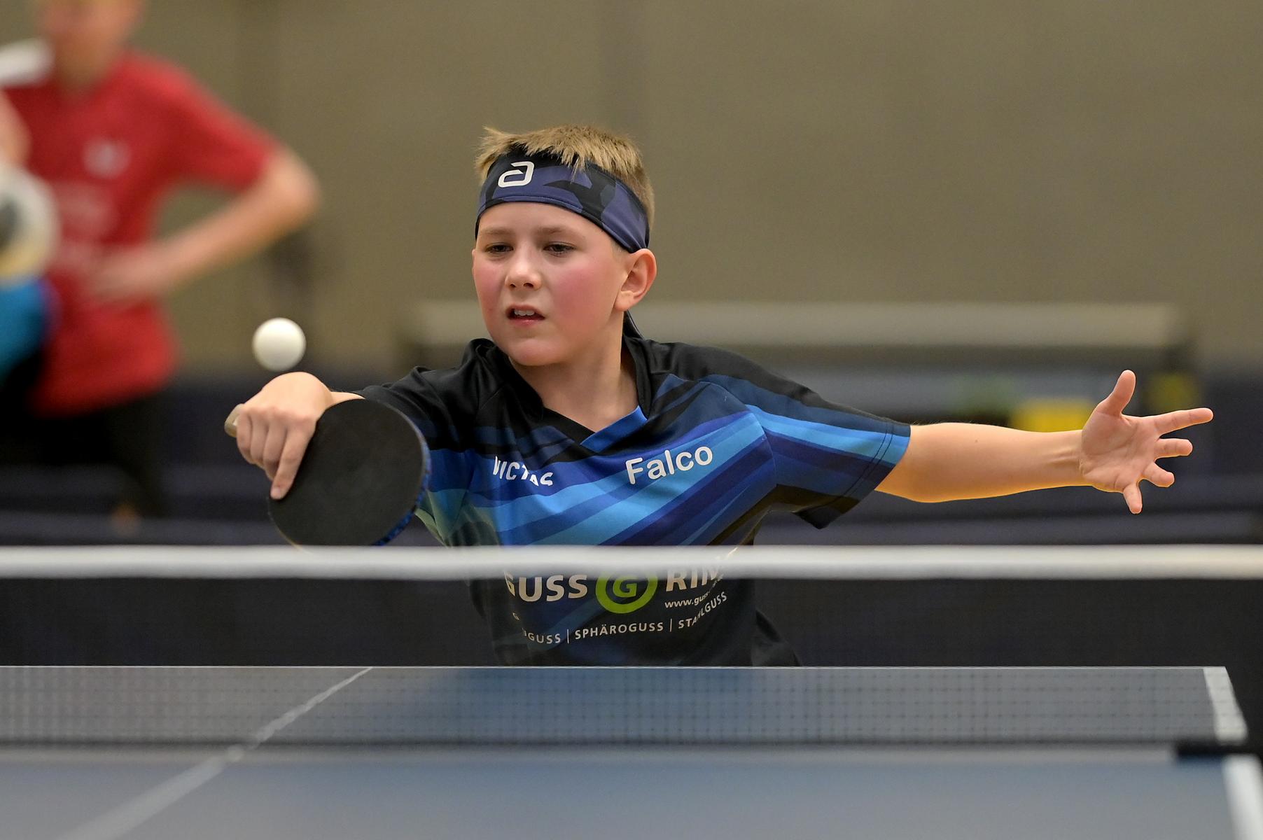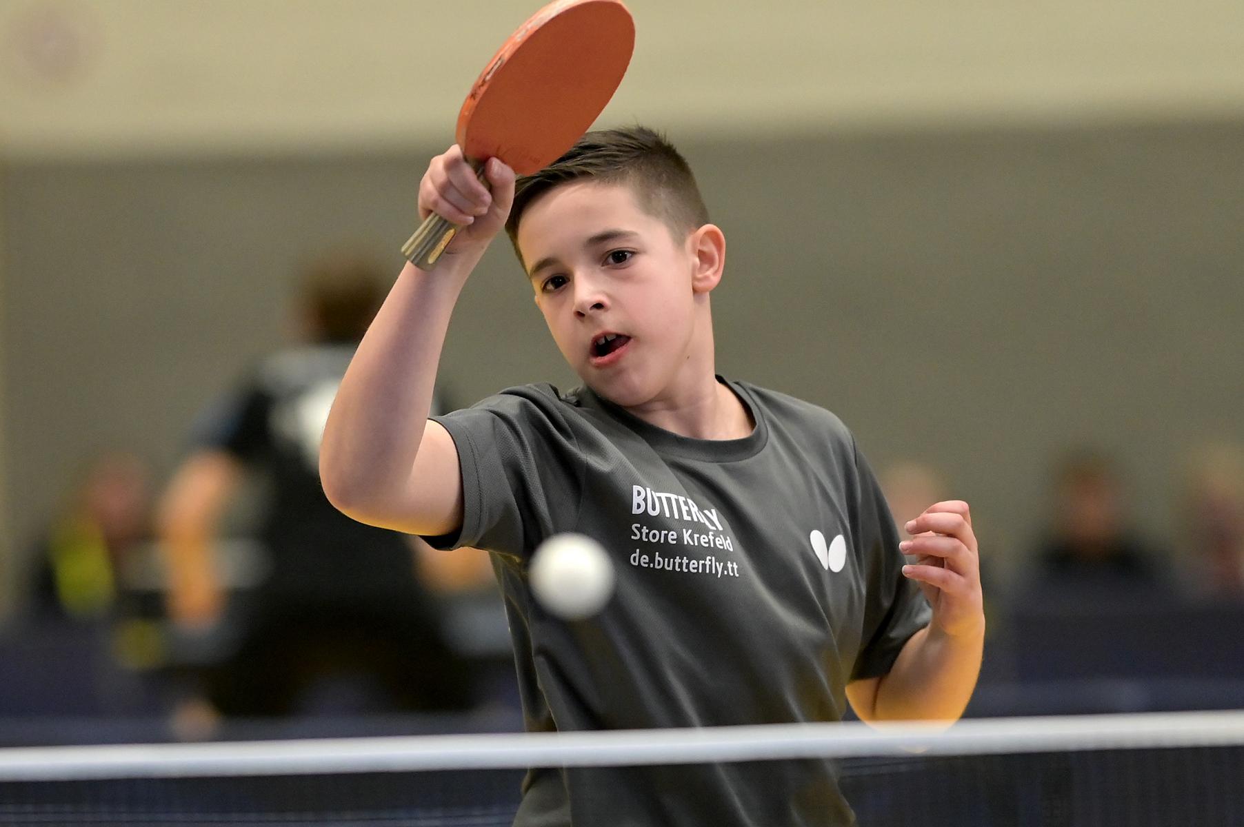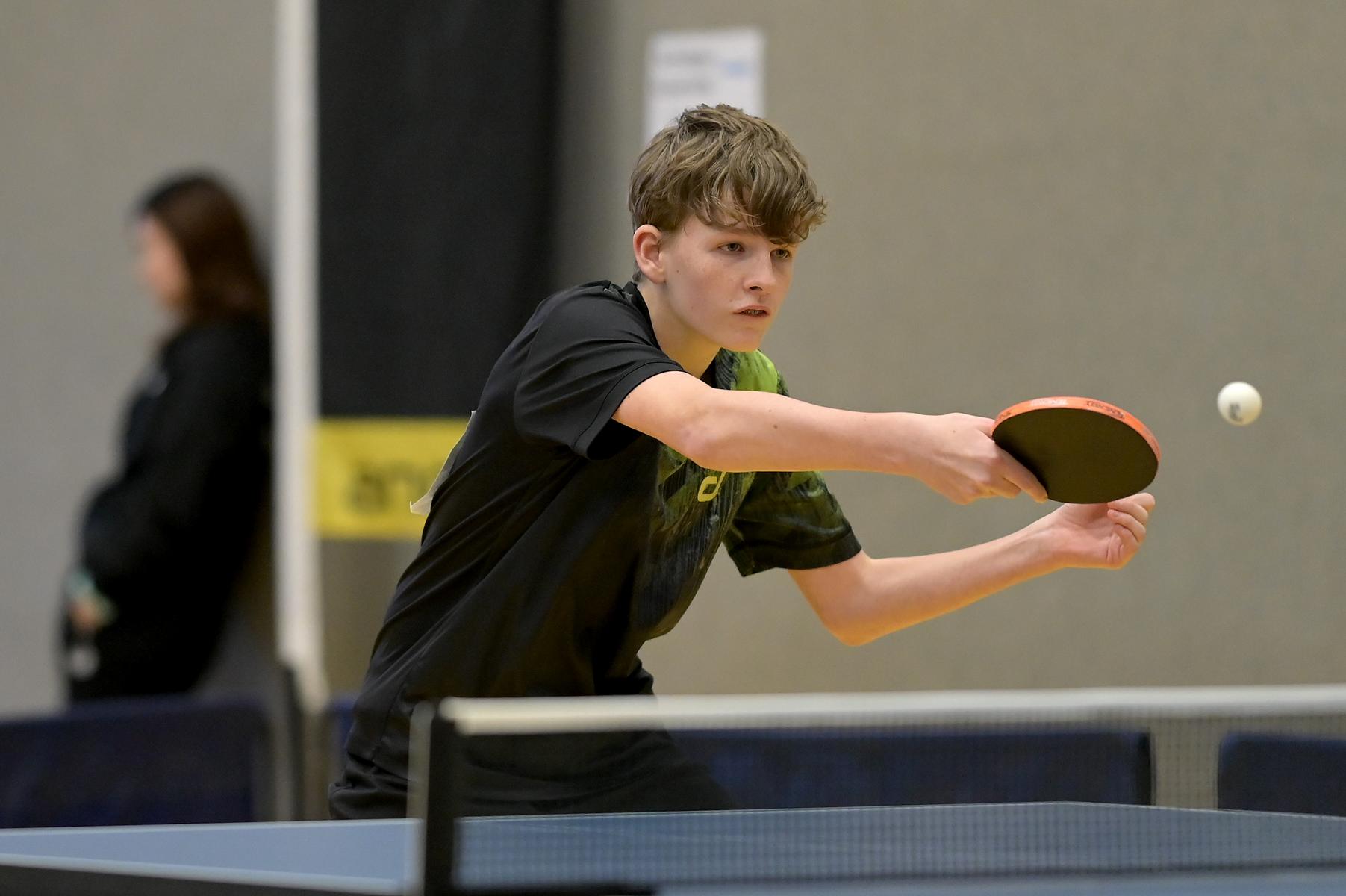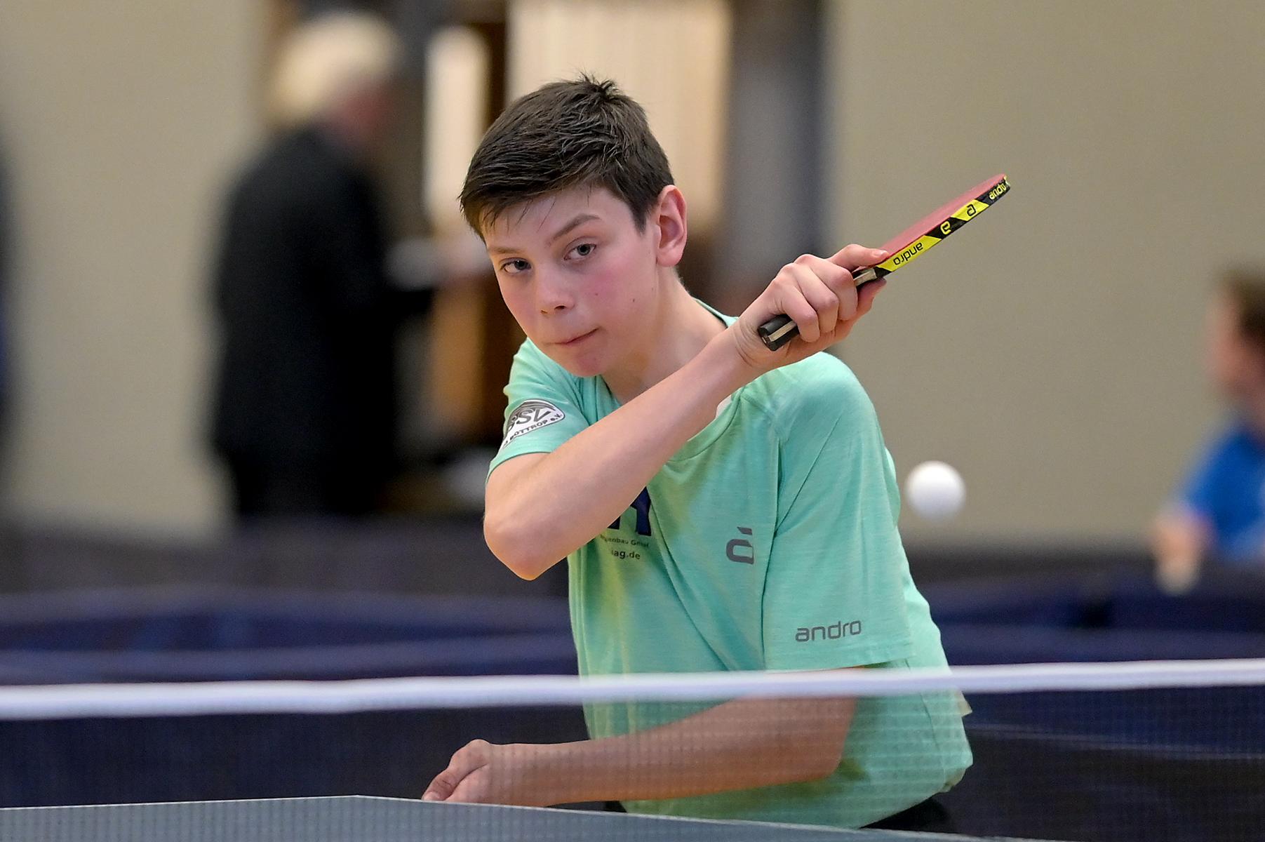 Bei den Jungen erreichte Top-Favorit Ole Brock ( TTC DJK Bad Westernkotten) souverän das Finale. Im gegenüber stand Finn Stockmann (Spvgg. Meiderich 06/95), der an diesem Wochenende ein tolles Turnier spielte und seine Chance nutzte, denn in der unteren Hälfte der KO-Runde „stolperten“ einige Favoriten. So kam es im Halbfinale zu den Paarungen Finn Stockmann gegen Amandus Vogl (TTC Bärbroich) und Ole spielte gegen Rahdeen Haghighat (1. FC Köln). Sowohl Finn als auch Ole gaben hier lediglich einen Satz ab und erreichten durch ihre 3:1-Siege das Finale.