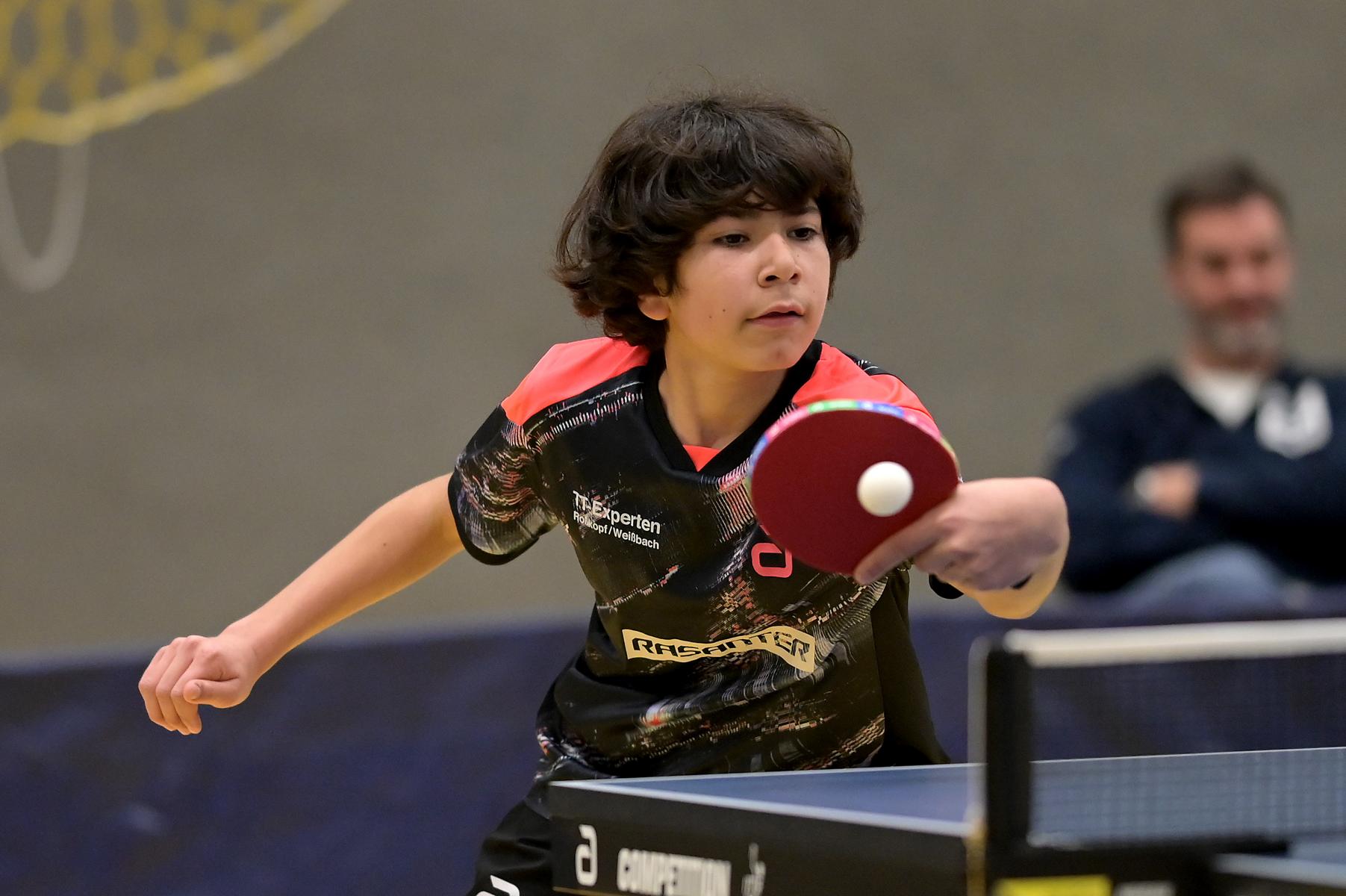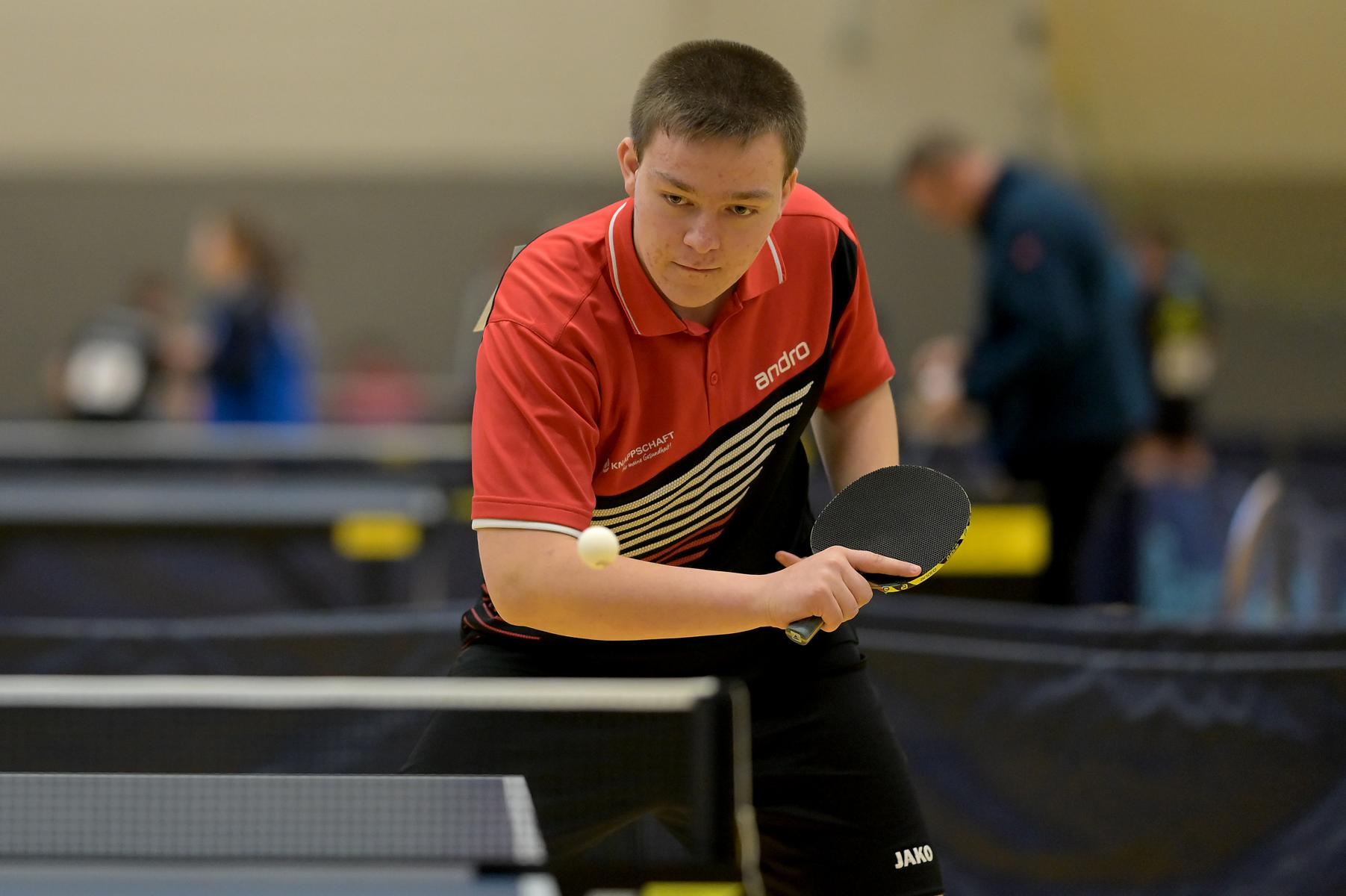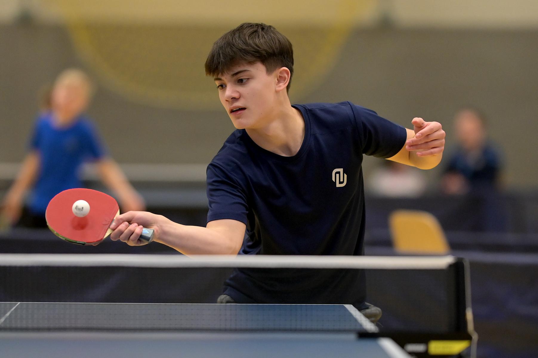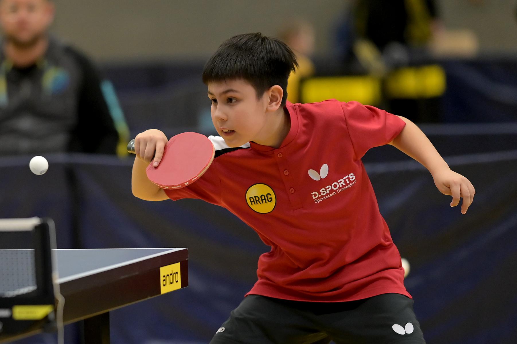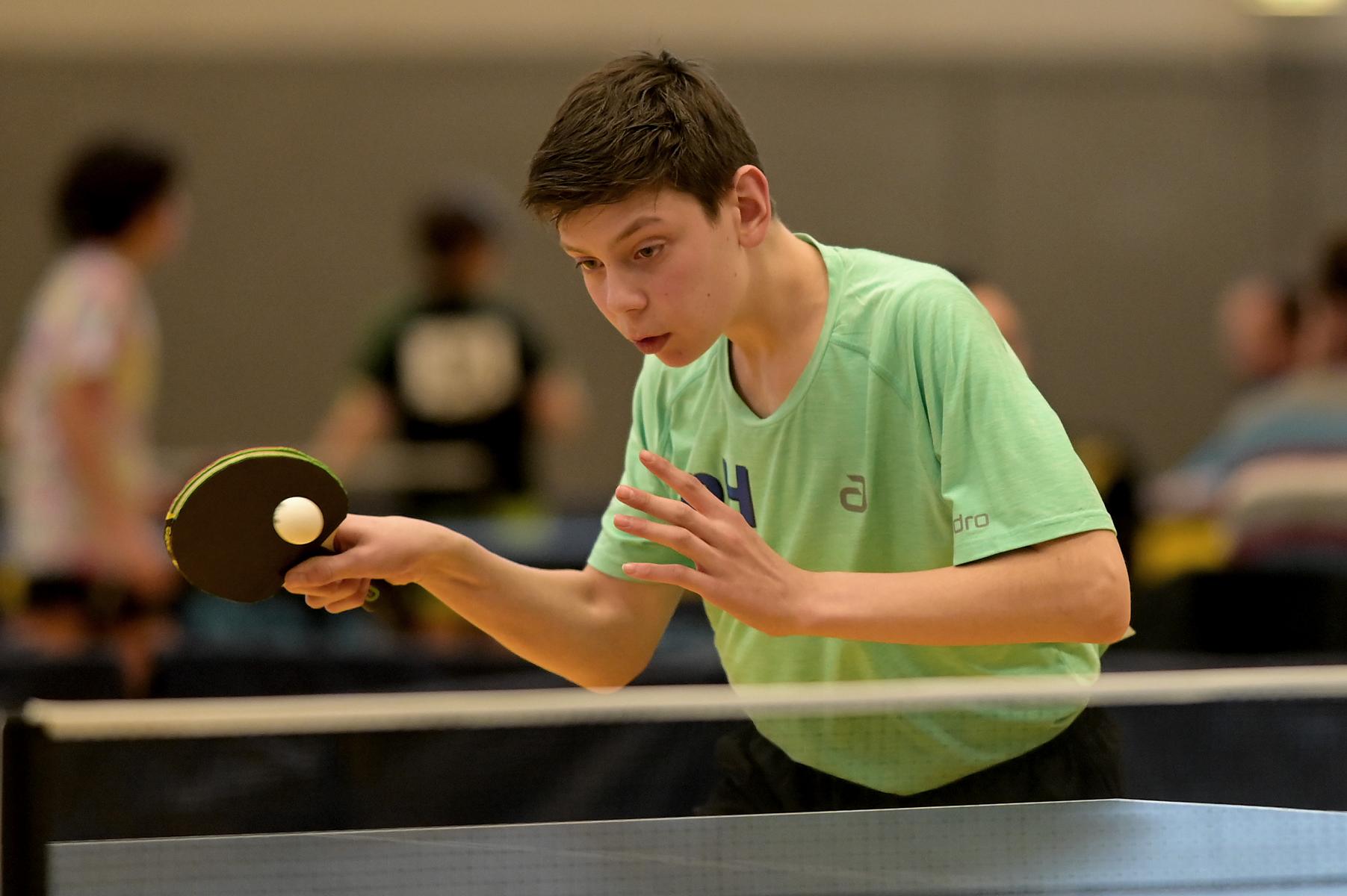 Bei den Jungen erreichte Top-Favorit Ole Brock ( TTC DJK Bad Westernkotten) souverän das Finale. Im gegenüber stand Finn Stockmann (Spvgg. Meiderich 06/95), der an diesem Wochenende ein tolles Turnier spielte und seine Chance nutzte, denn in der unteren Hälfte der KO-Runde „stolperten“ einige Favoriten. So kam es im Halbfinale zu den Paarungen Finn Stockmann gegen Amandus Vogl (TTC Bärbroich) und Ole spielte gegen Rahdeen Haghighat (1. FC Köln). Sowohl Finn als auch Ole gaben hier lediglich einen Satz ab und erreichten durch ihre 3:1-Siege das Finale.