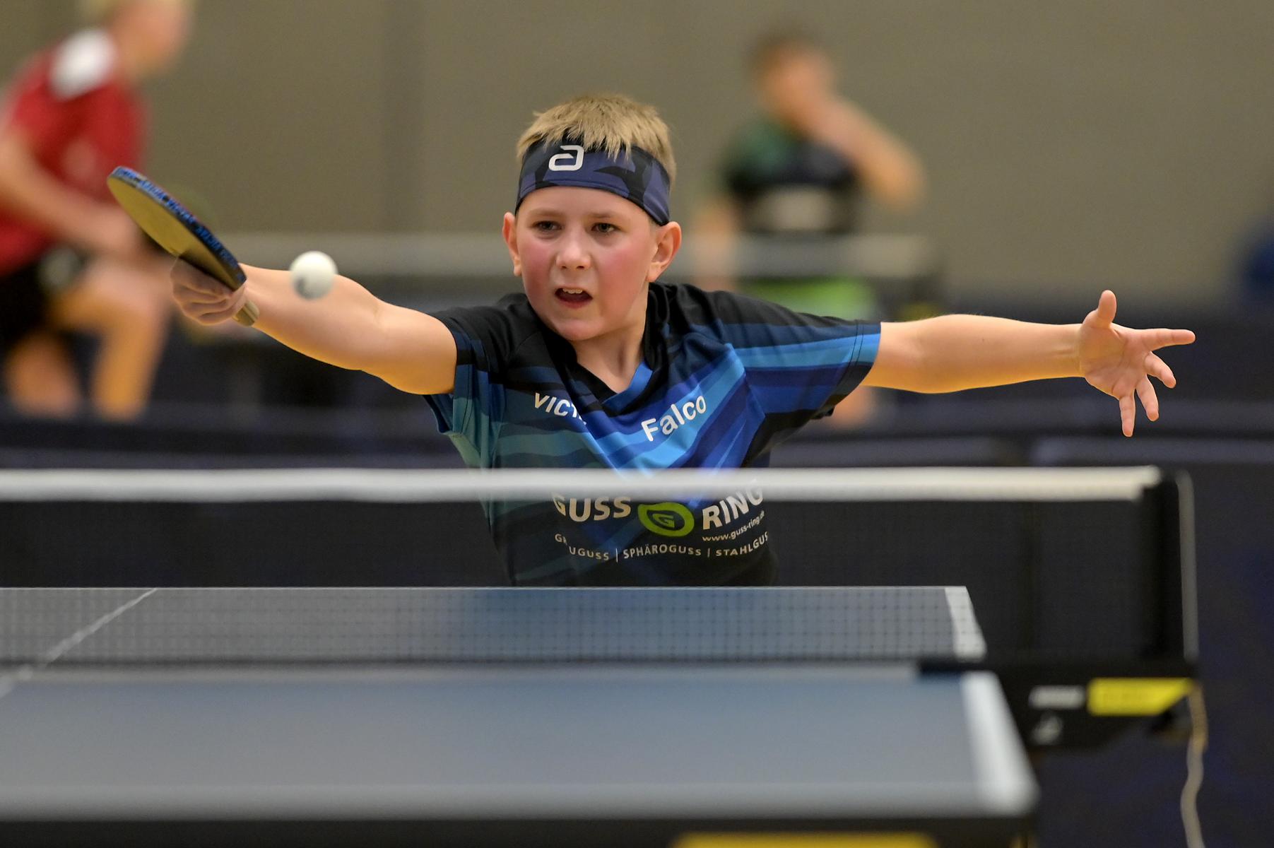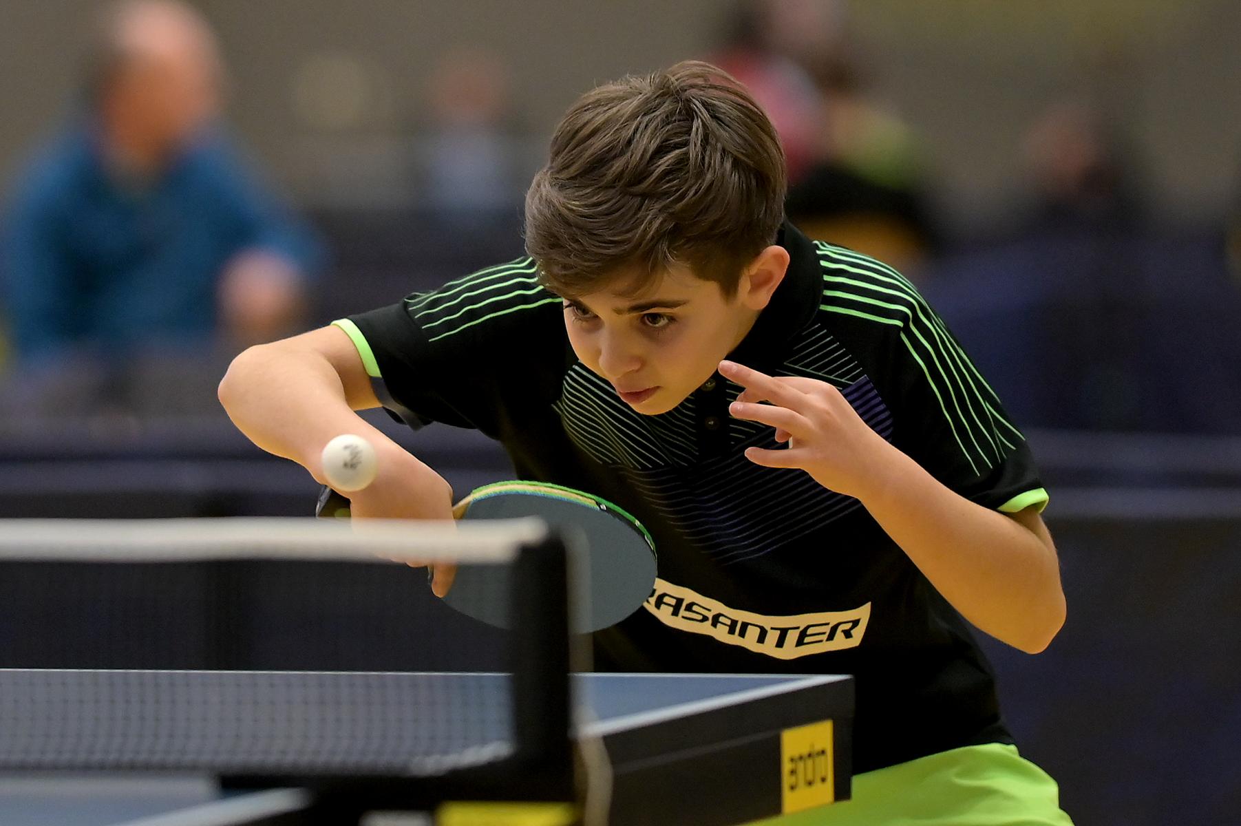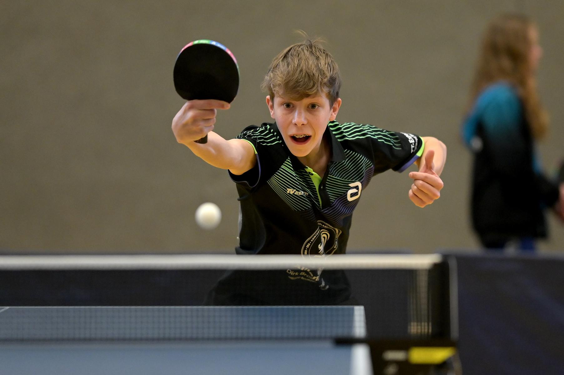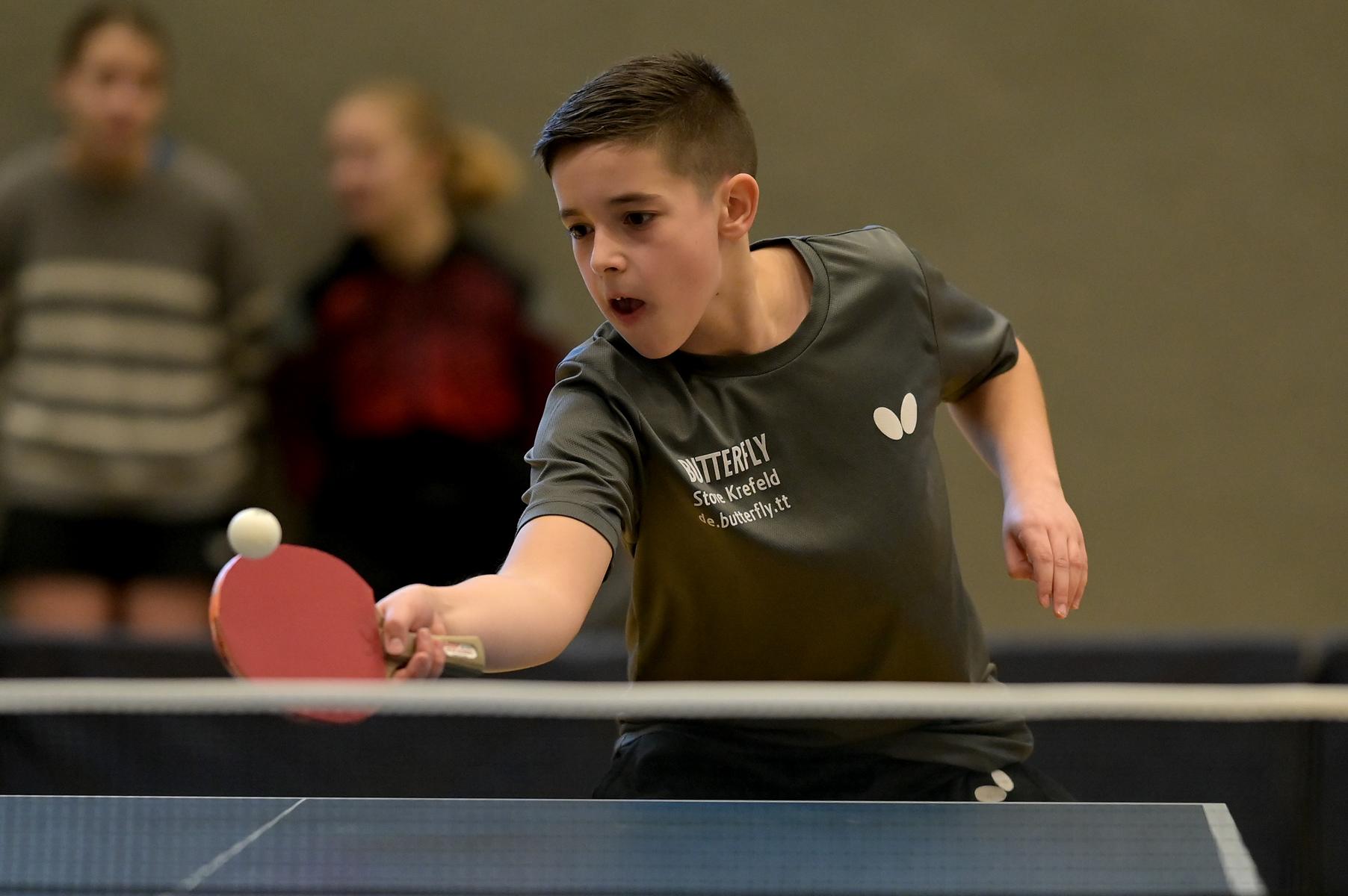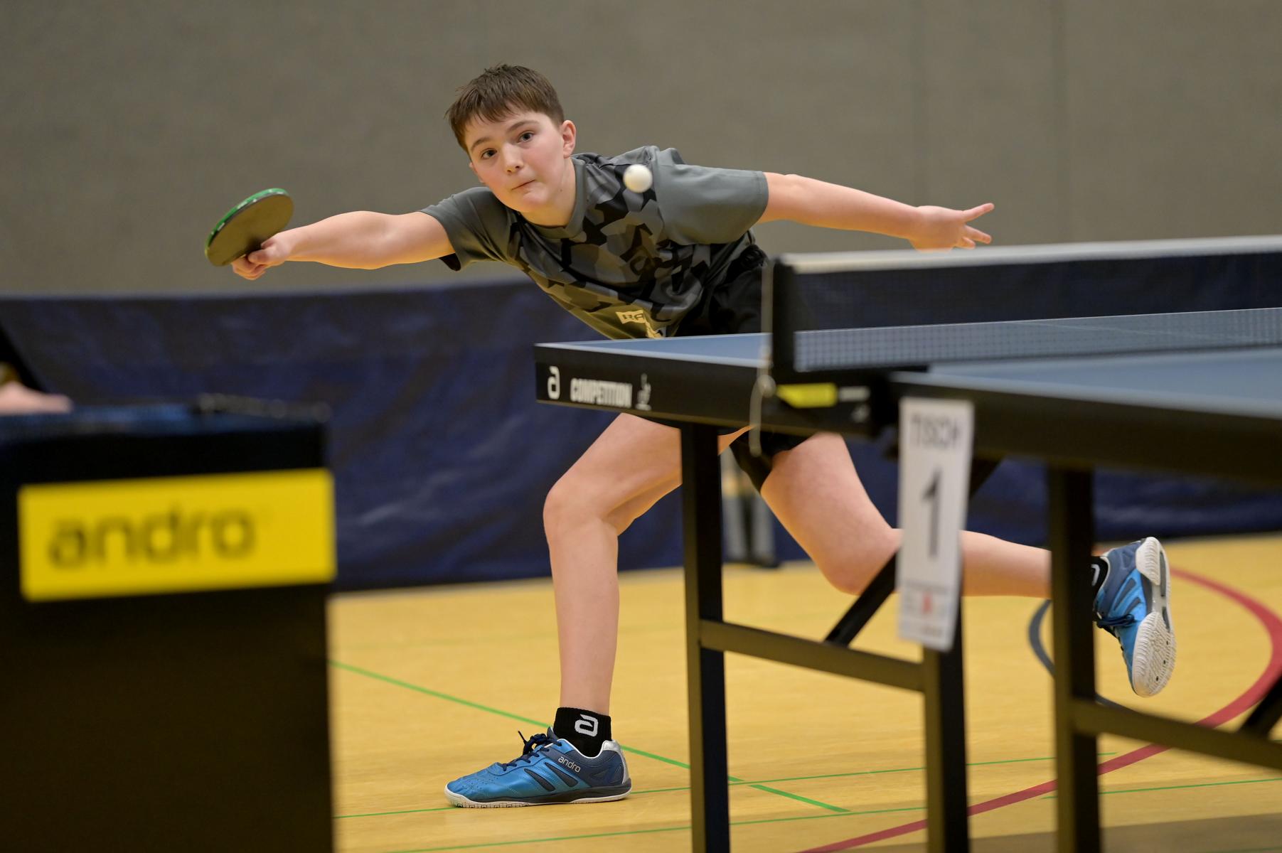 Bei den Jungen erreichte Top-Favorit Ole Brock ( TTC DJK Bad Westernkotten) souverän das Finale. Im gegenüber stand Finn Stockmann (Spvgg. Meiderich 06/95), der an diesem Wochenende ein tolles Turnier spielte und seine Chance nutzte, denn in der unteren Hälfte der KO-Runde „stolperten“ einige Favoriten. So kam es im Halbfinale zu den Paarungen Finn Stockmann gegen Amandus Vogl (TTC Bärbroich) und Ole spielte gegen Rahdeen Haghighat (1. FC Köln). Sowohl Finn als auch Ole gaben hier lediglich einen Satz ab und erreichten durch ihre 3:1-Siege das Finale.